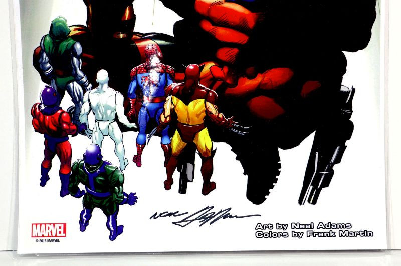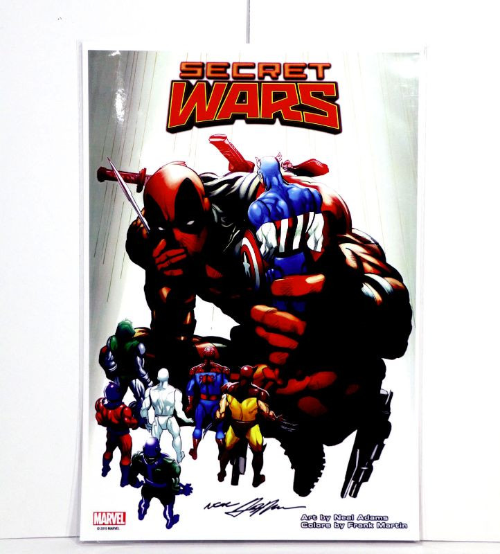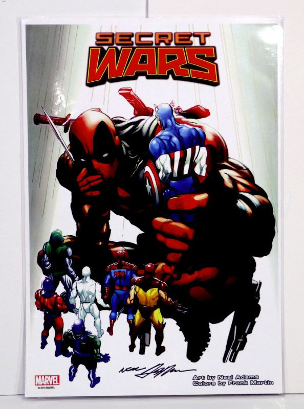 Original Comic Art Print hand signed by artist Neal Adams, featuring Neal Adams cover art for Secret Wars Deadpool (Marvel, 2015). High quality art print in large size 13" x 19", on high quality heavy stock poster paper, ready for framing, ships flat in safe packaging - Collector's Item!