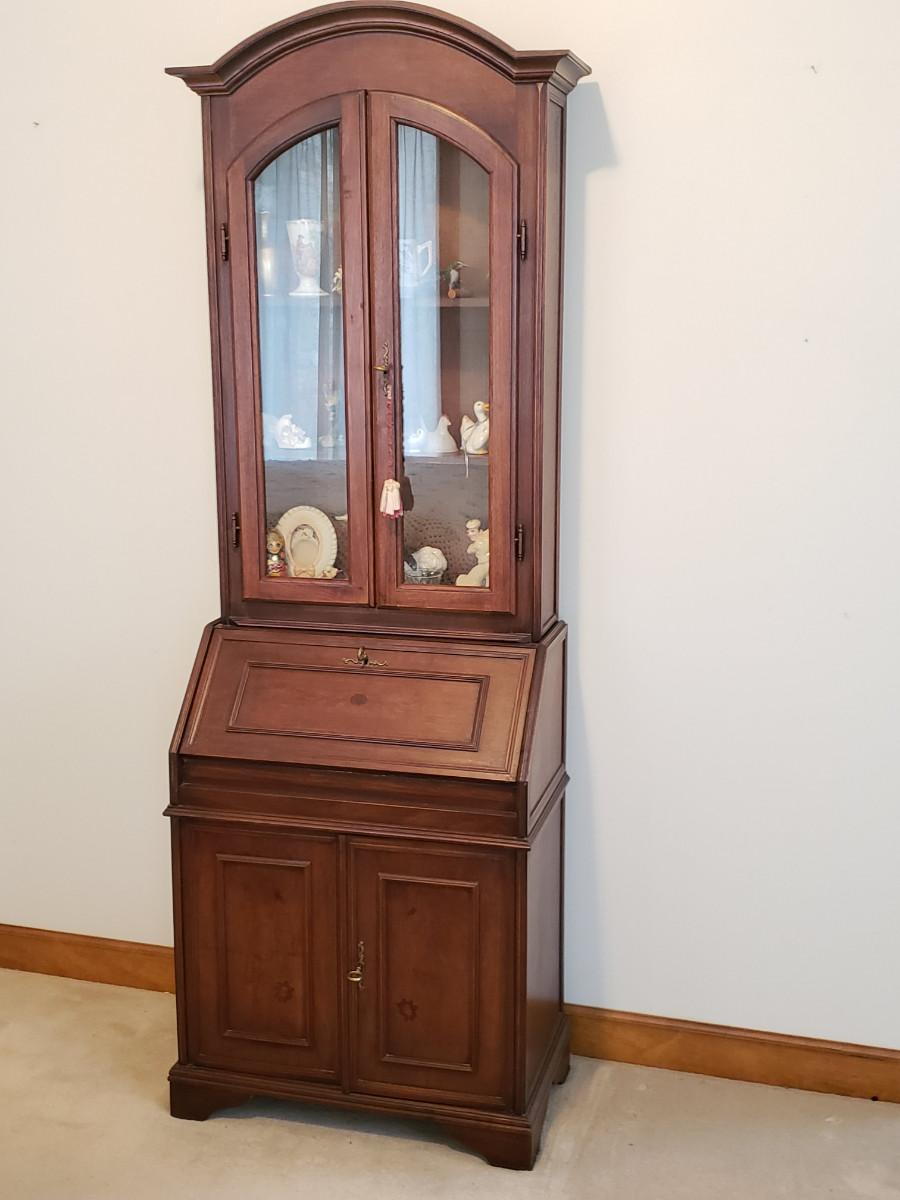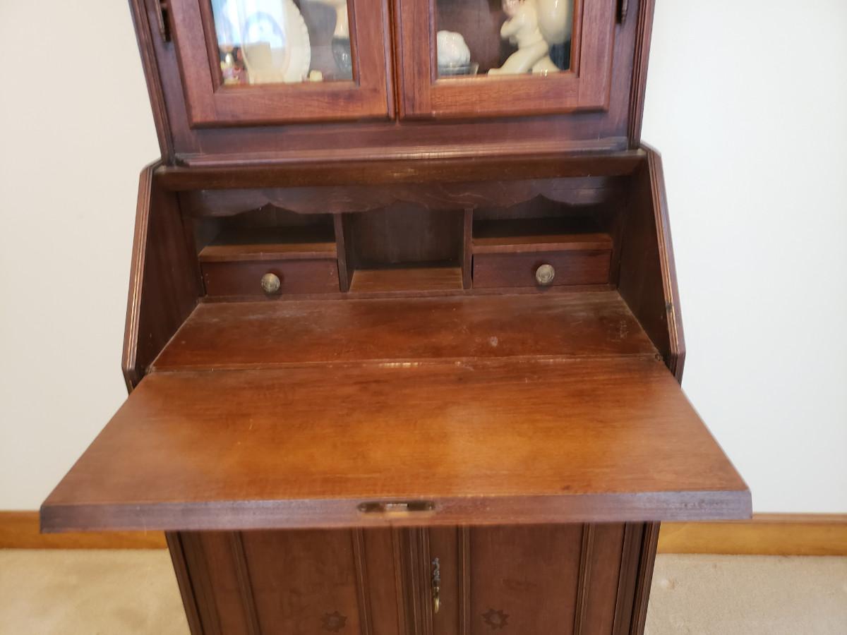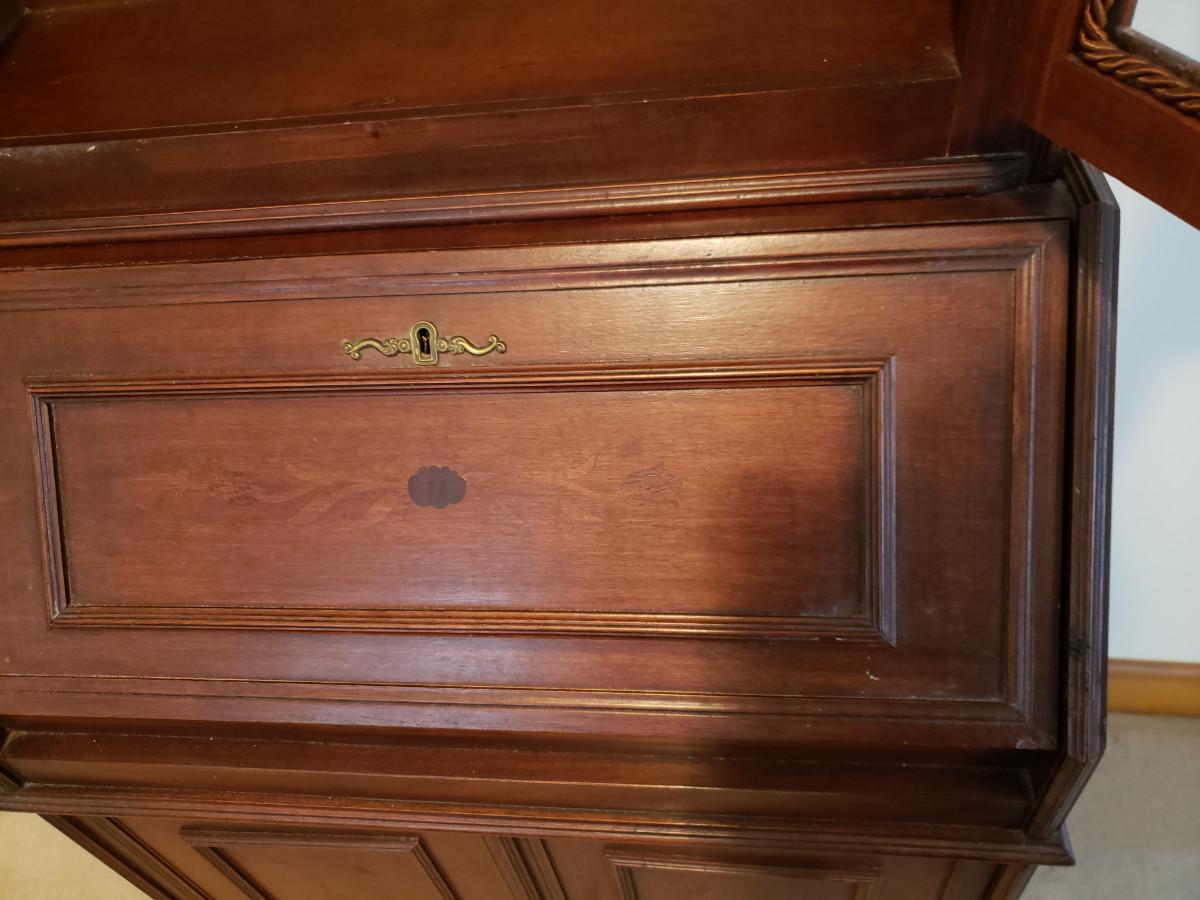 Beautiful secretary has some inlay work and comes with 3 keys. Measures 26x14x76. See pictures for more details.
