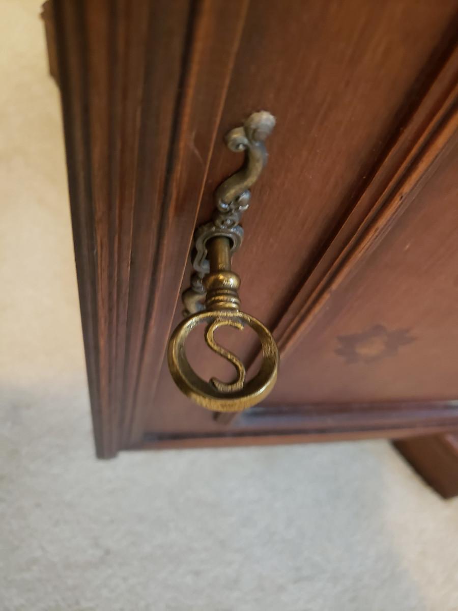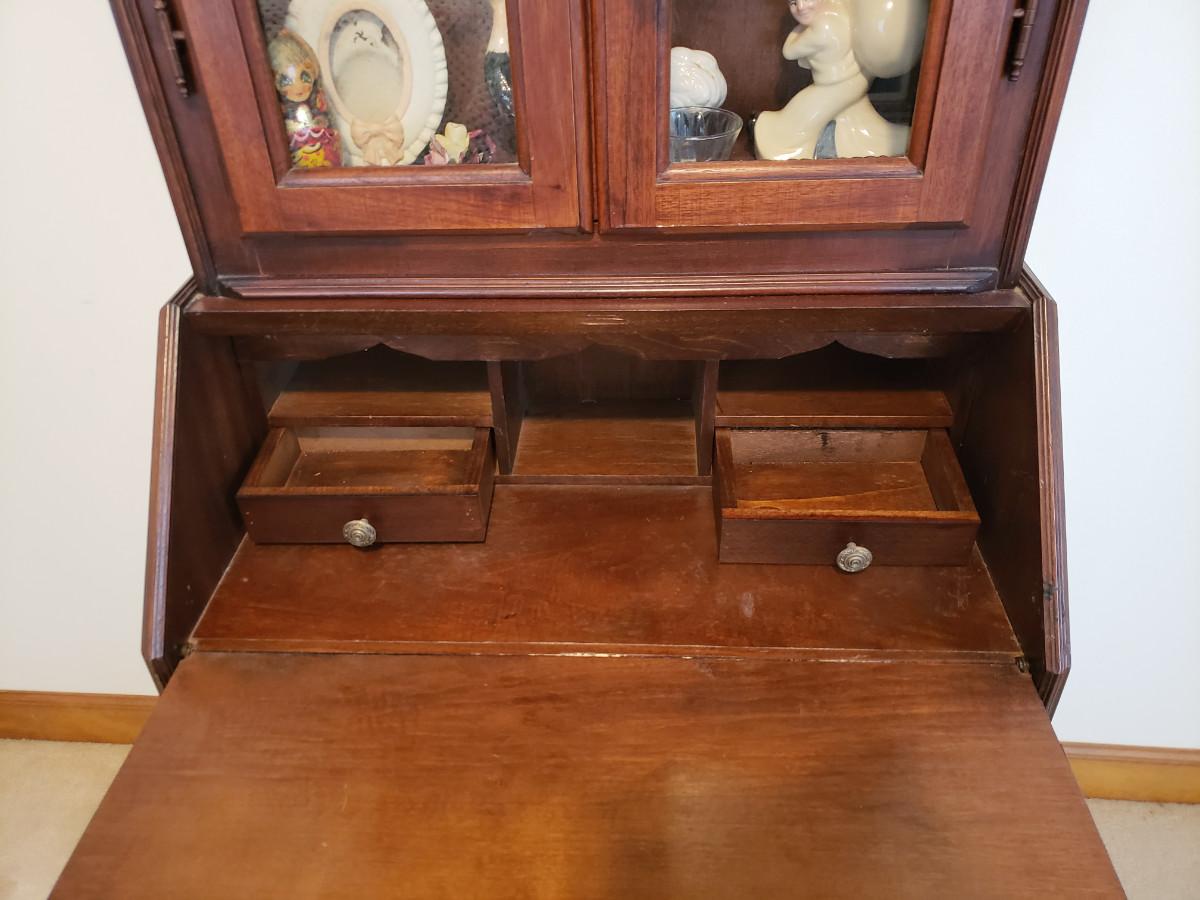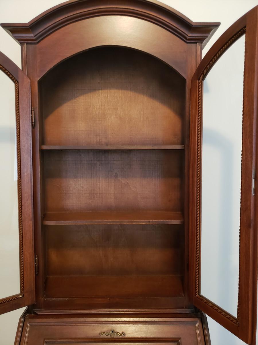 Beautiful secretary has some inlay work and comes with 3 keys. Measures 26x14x76. See pictures for more details.