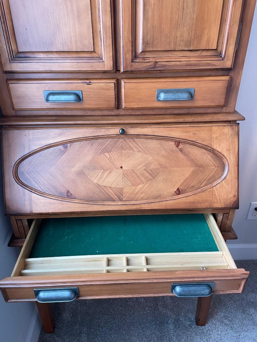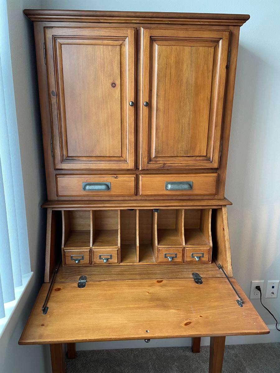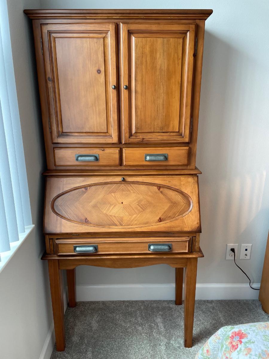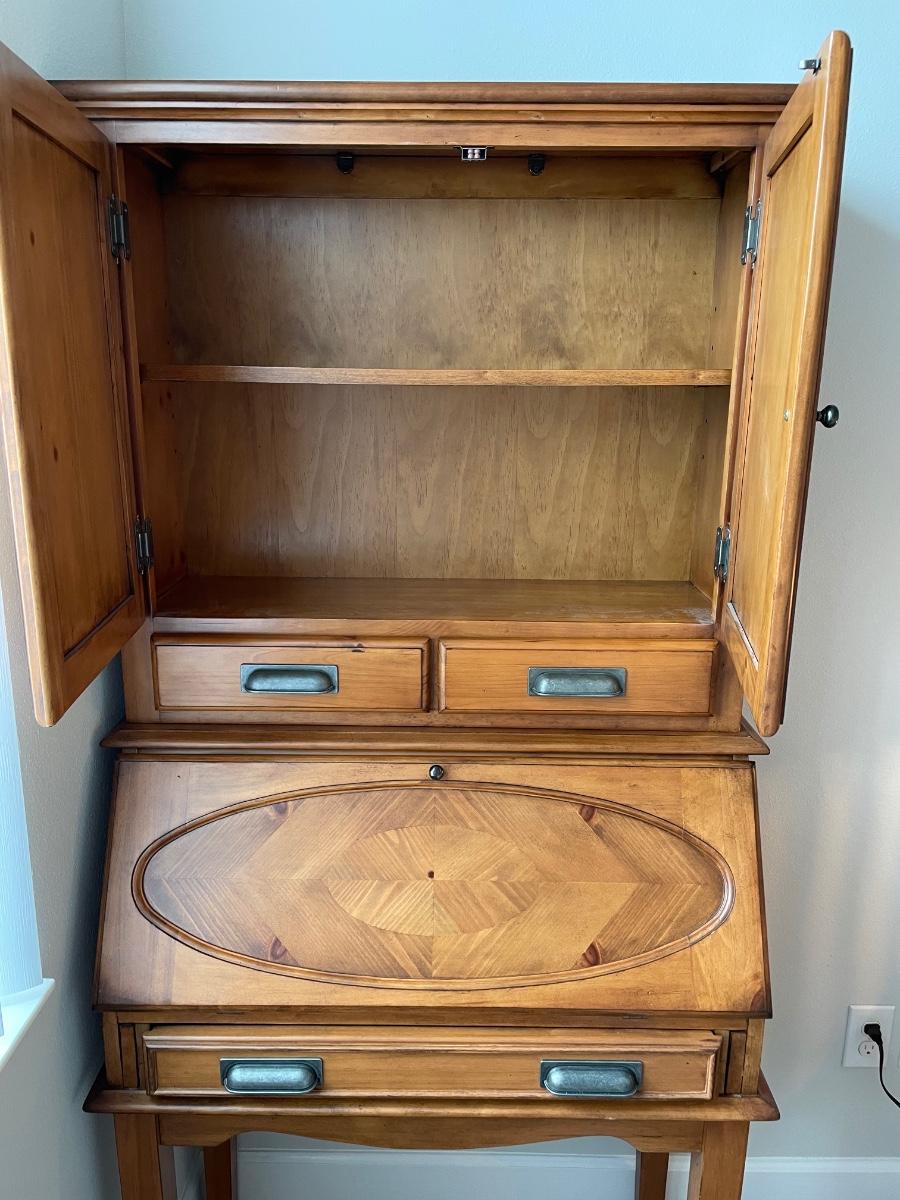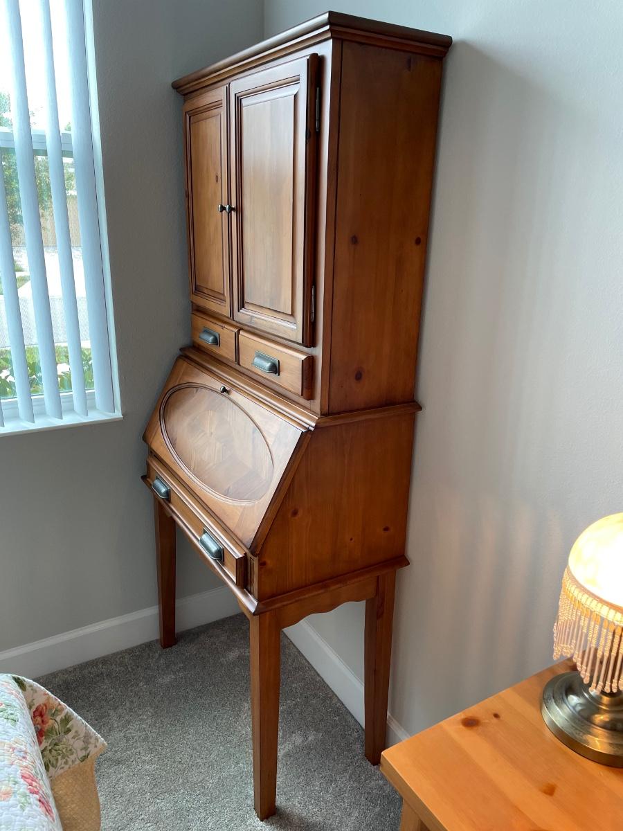 Beautiful secretary desk. Small enough to fit in a small area, but plenty of storage for office supplies!