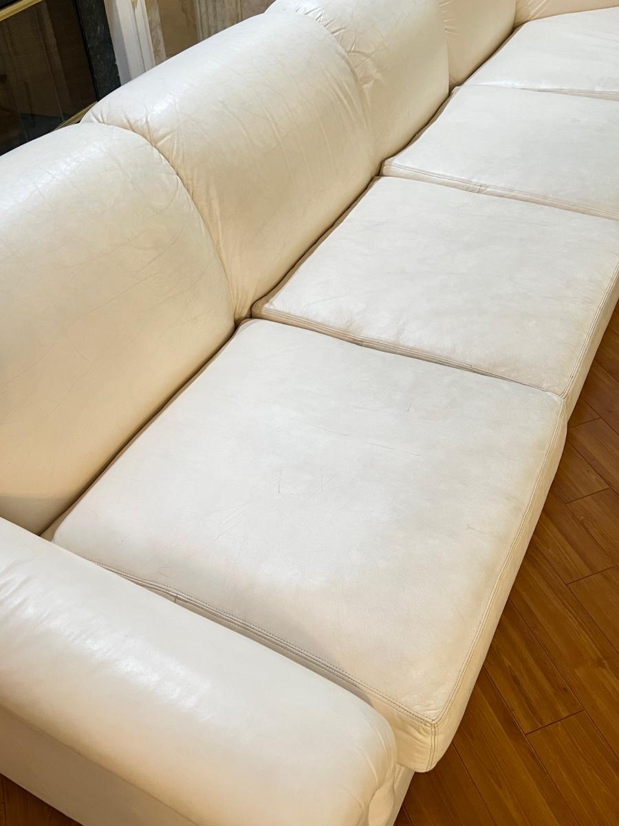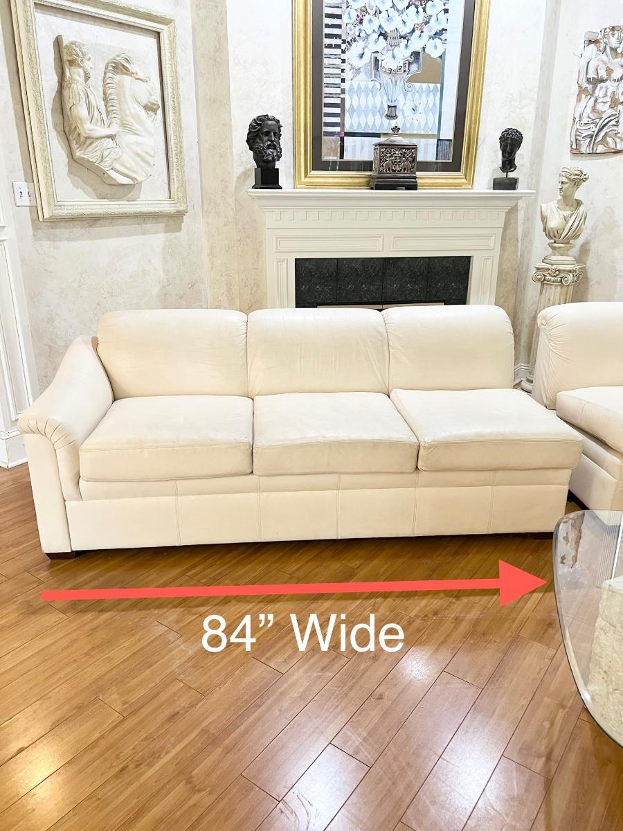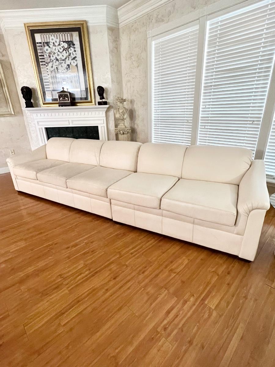 Sofa has 3 sections ~ Sofa has no reclining areas ~ Sofa has been well used, has wear from use & age, see photos for condition ~ 34 inches H x 14Ft W x 9Ft D
