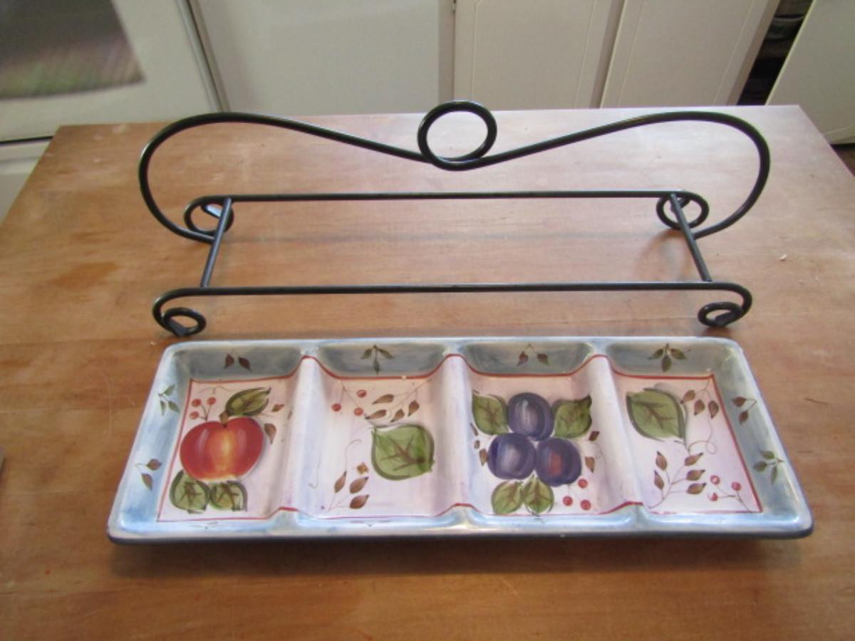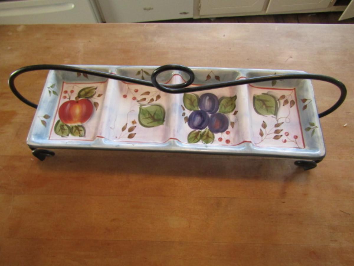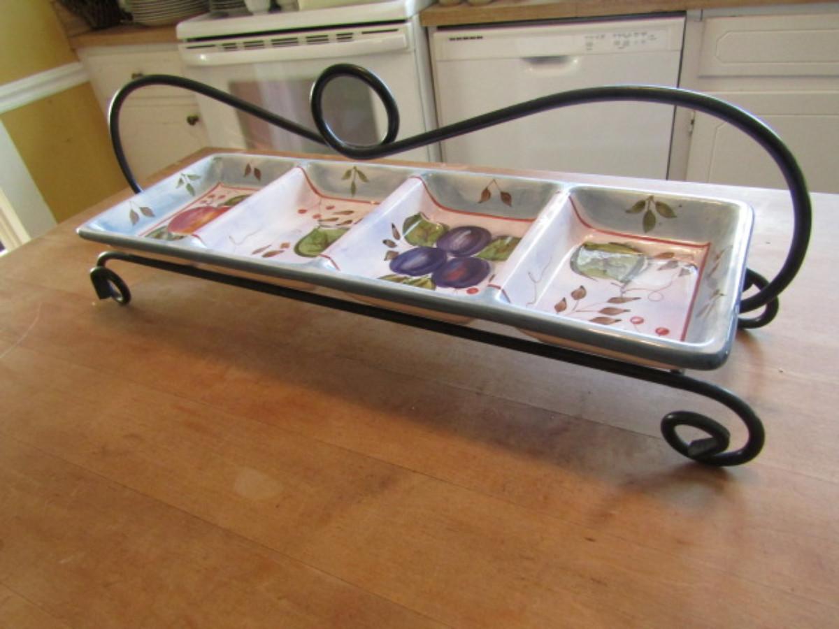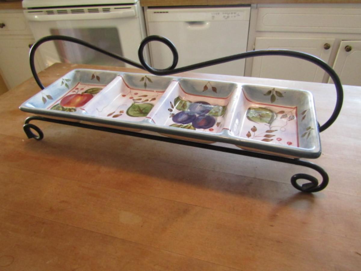Sectioned Ceramic Relish Tray with Metal Stand
