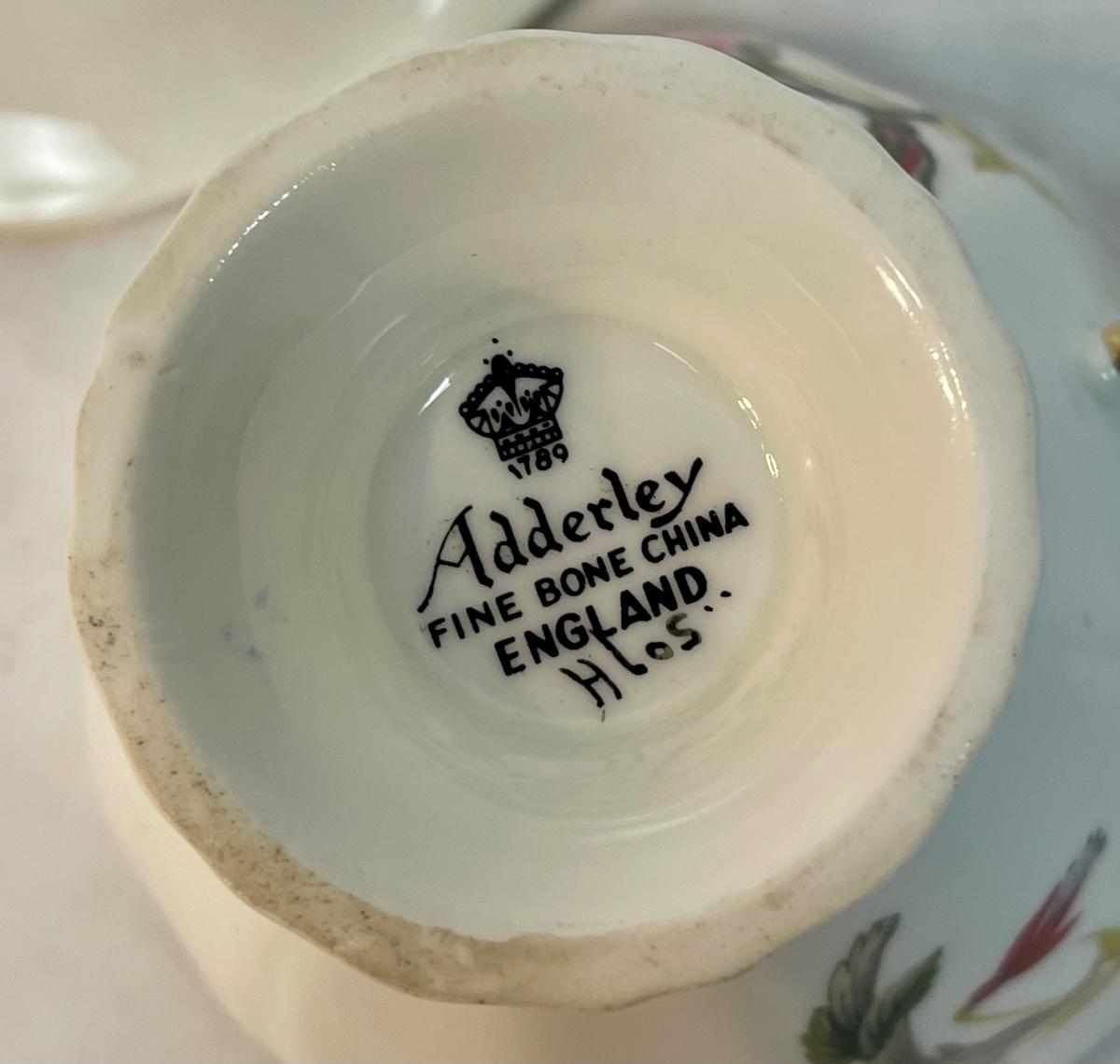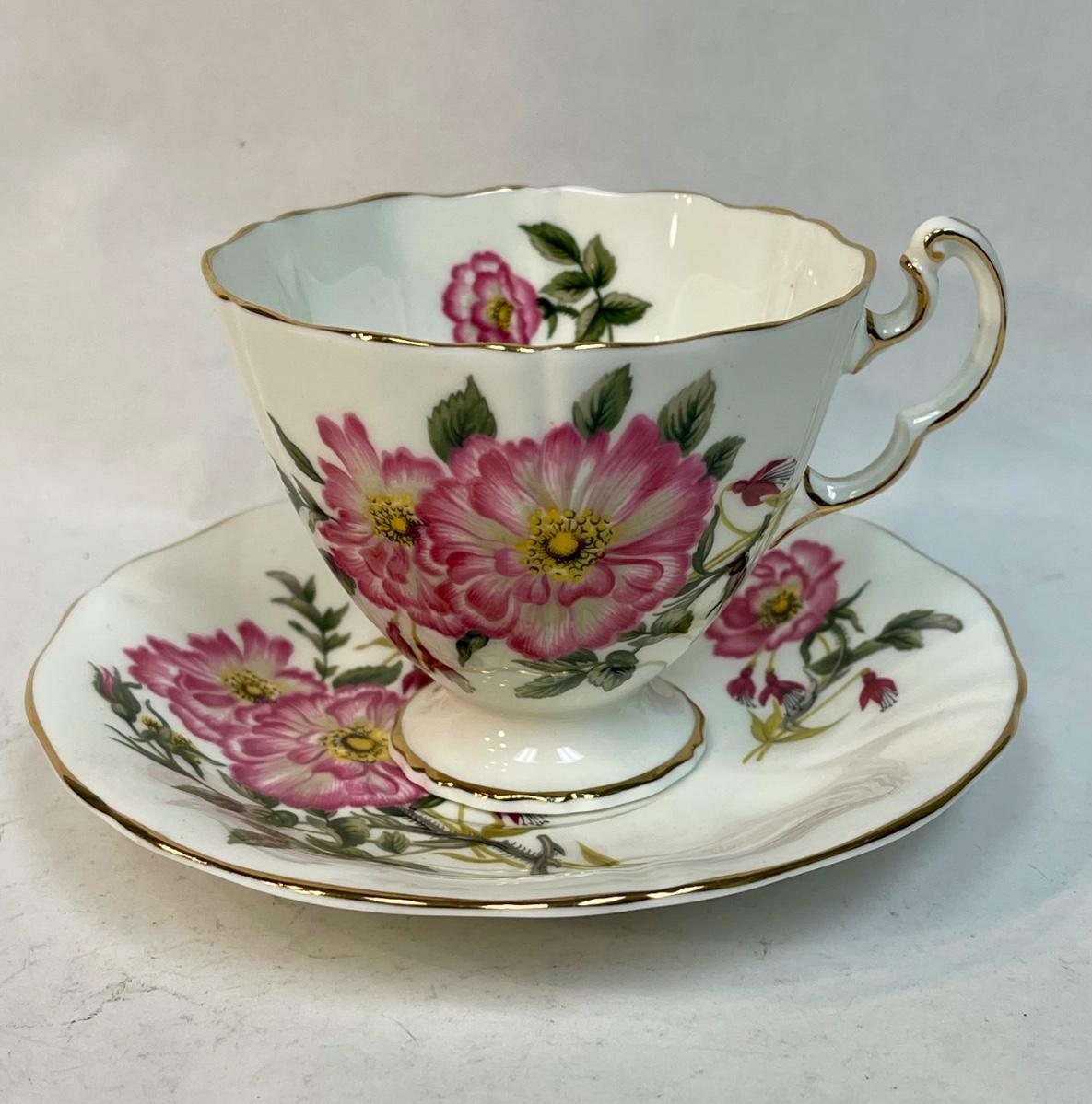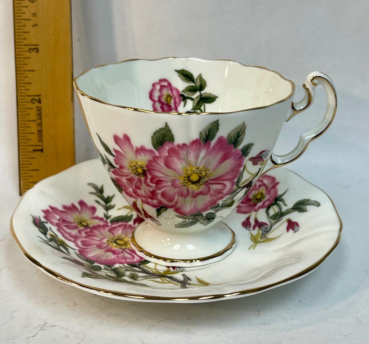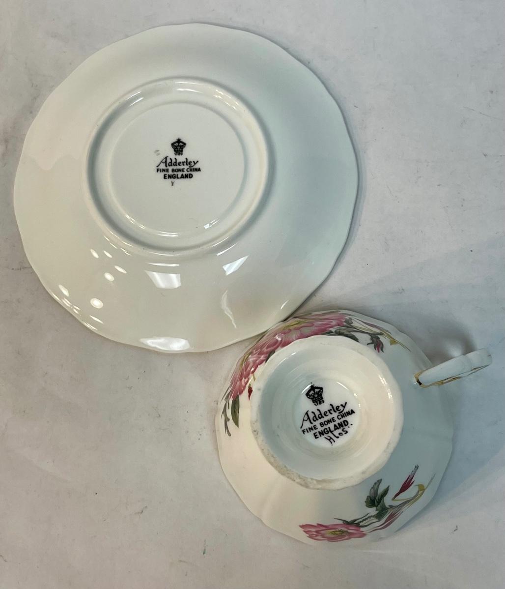 Adderly Fine Bone China Footed Cup and Saucer, Pink and Red Floral, England, 1950s