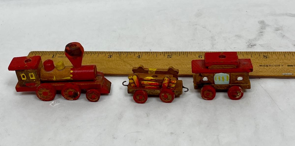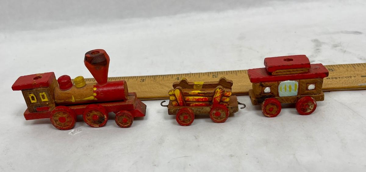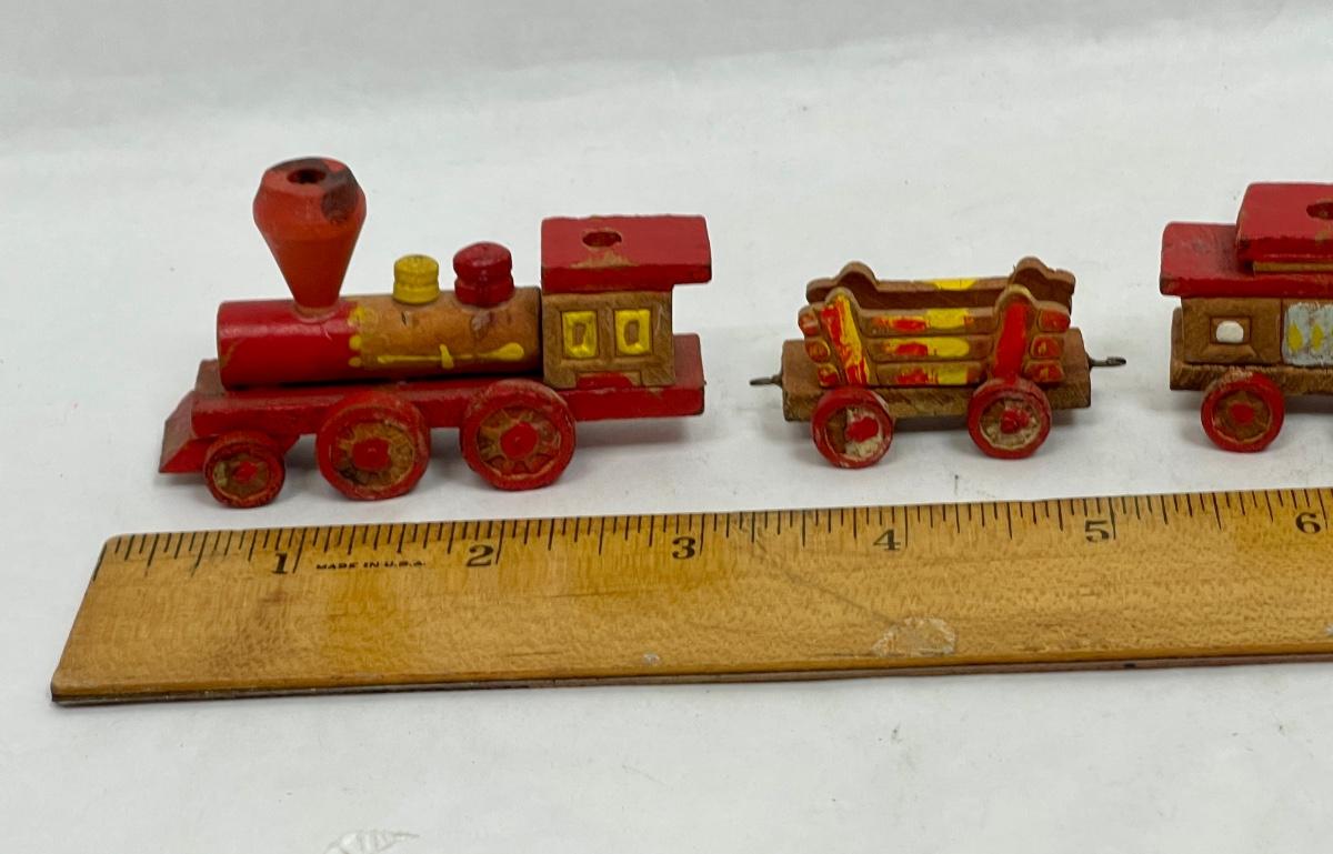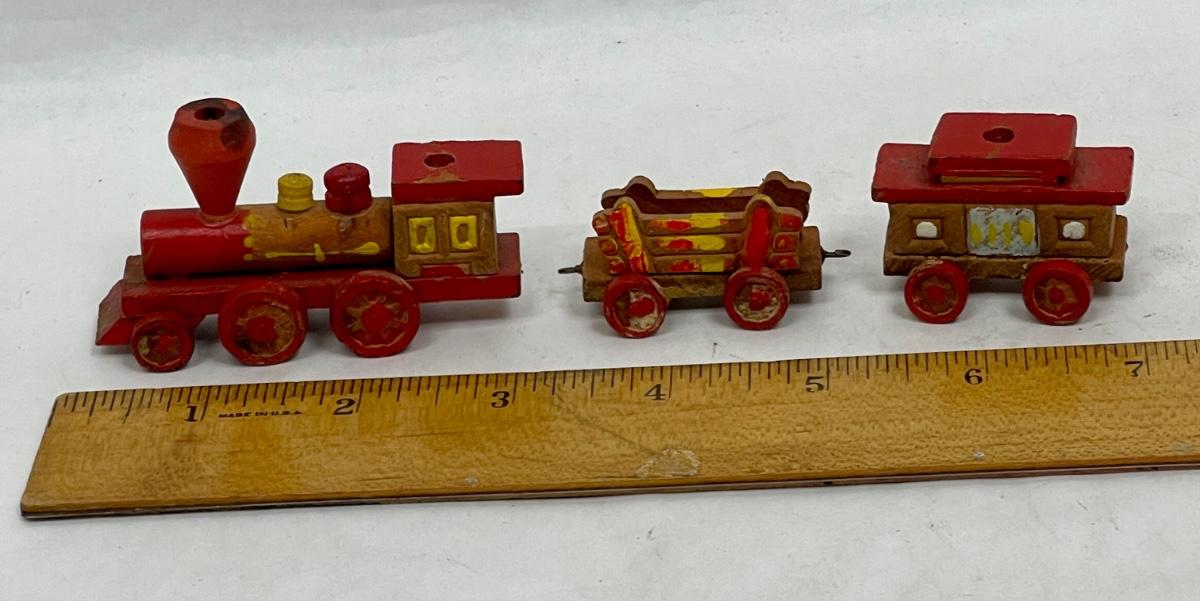 Vintage Hand-Carved Hand-Decorated Old Time Train Set Candle Holders - Made in Japan