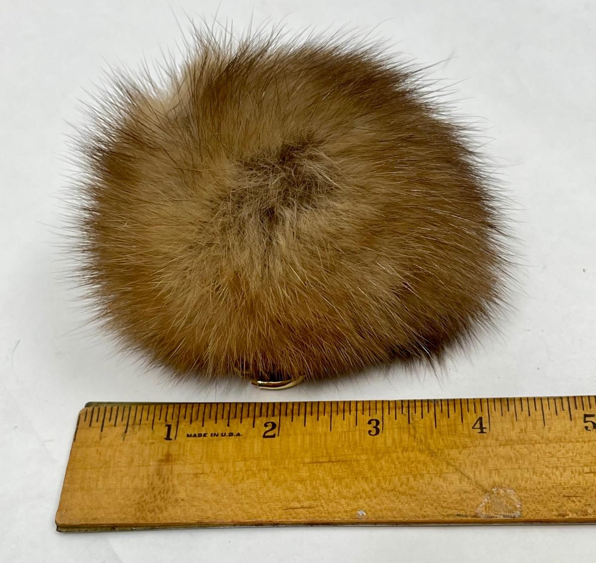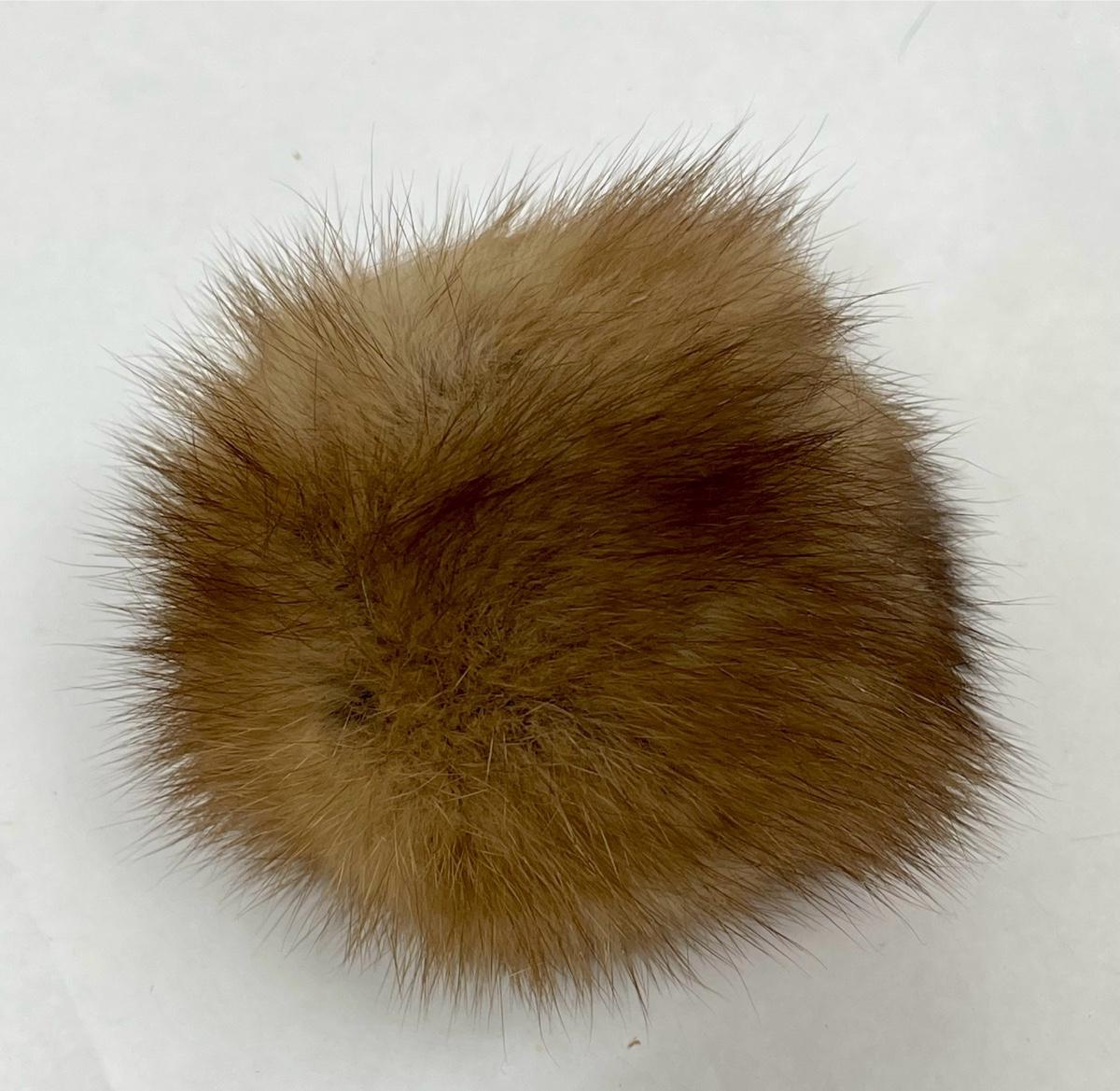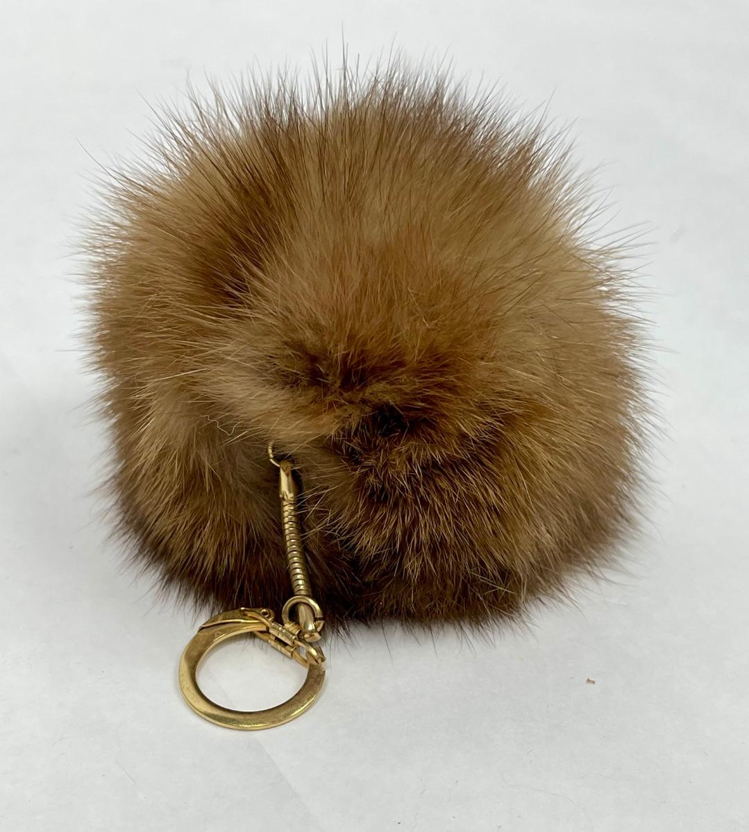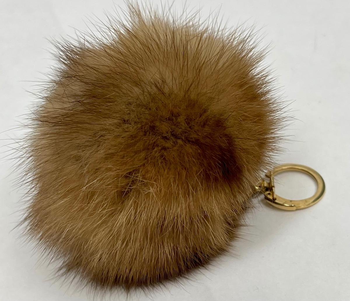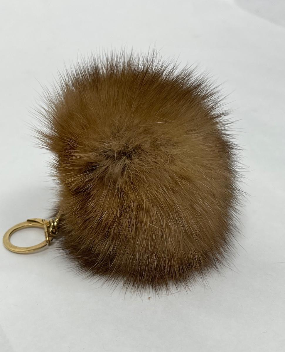 Keychain with medium brown faux fur puff. Good used condition.