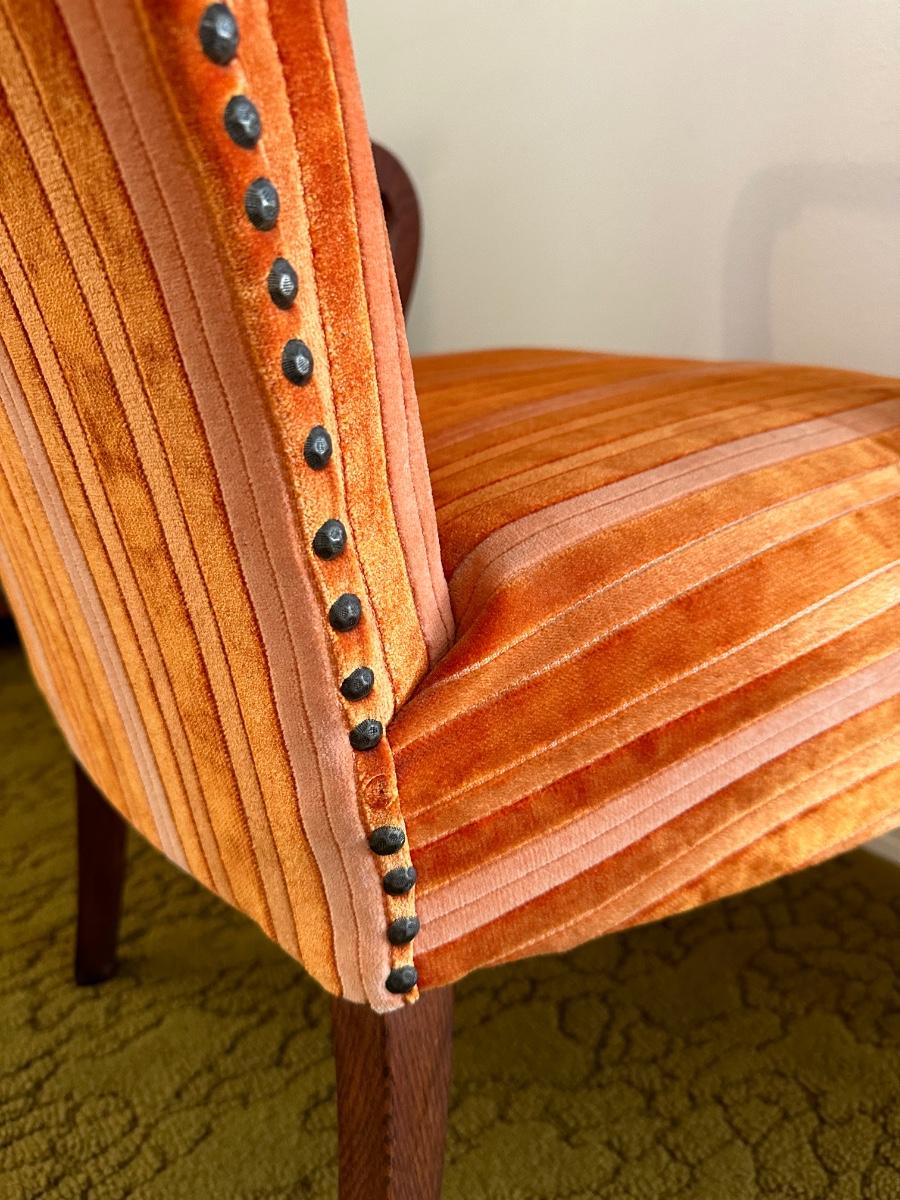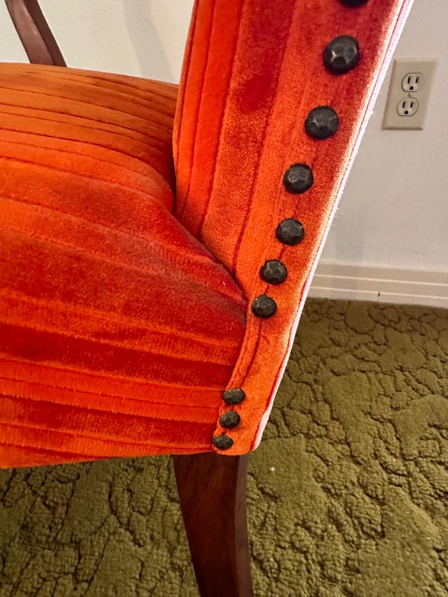 Two of the buttons are missing from the side of chair near the seat and 1 is missing on the opposite side.