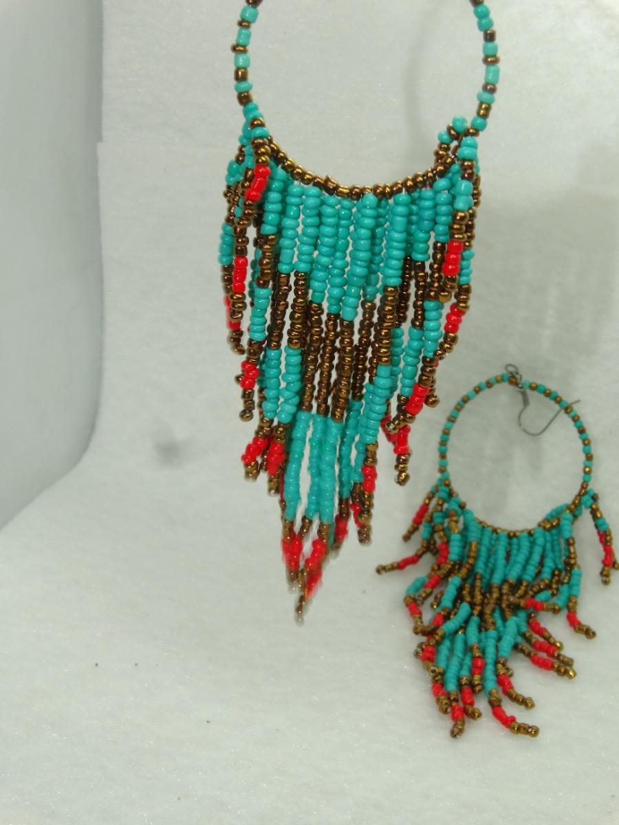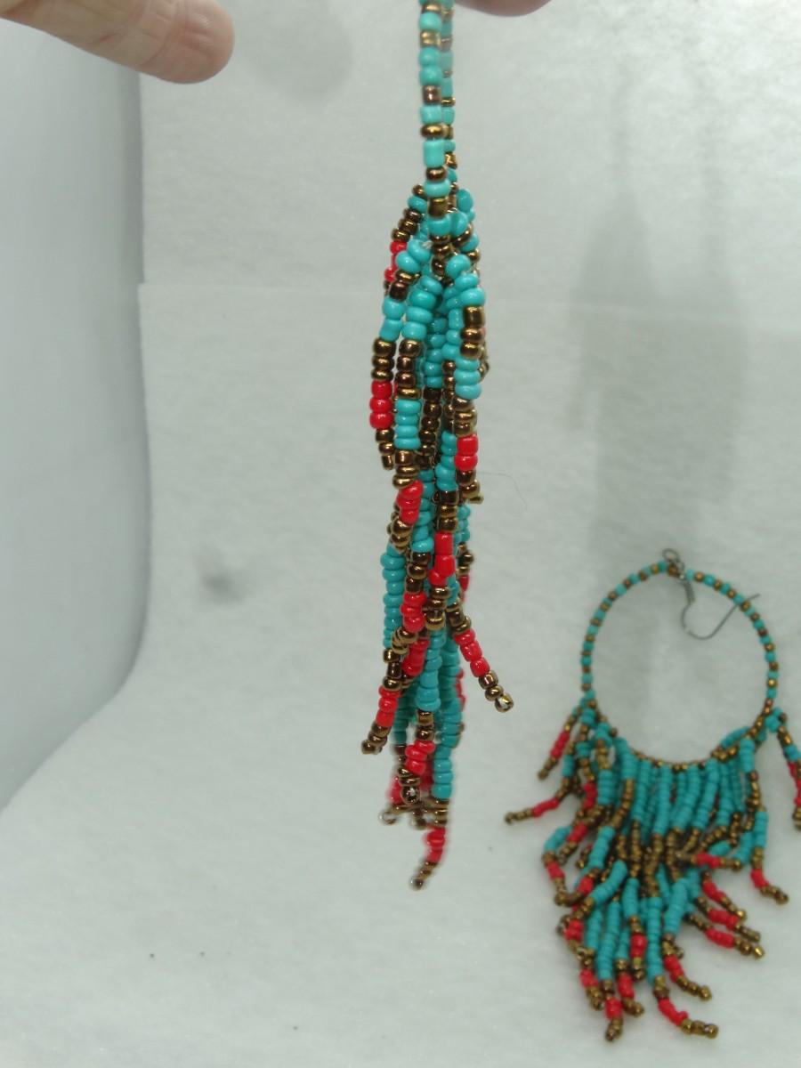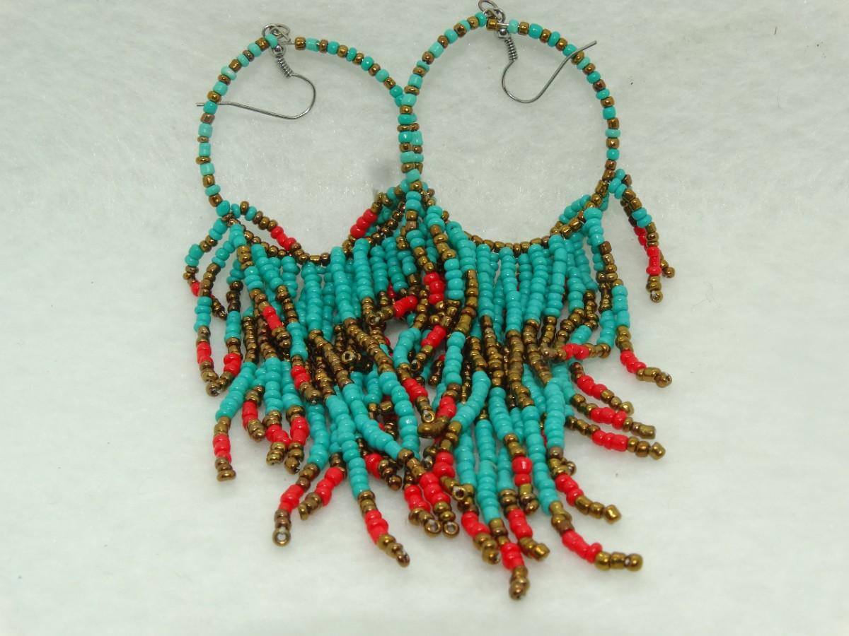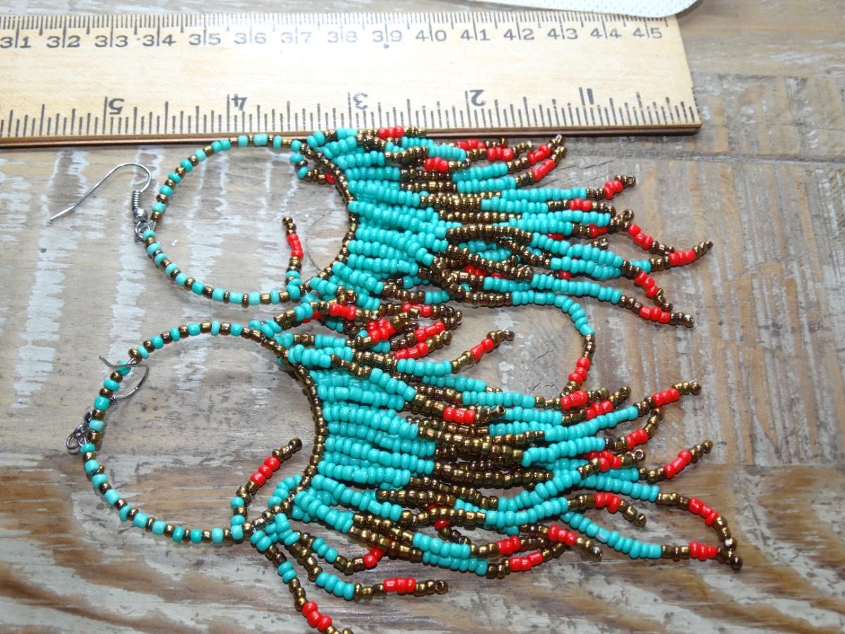 Seed Bead Bohemian Turquoise Dangle Earrings, Southwest Style
