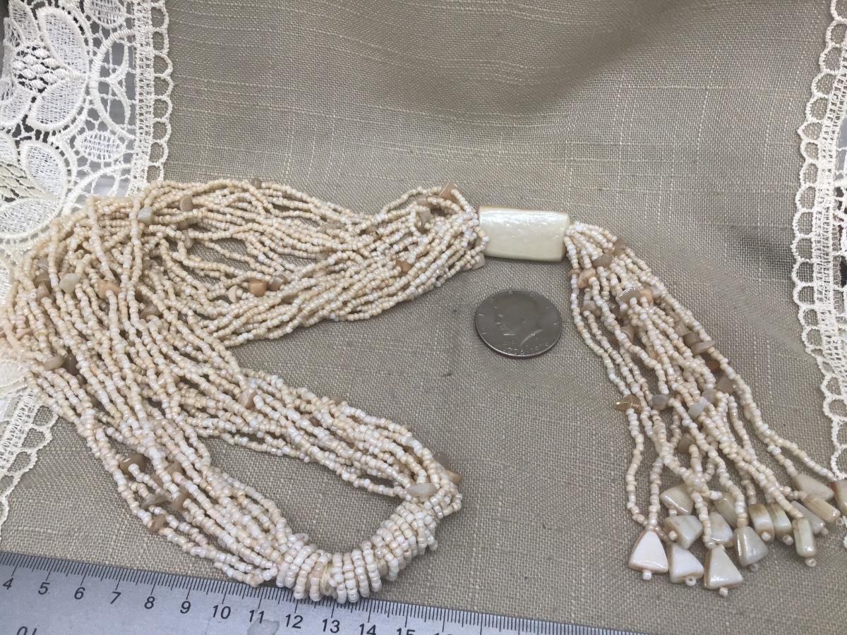 Seed Bead Mixed Glass Beaded Multi Strand Long Lariat Vintage Necklace