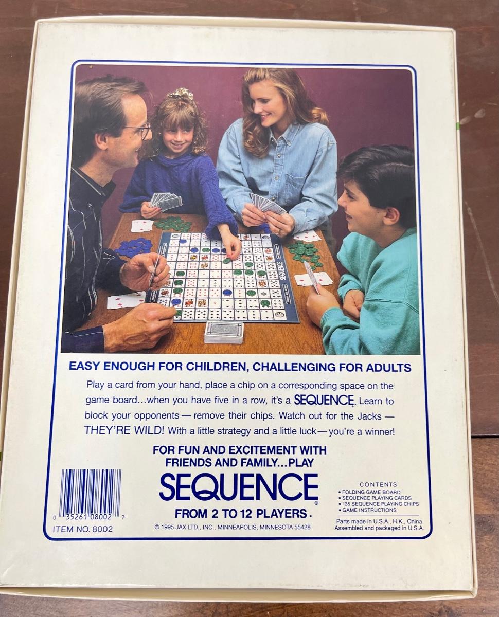 SEQUENCE Strategic Card Board Game. Looks to be complete, some wear to the box.