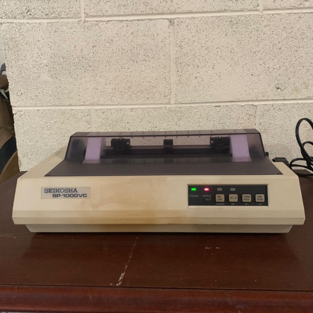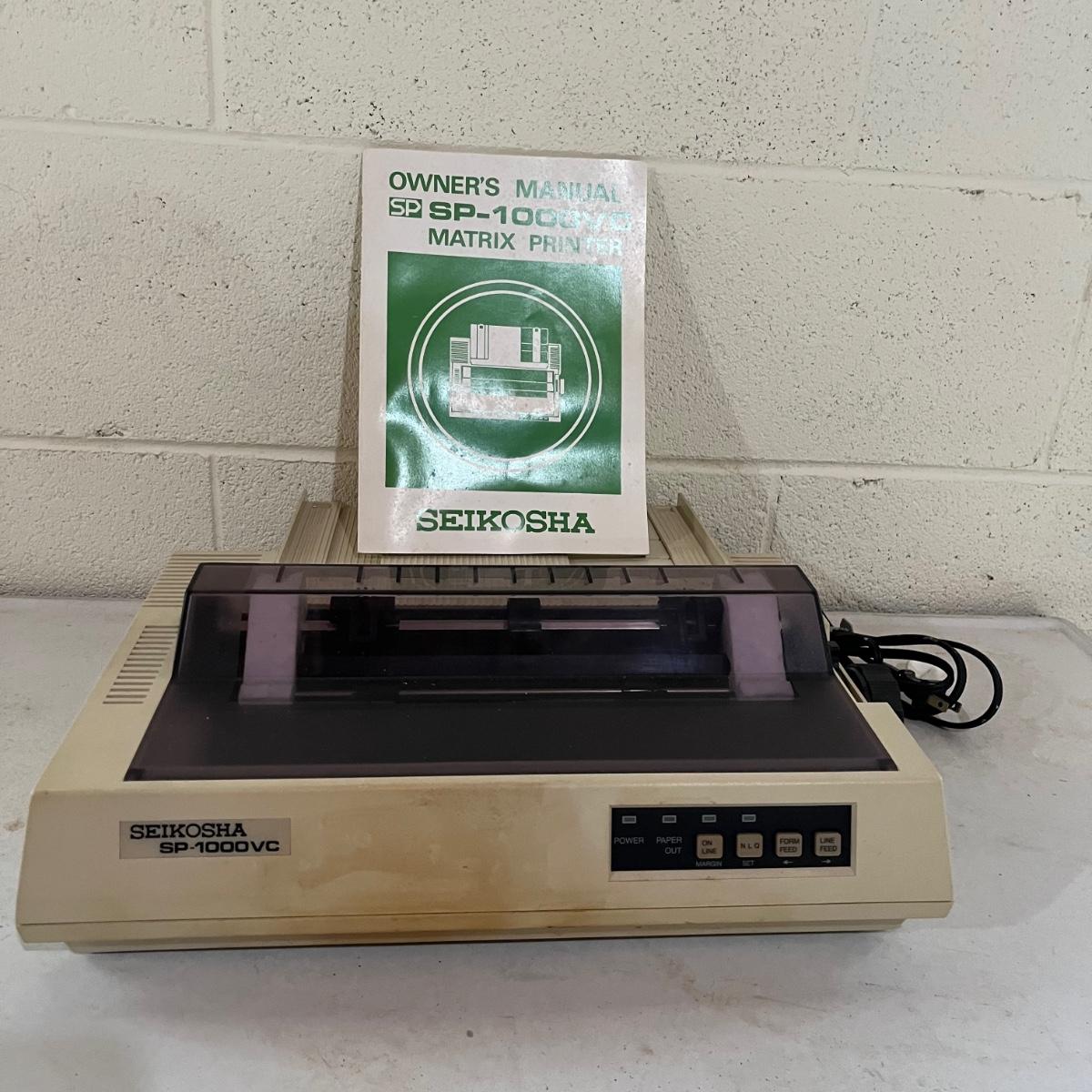 Lot includes a Seikosha SP-1000VC matrix printer. Also includes owners manual. Printer powers on, but was not test with computer.