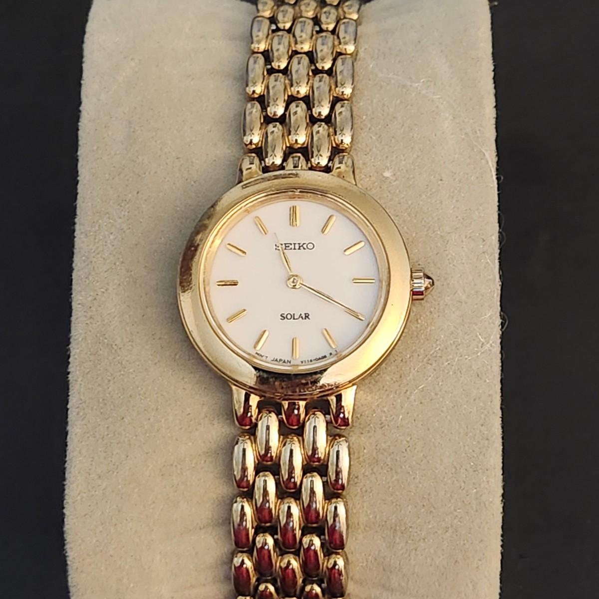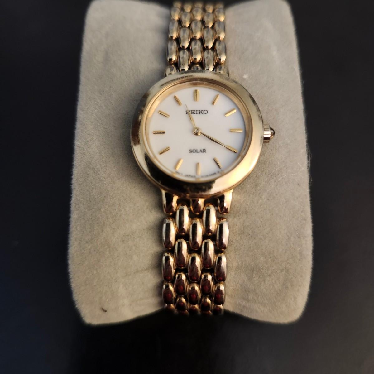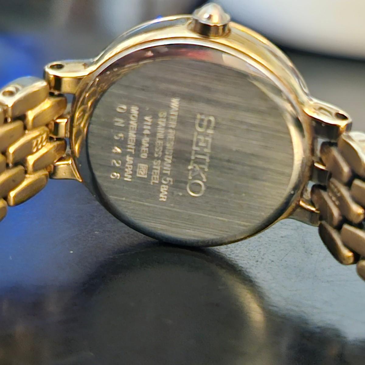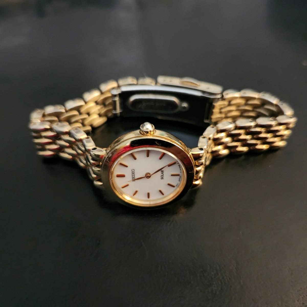 Water Resistant 5 Bar, Stainless Steel, Movement Japan, gold tone, very light wear.