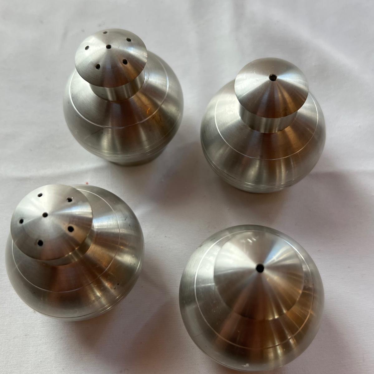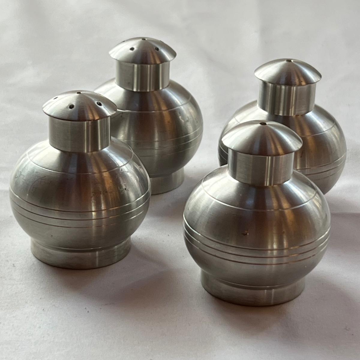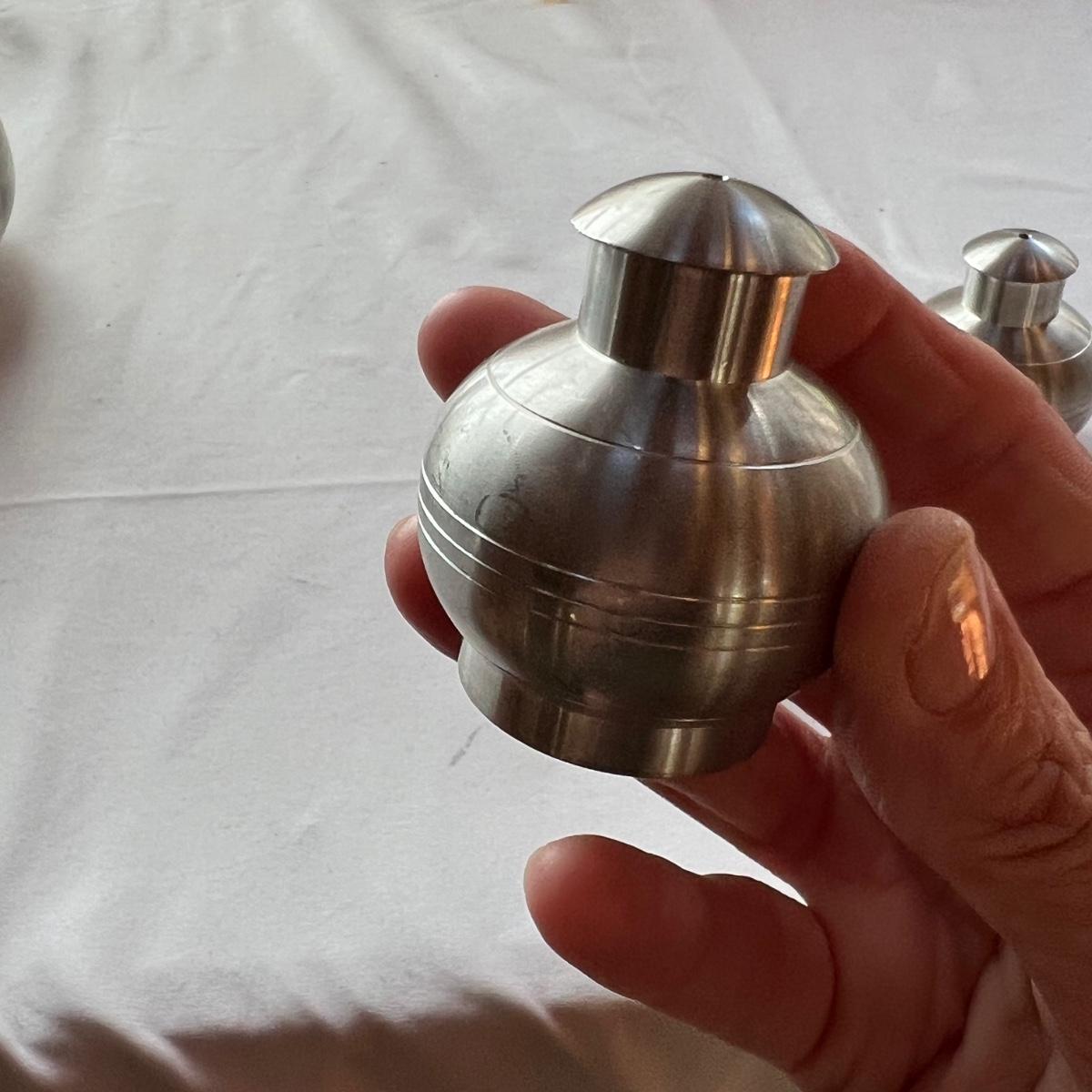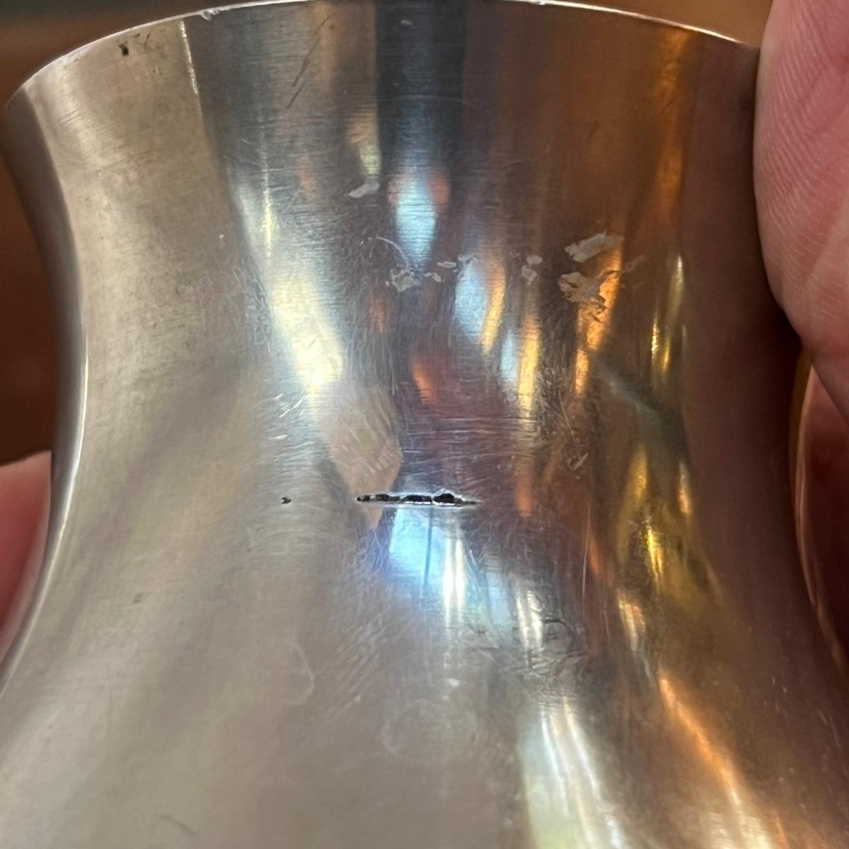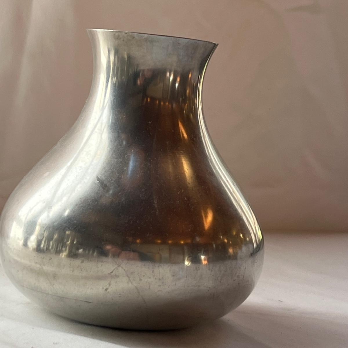 24 pieces of Selangor Pewter that includes a modern handled carafe, eight large stemmed cups (3” x 6”H), eight smaller stemmed cups (2.5” x 5”) and more.