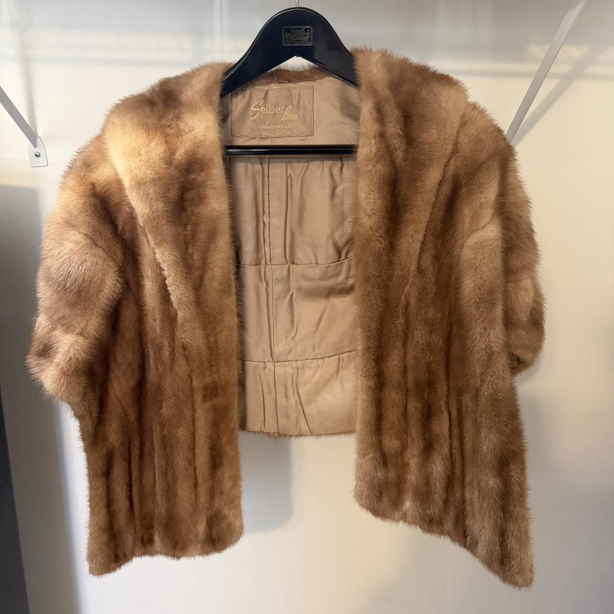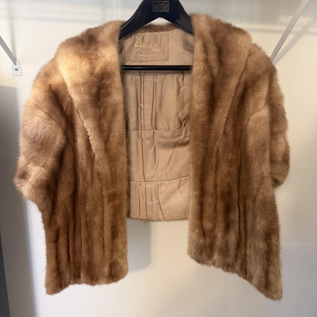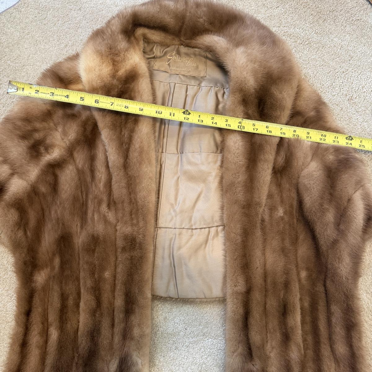 Stunning light tan Selber Bros stole. It appears to be a mink fur but we cannot authenticate it. It has a silk lining with initials. See pictures for details and measurements.