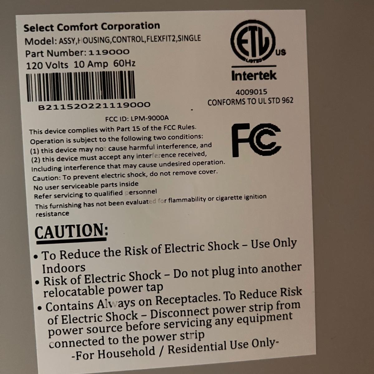 Sleep Number Select Comfort Queen Base With Remote