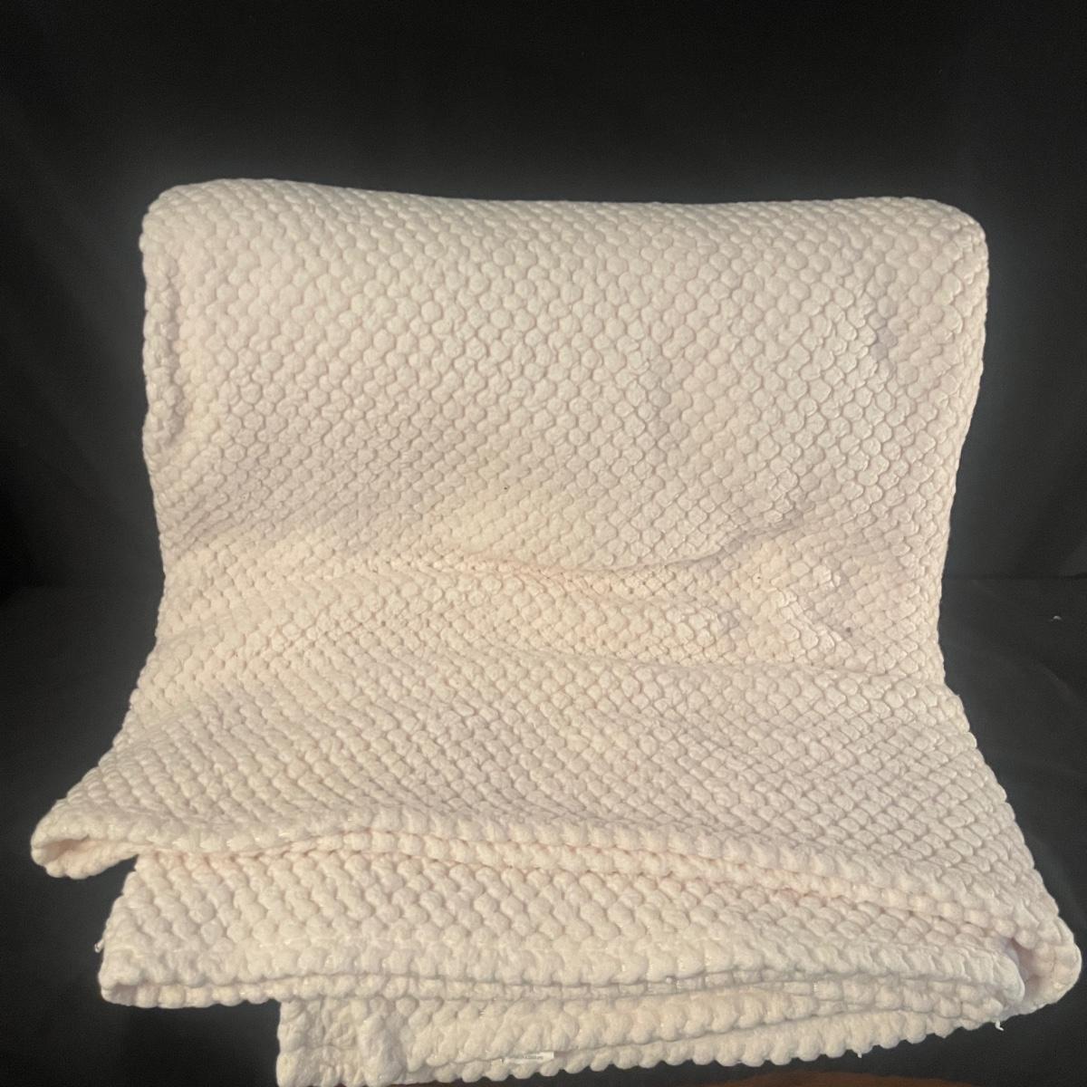 Lot includes a selection of blankets in an assortment of colors and materials. Largest blanket measures 90” x 90”.