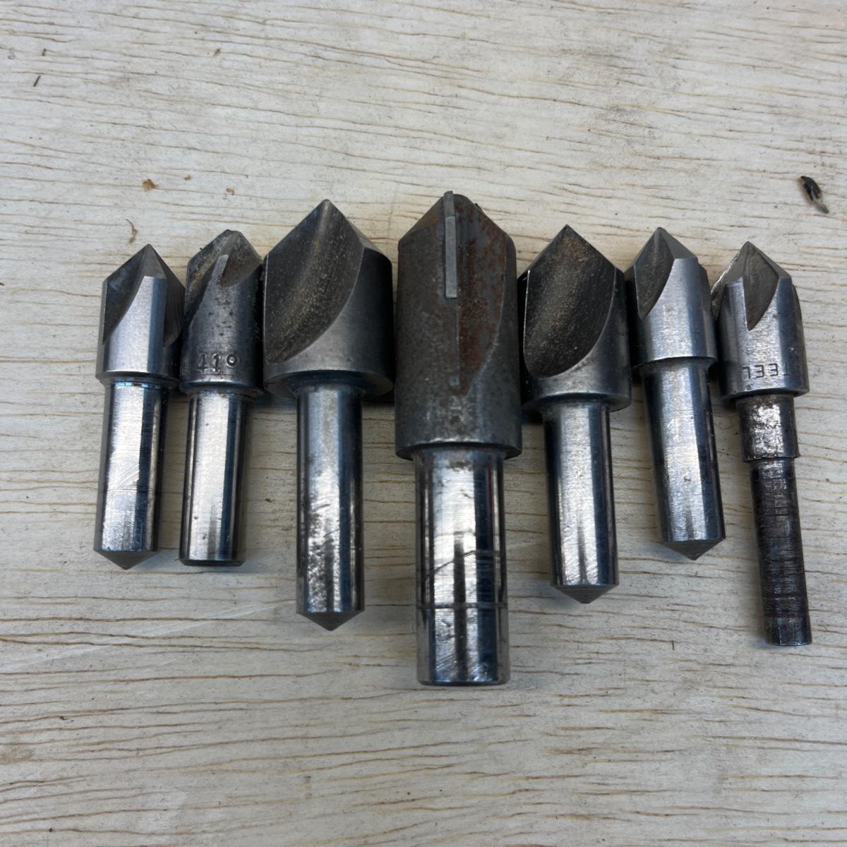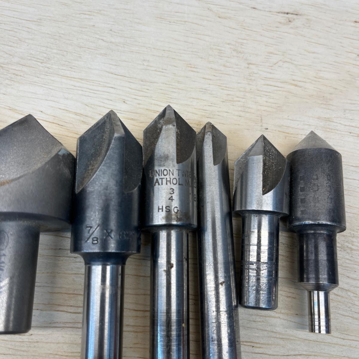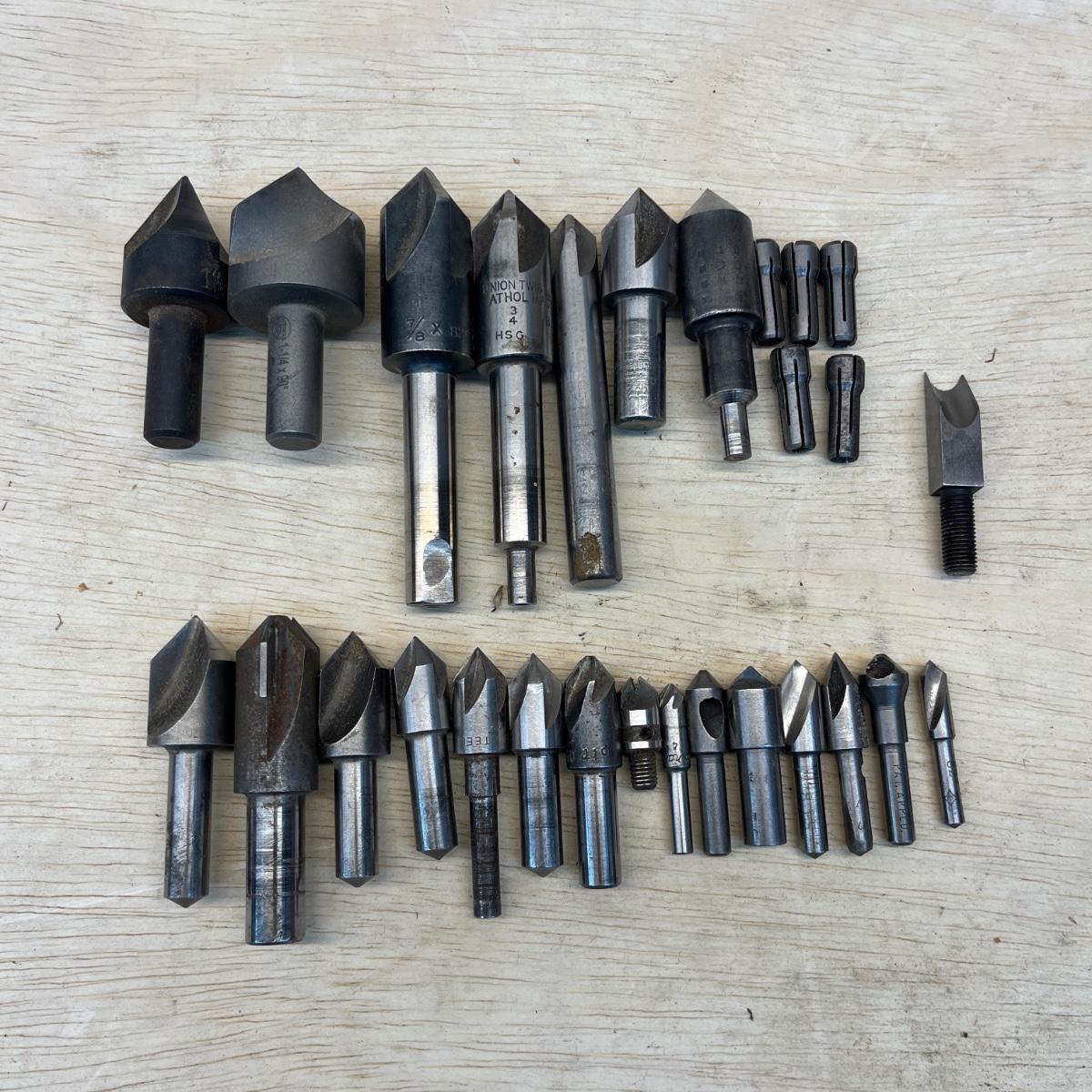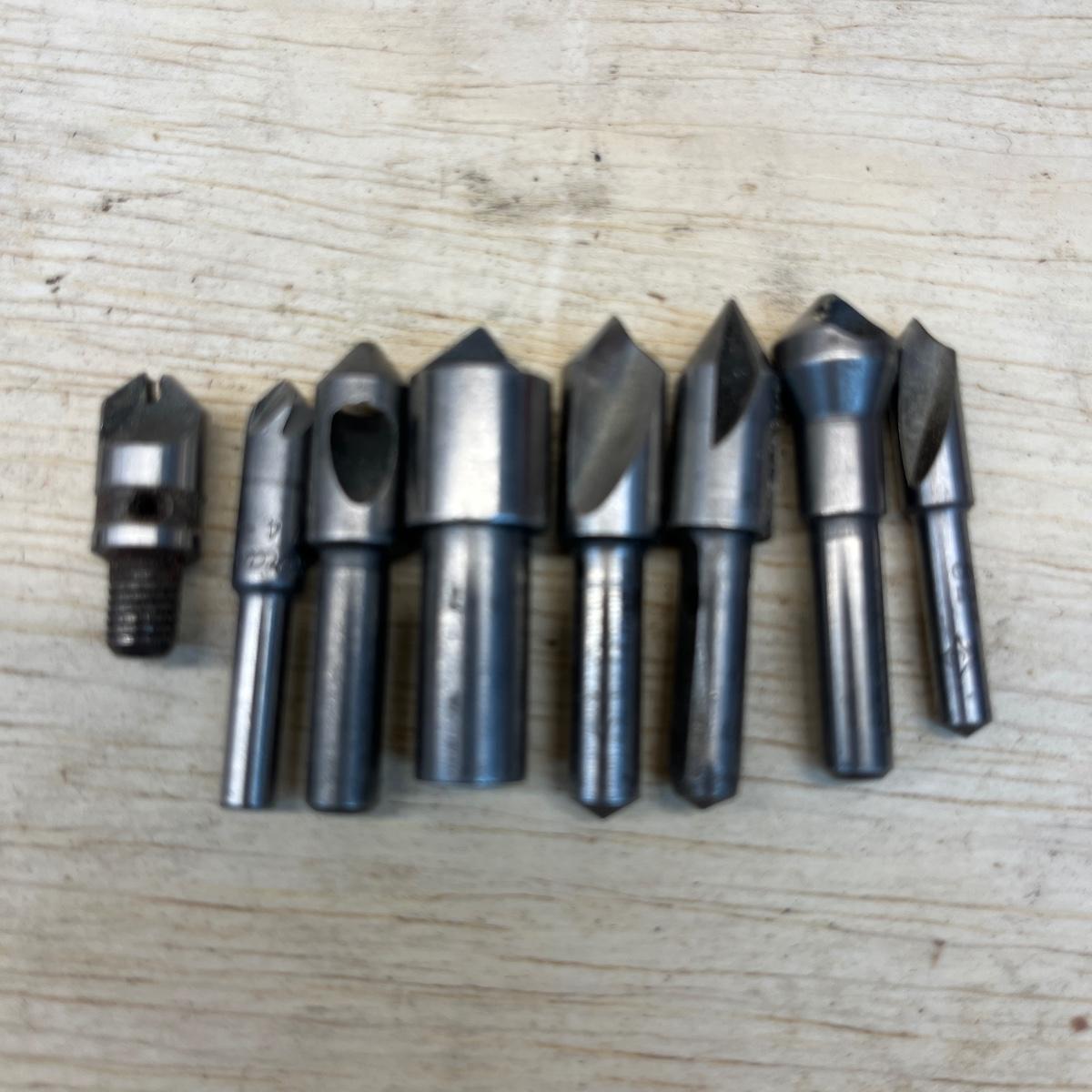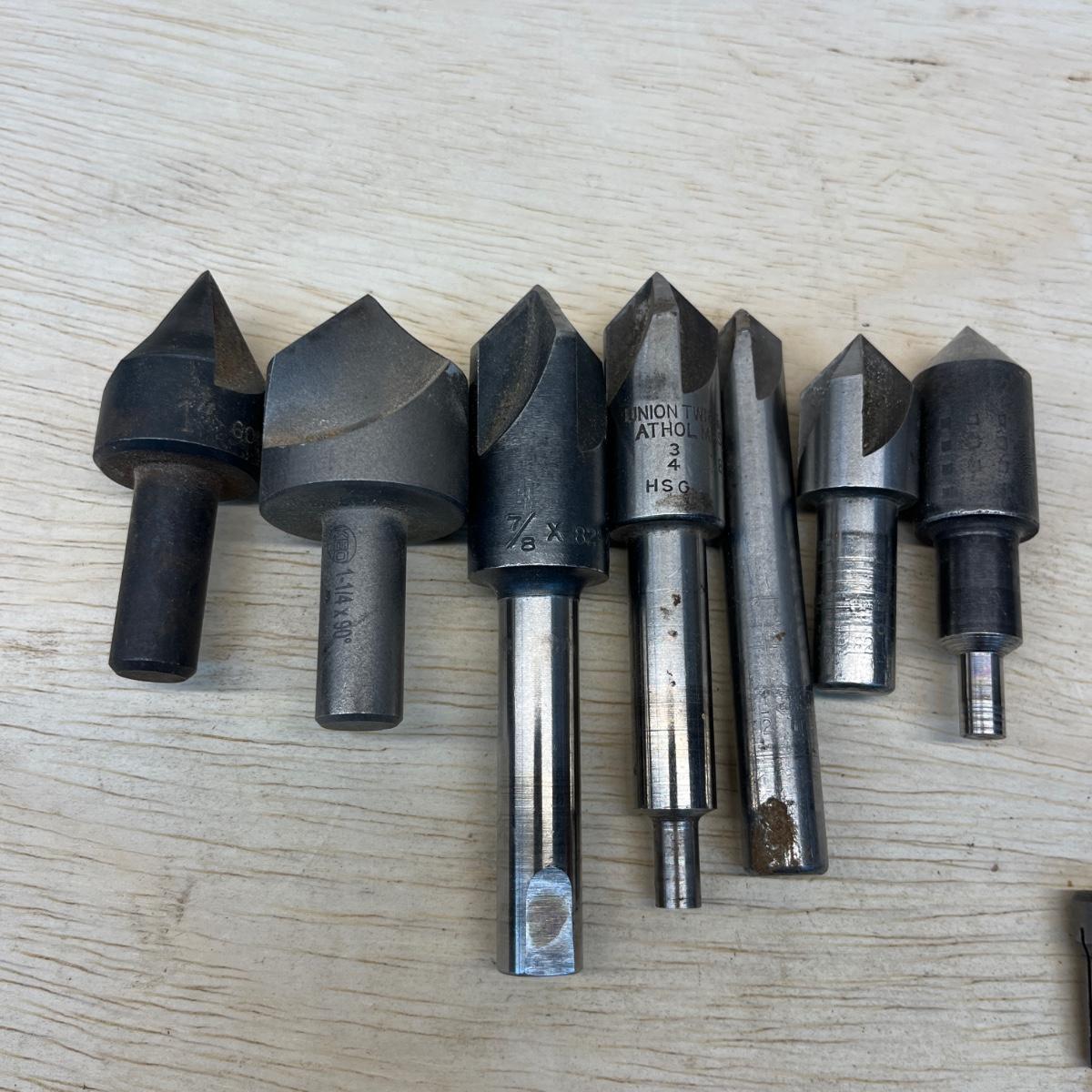 Lot includes over 15 countersink bits in a variety of sizes with the largest bit measuring.5”D x 4”H