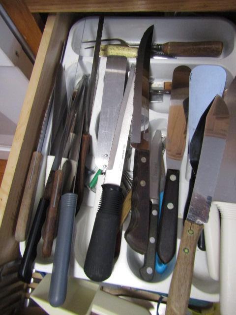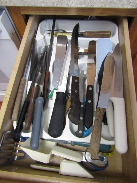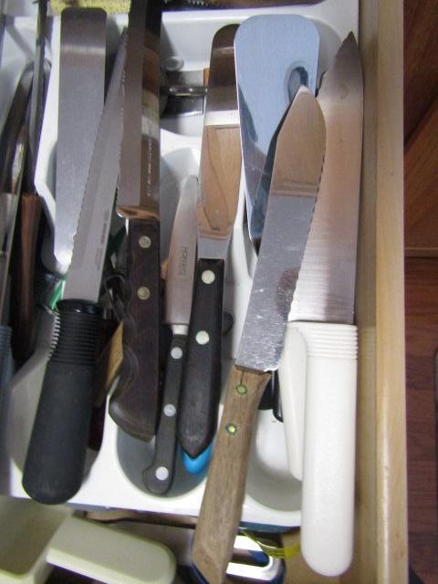 Selection of Cutlery- Assorted Sizes, Types, and Makers. Hoffritz, Ekco, Good Grips, and Ikea among brands.