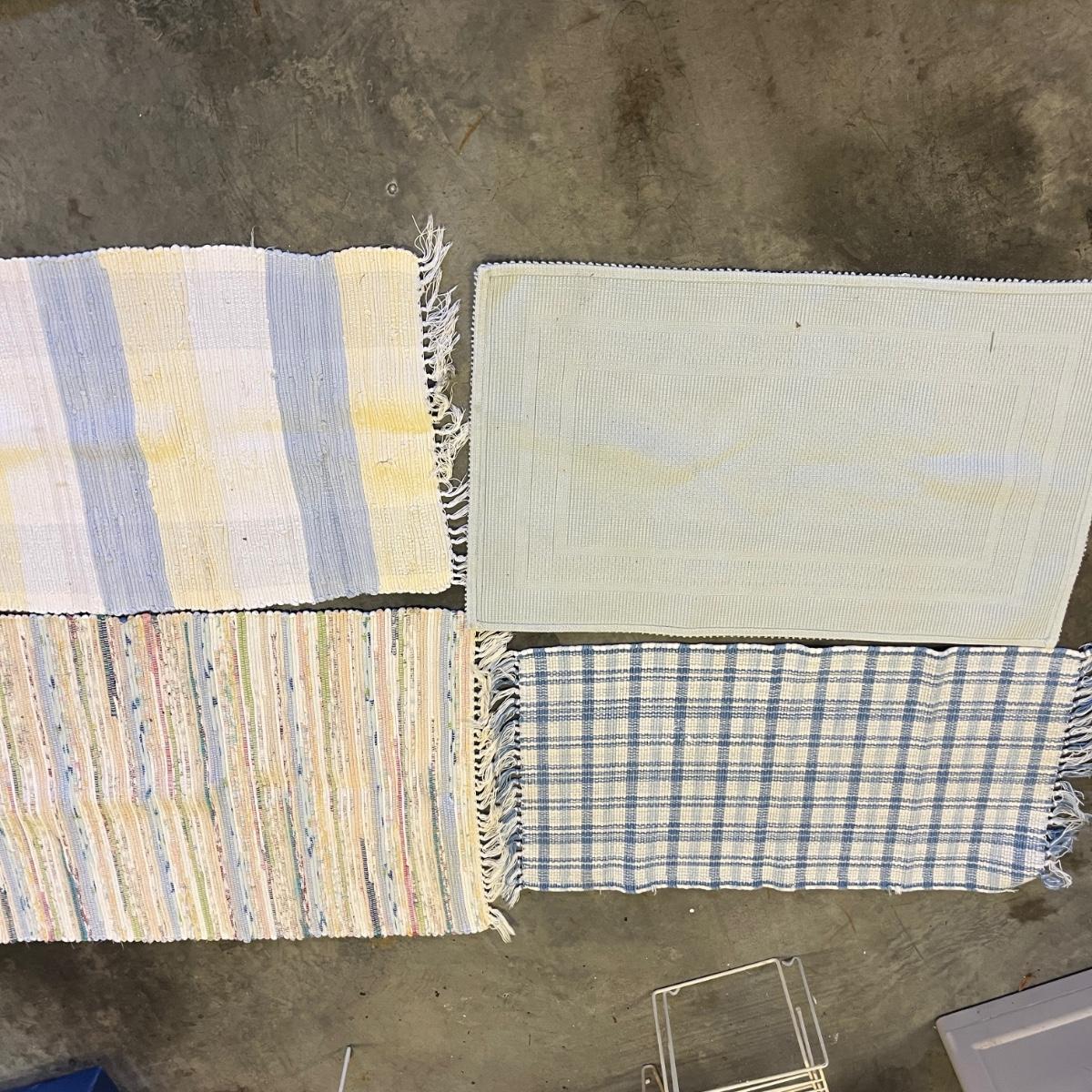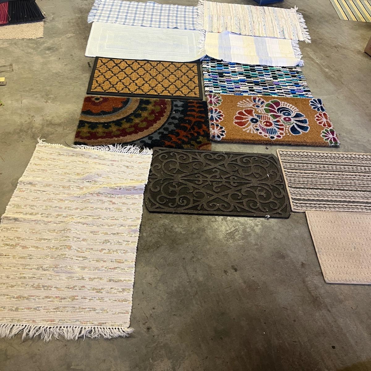 Lot includes five outdoor mats, six indoor mats and one runner. Largest mat measures 20” x 52”.