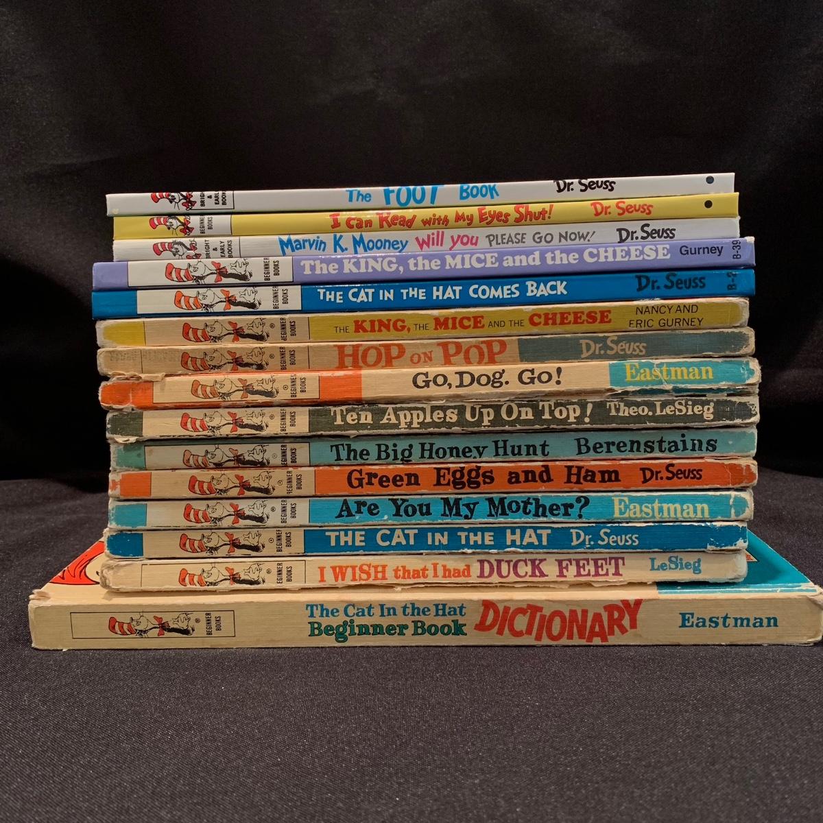 Selection of 15 Dr. Seuss books new and old. Lot includes Go Dog Go!, Green Eggs and Ham, The Cat in the Hat, I WISH that I had DUCK FEET, and more. Largest book measures, 8.25” x 11”. Please see photos for more details. Shipping available. Shipping can be costly. We suggest contacting our preferred local shipping provider, Postage Express, with dimensions and getting an estimate before bidding: (828) 670-5501 or postageexpress@yahoo.com.