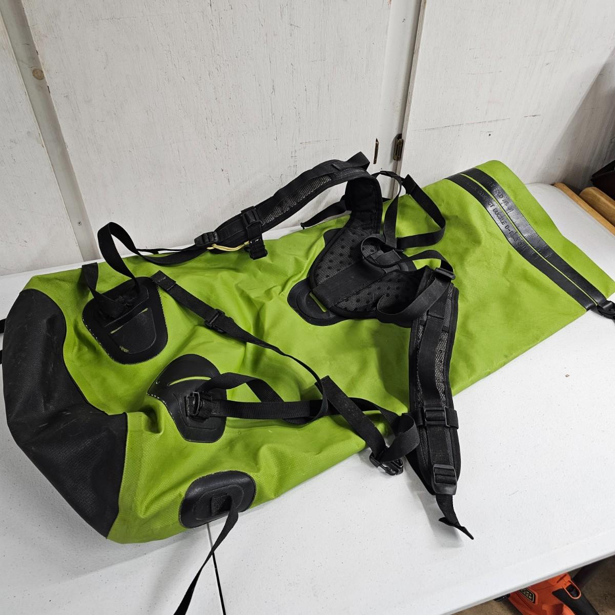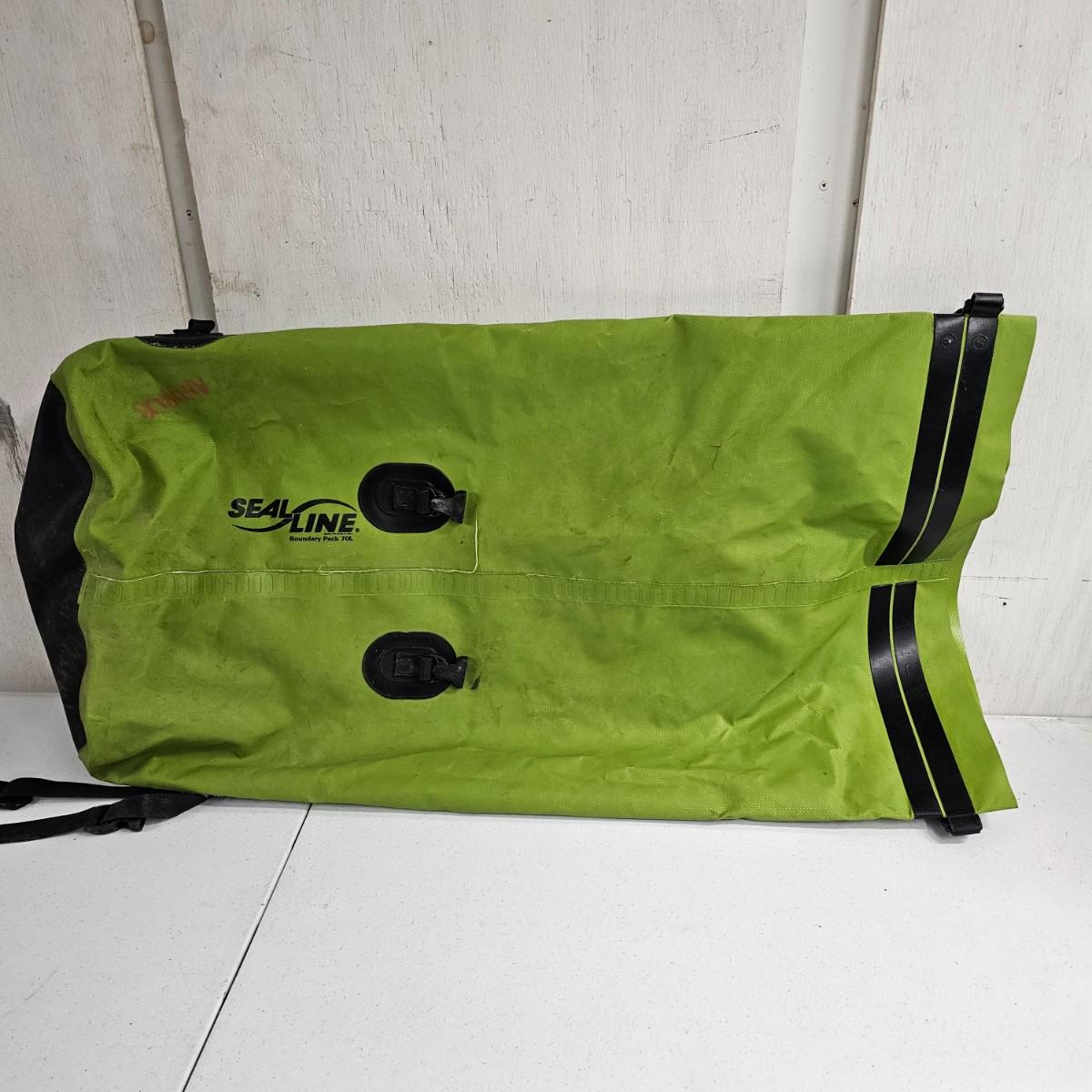 Three large dry carry bags for aquatic activities and also three smaller pouches for keys and such. Large green Seal Line bag is 36" x 22", has shoulder straps for carrying larger items. Orange Seal Line is 26"x 14", is a tube style bag. Blue H2O Zero bag has handles and shoulder strap, measures 22" x 17" x 14"H. Small pouches are about 4.5" x 8". See photos for details. No guarantee of water tightness on these items as they are used. Local pickup only.
