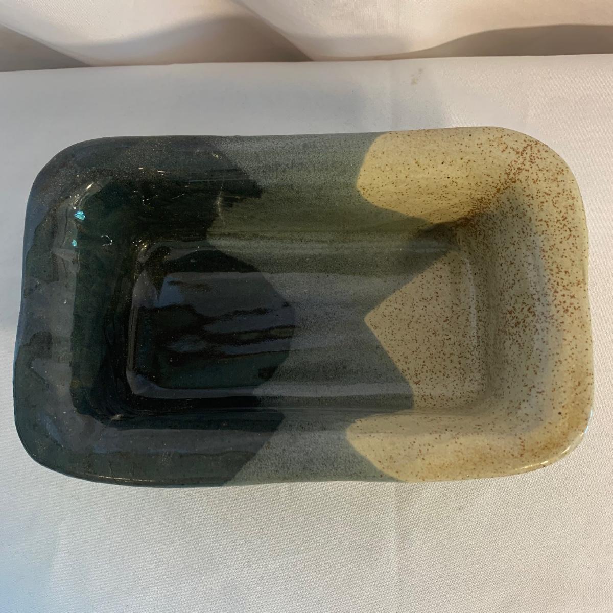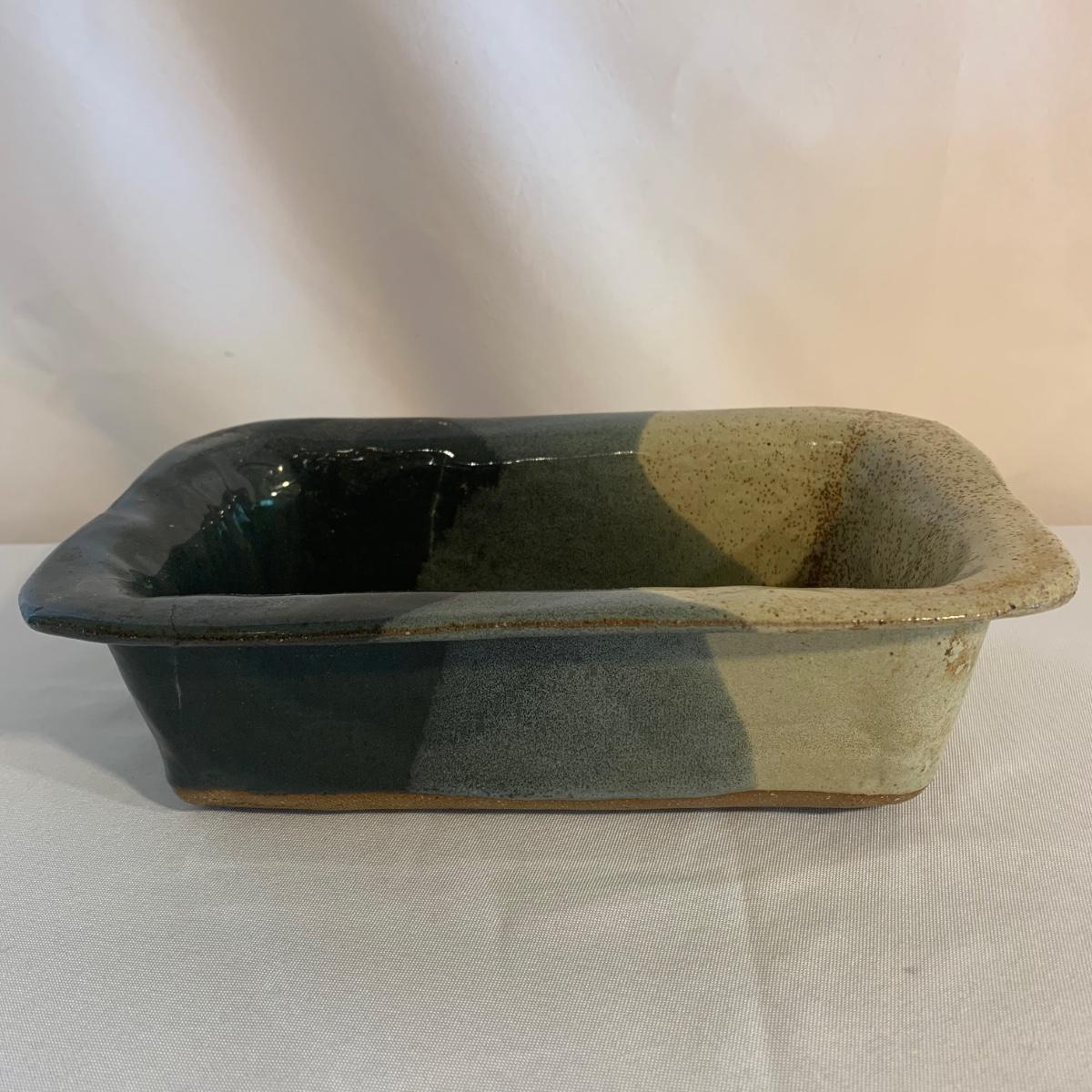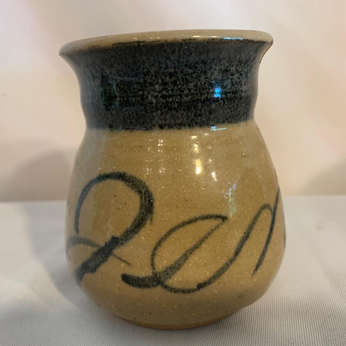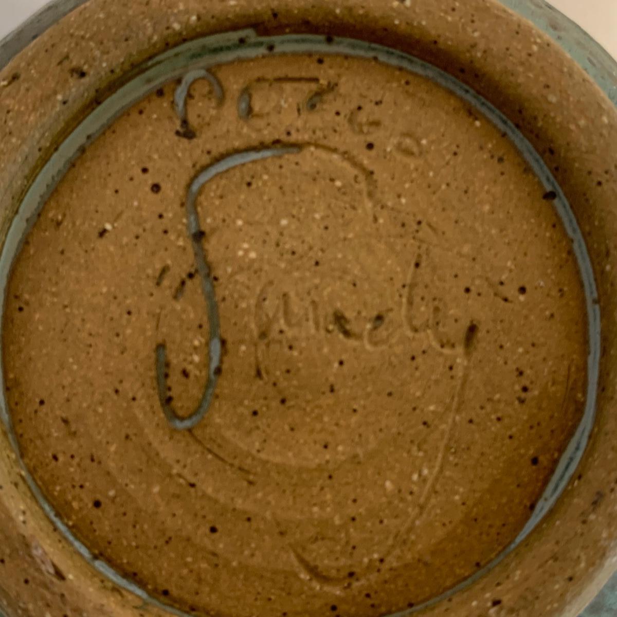 Lovely selection of glazed pottery. All items have been signed or stamped by the artist. Lot includes large bowl, potted load pan, vase, and mug. Some items have blemishes. Small mug does have a minor chip. Please see photos for more details. Large bowl measures, 8.5”D x 4”H. Shipping available.