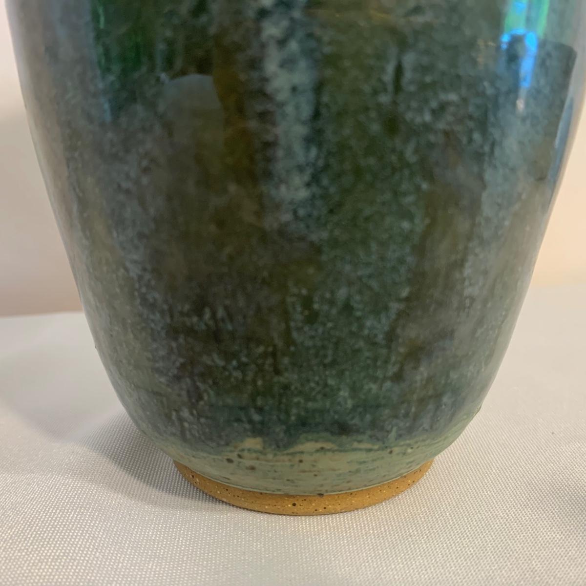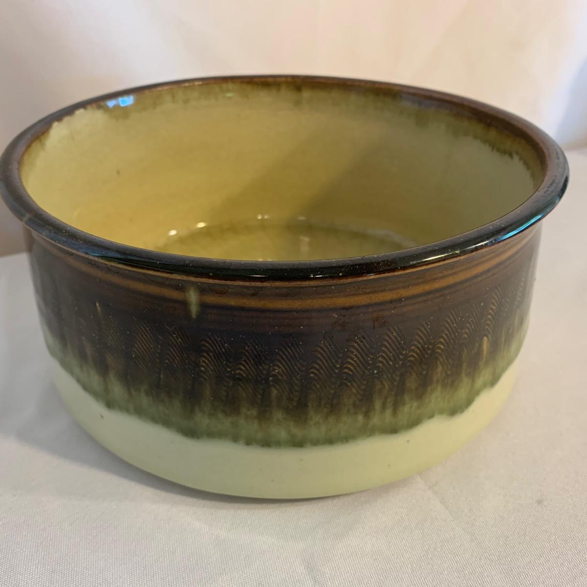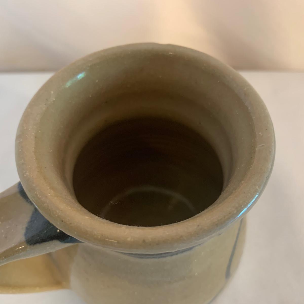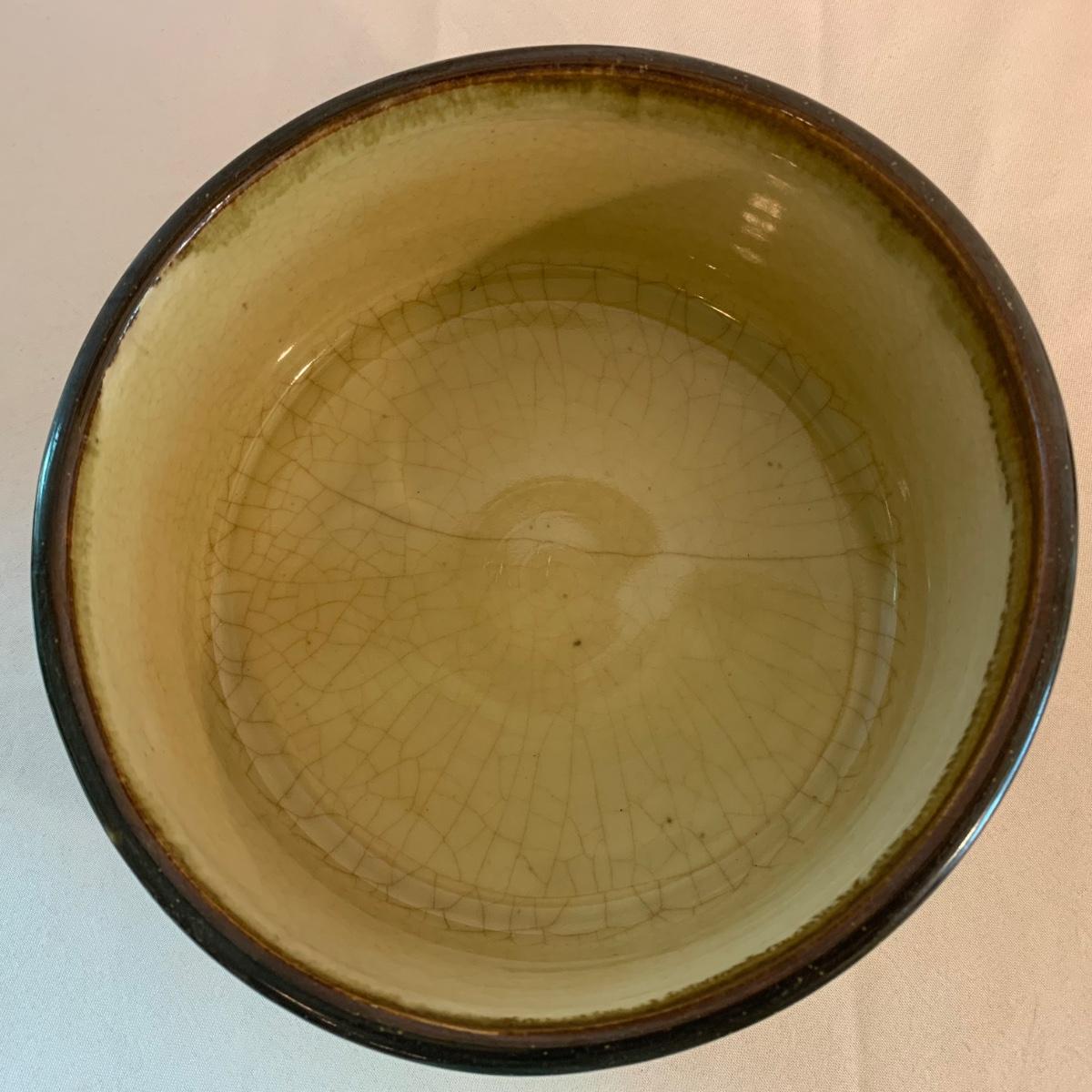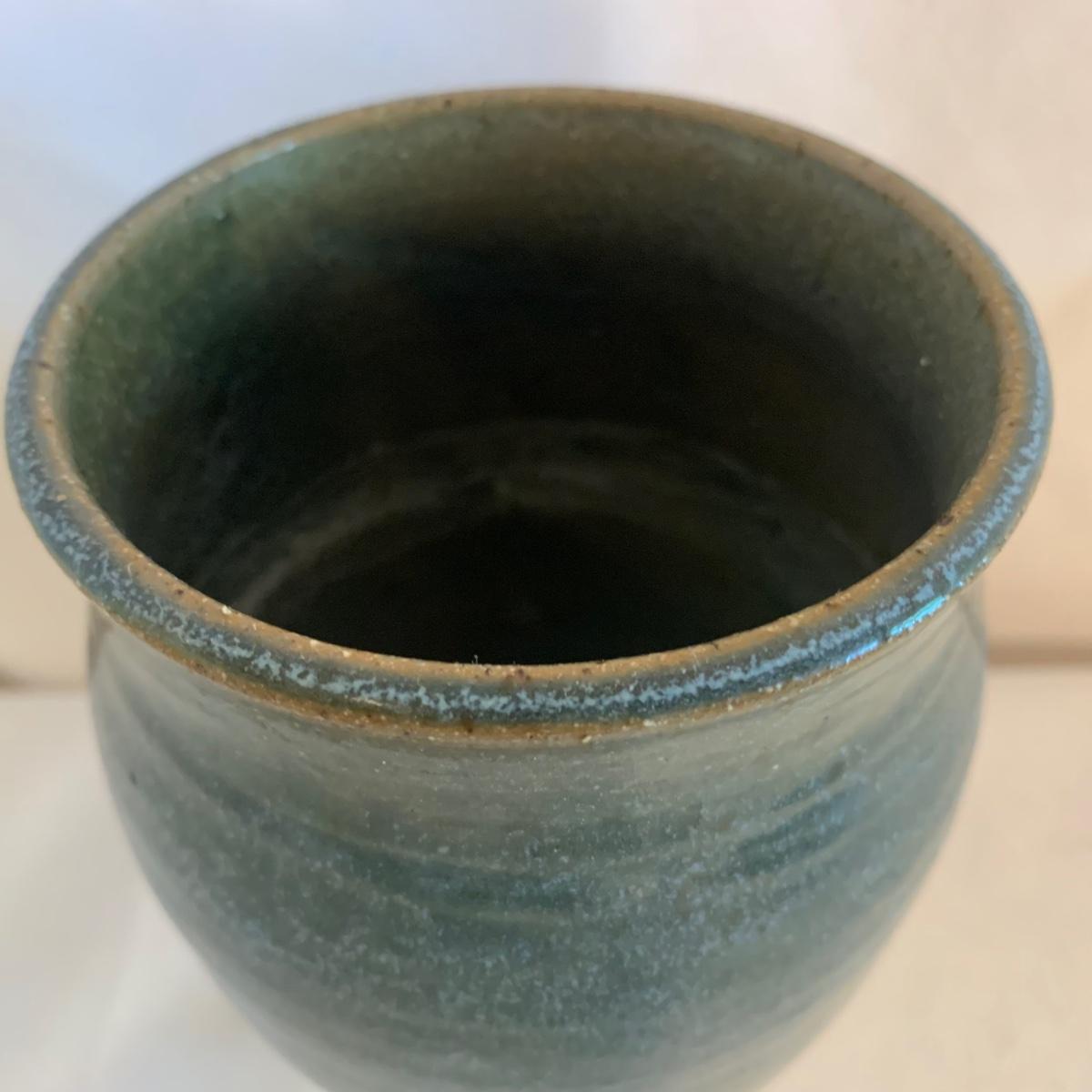 Lovely selection of glazed pottery. All items have been signed or stamped by the artist. Lot includes large bowl, potted load pan, vase, and mug. Some items have blemishes. Small mug does have a minor chip. Please see photos for more details. Large bowl measures, 8.5”D x 4”H. Shipping available.