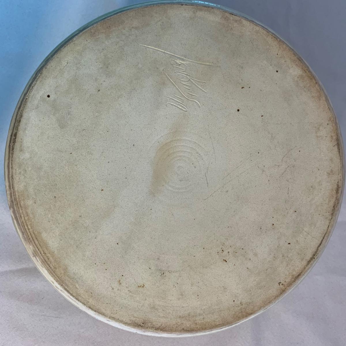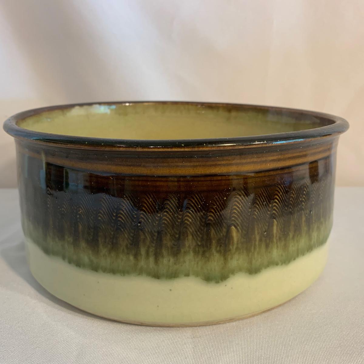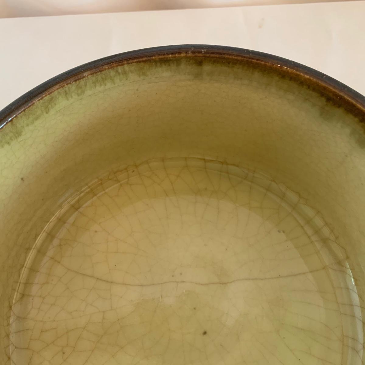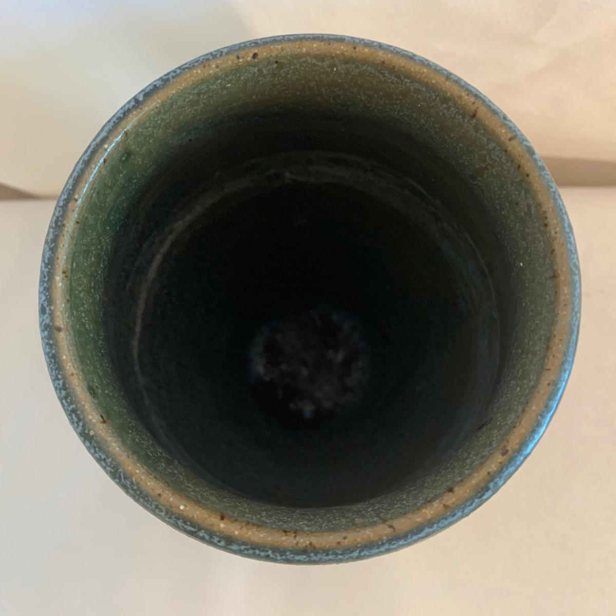 Lovely selection of glazed pottery. All items have been signed or stamped by the artist. Lot includes large bowl, potted load pan, vase, and mug. Some items have blemishes. Small mug does have a minor chip. Please see photos for more details. Large bowl measures, 8.5”D x 4”H. Shipping available.