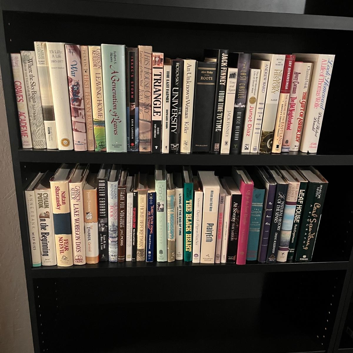 Lot contains a large selection of novels and biographies including Carl Sandberg, Bill Bryson, Thomas Wolfe, Ruth Engleman and many more. See images for titles, the majority of the books are hardcovers.