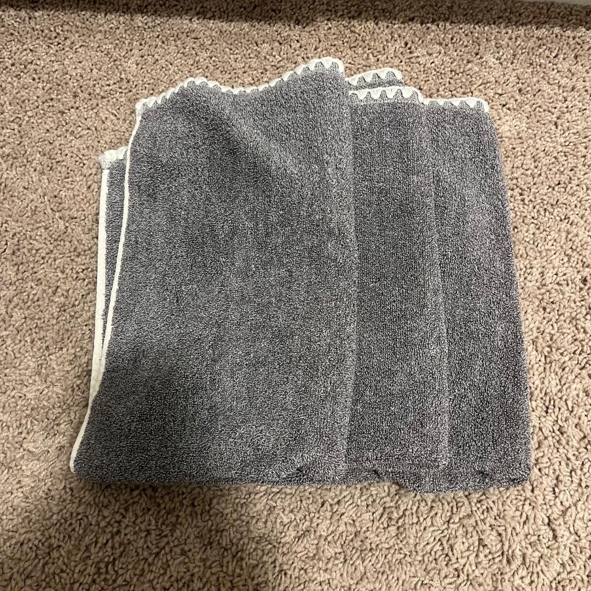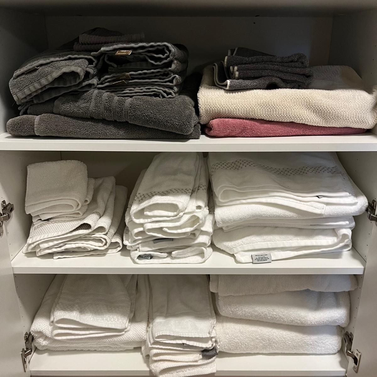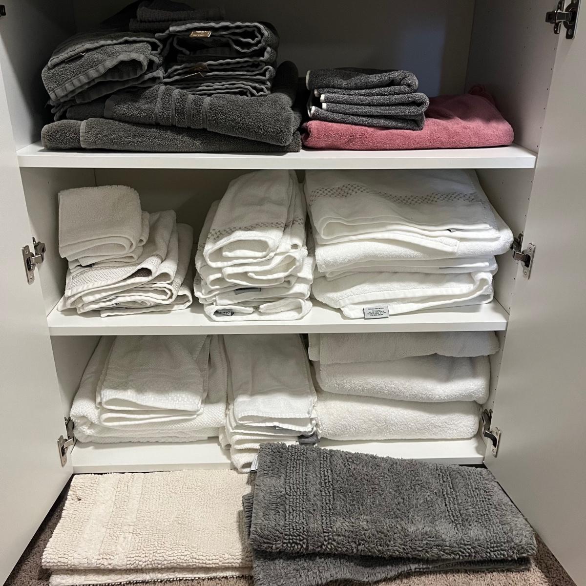 Lot includes a selection of bath towels, hand towels, bath mats and washcloths by Madison Park, Bella Lux, Fieldcrest and More. Largest bath towel measures 28” x 56”.