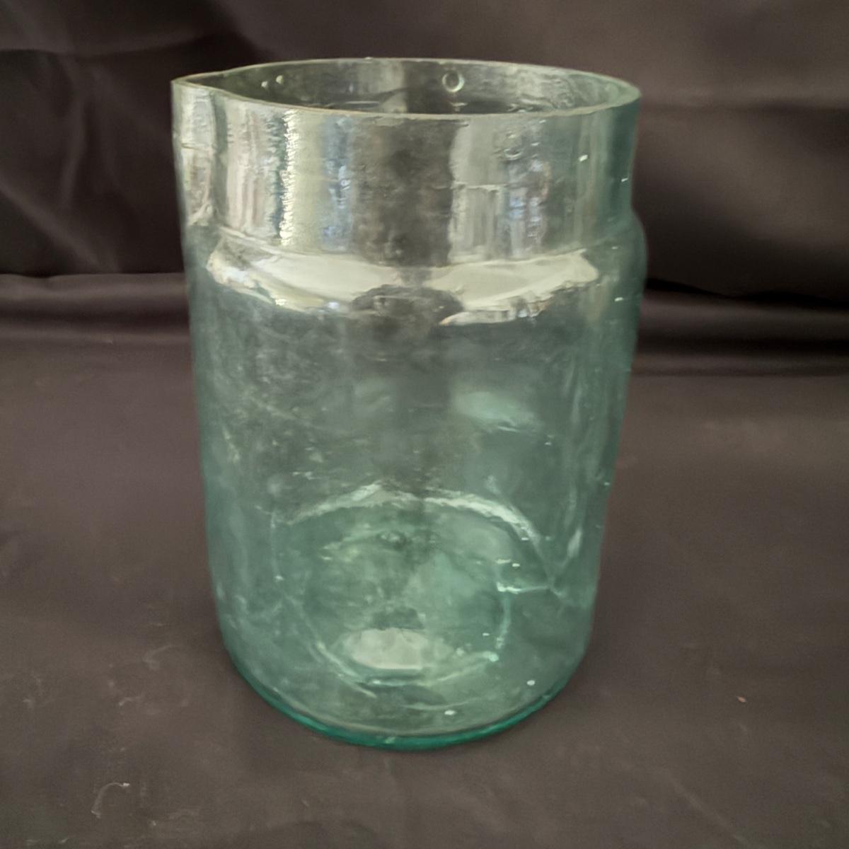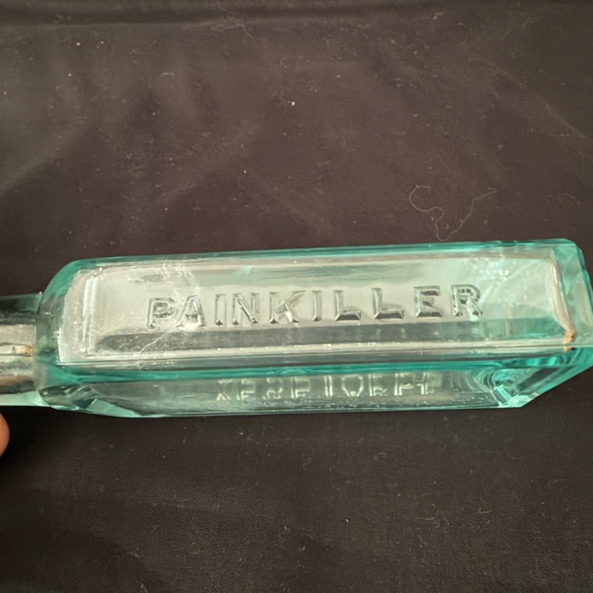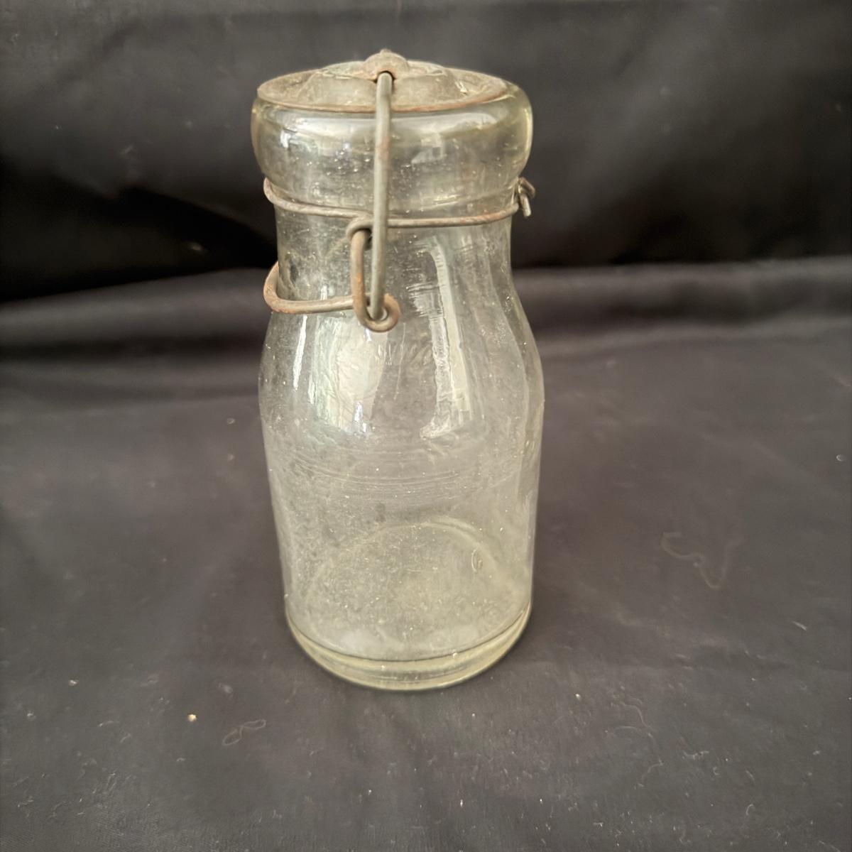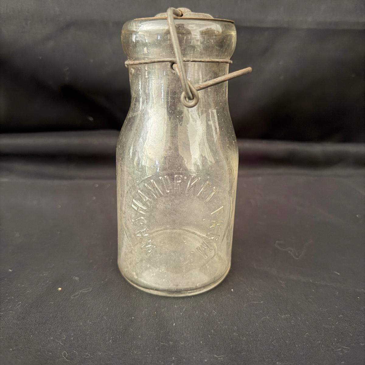 Lot includes a Davis painkiller bottle, Nosmas battery jar, Mashamurket Farm milk bottle and an unmarked jar. Unmarked jar measures 4”D x 6.5”H.