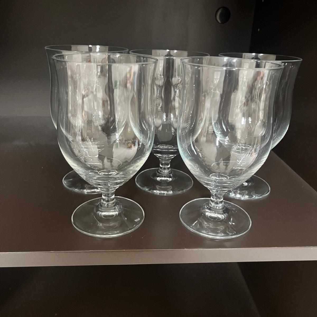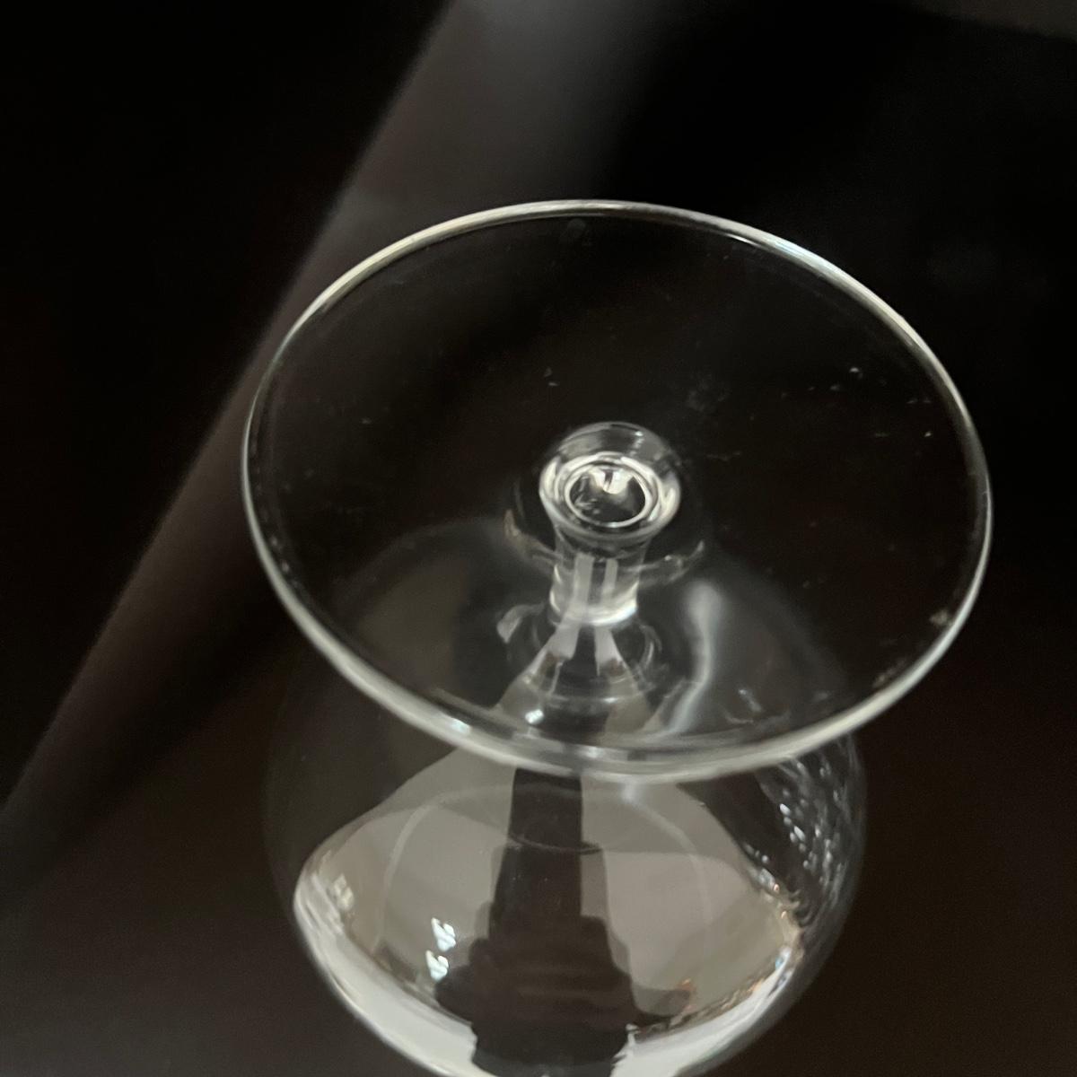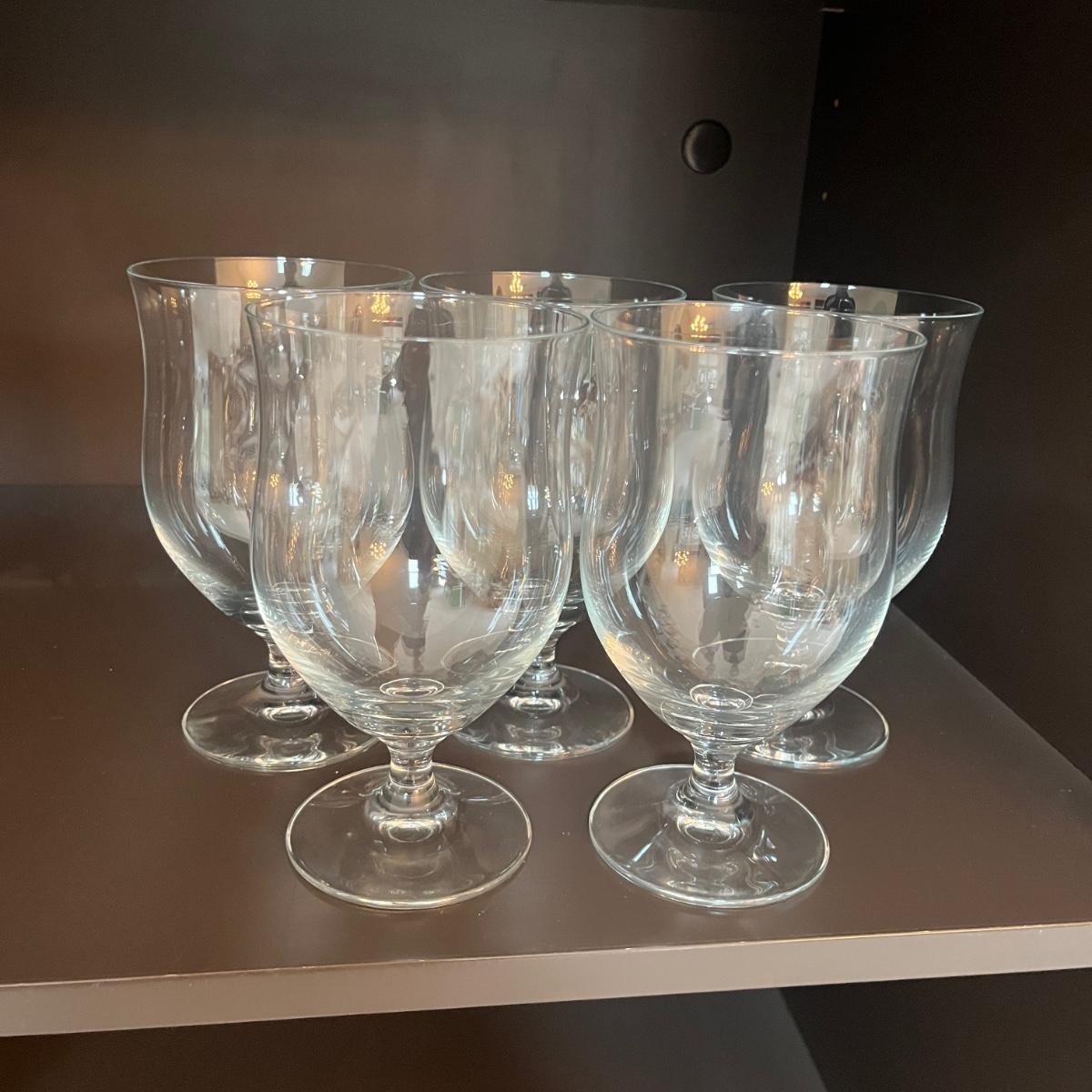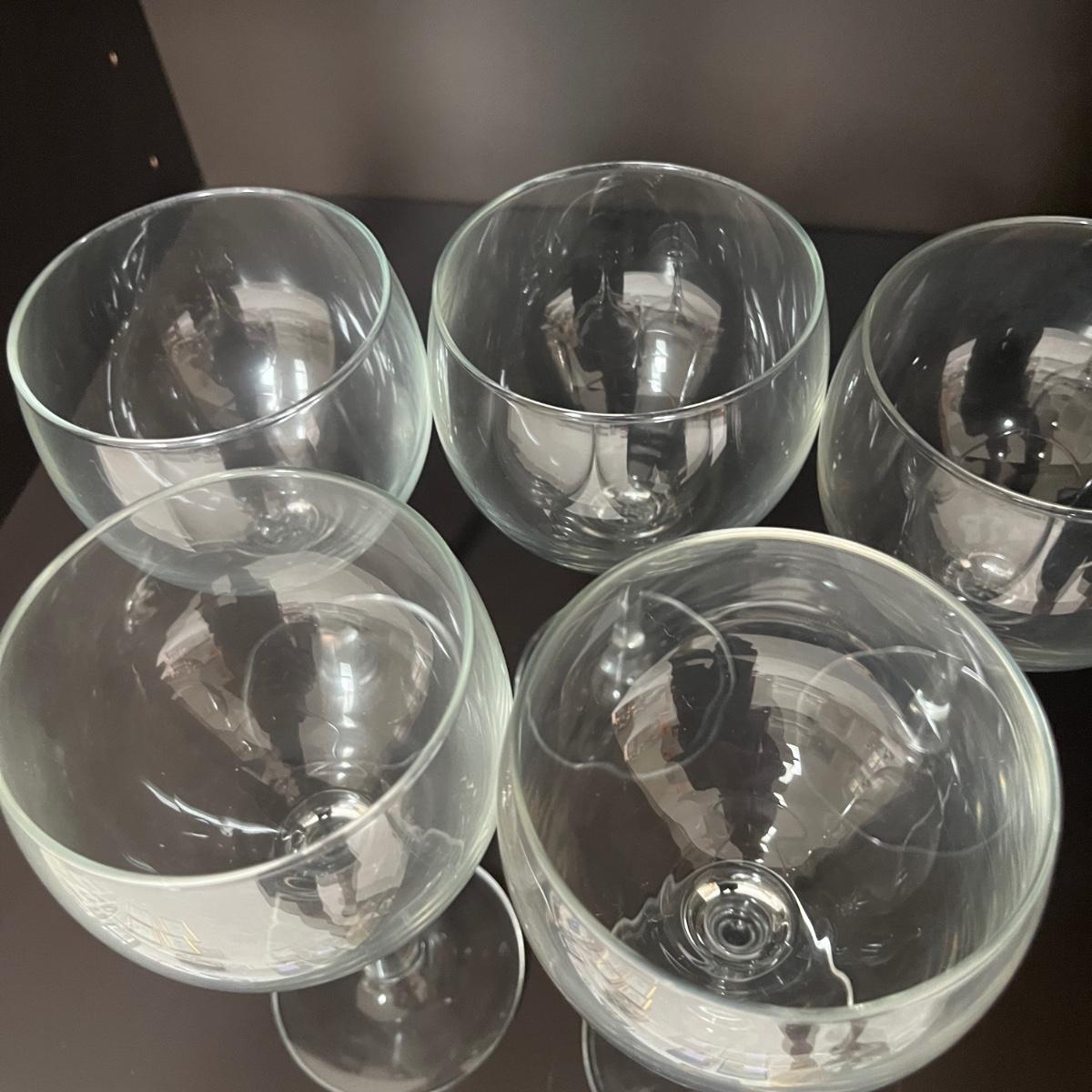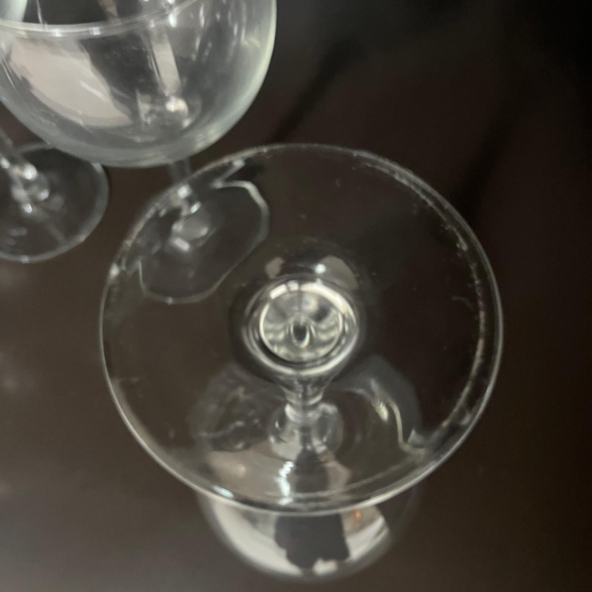 Lot contains a selection of wine glasses that includes set of six, two sets of five glasses and a pair of glasses. Tallest glass measures 3”D 7.25”H.