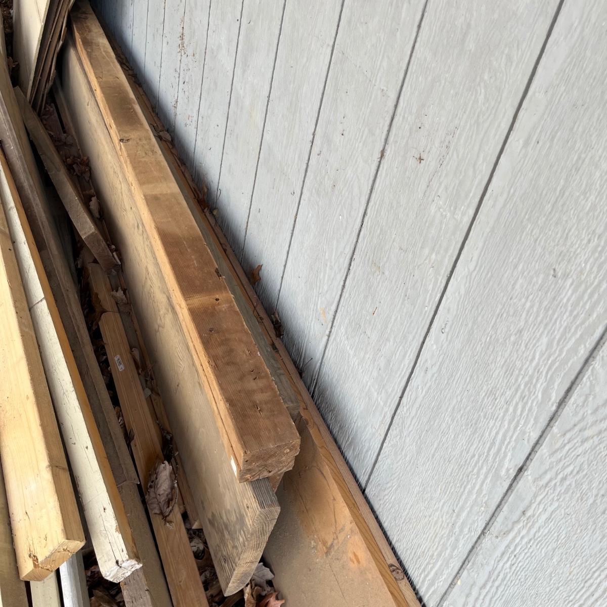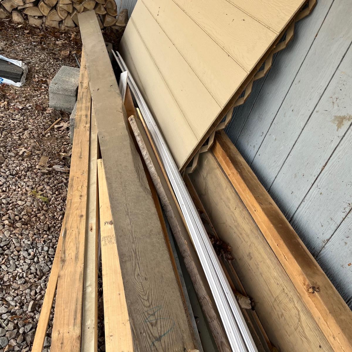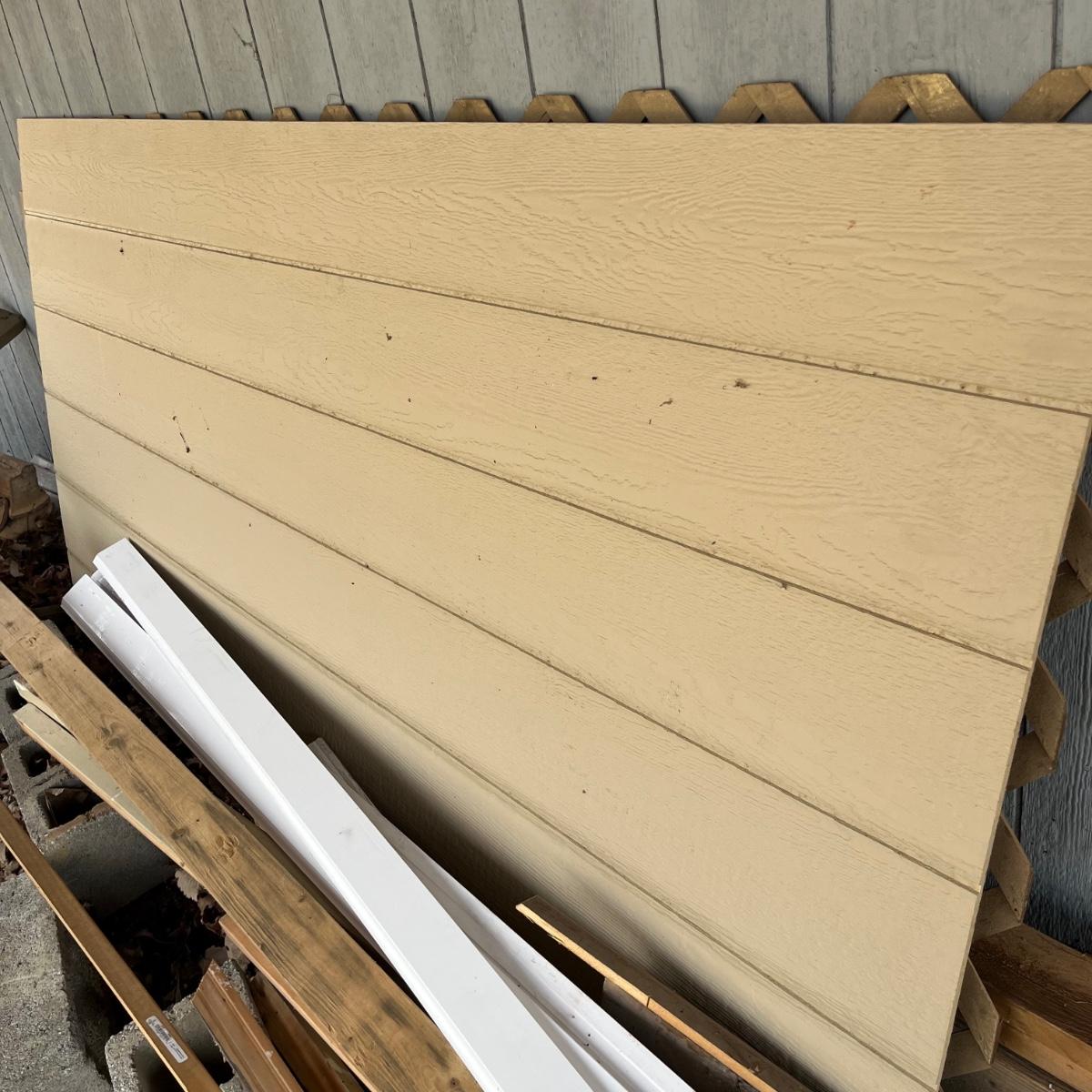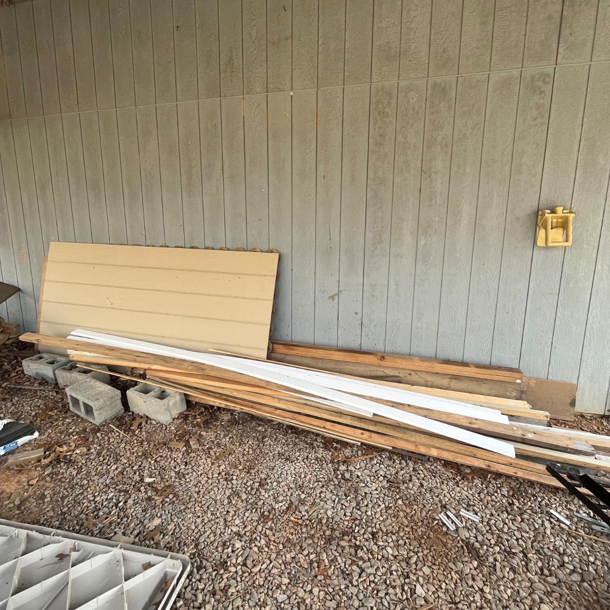 Lot includes 4’ x 8’ sheets of T-111 and lattice. Also includes partial sheets of .25 plywood, 2” x 4”, 2” x 10” and more.