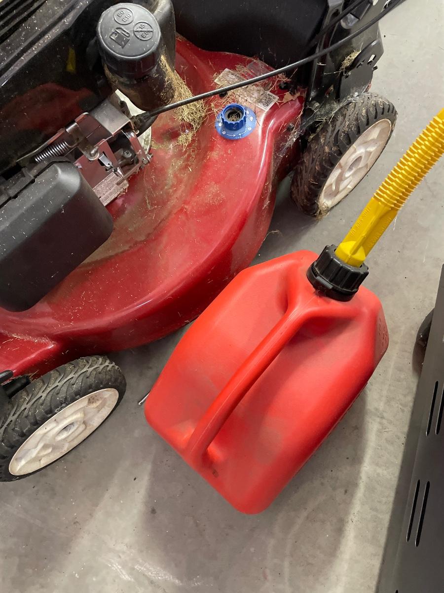 Toro lawnmower with gas can