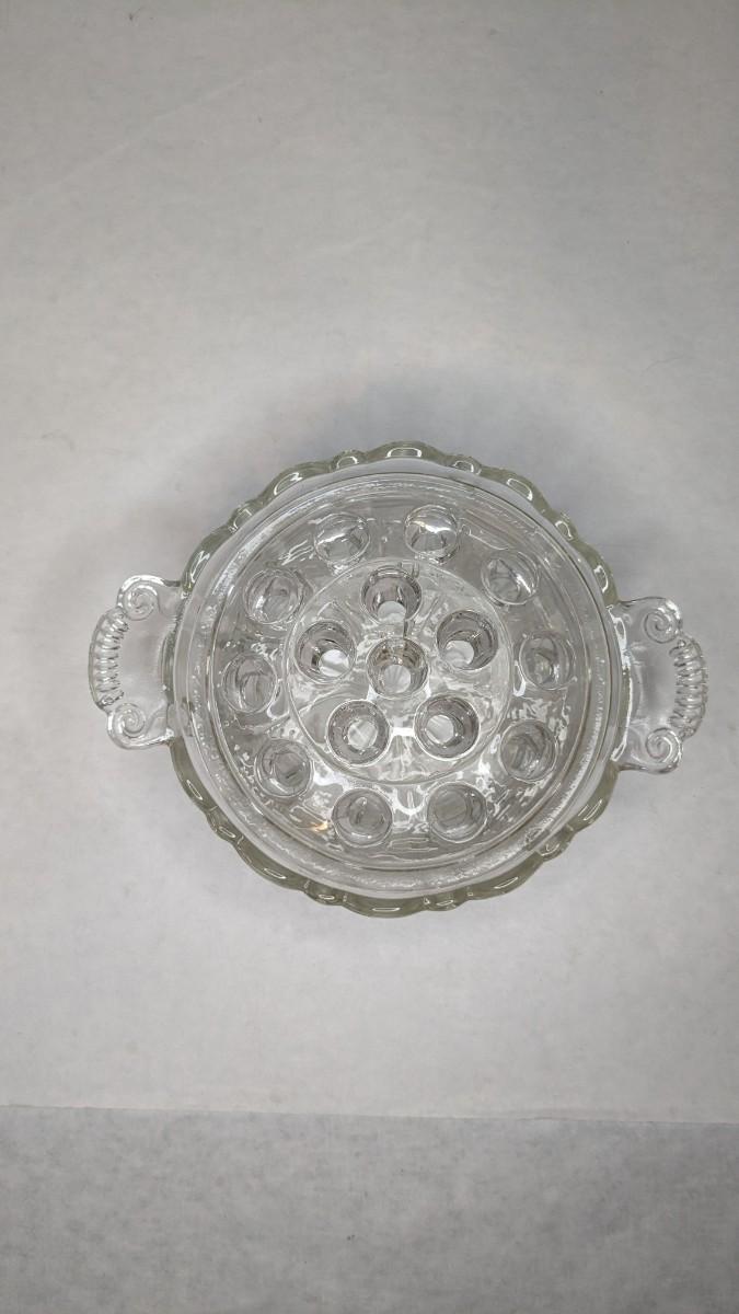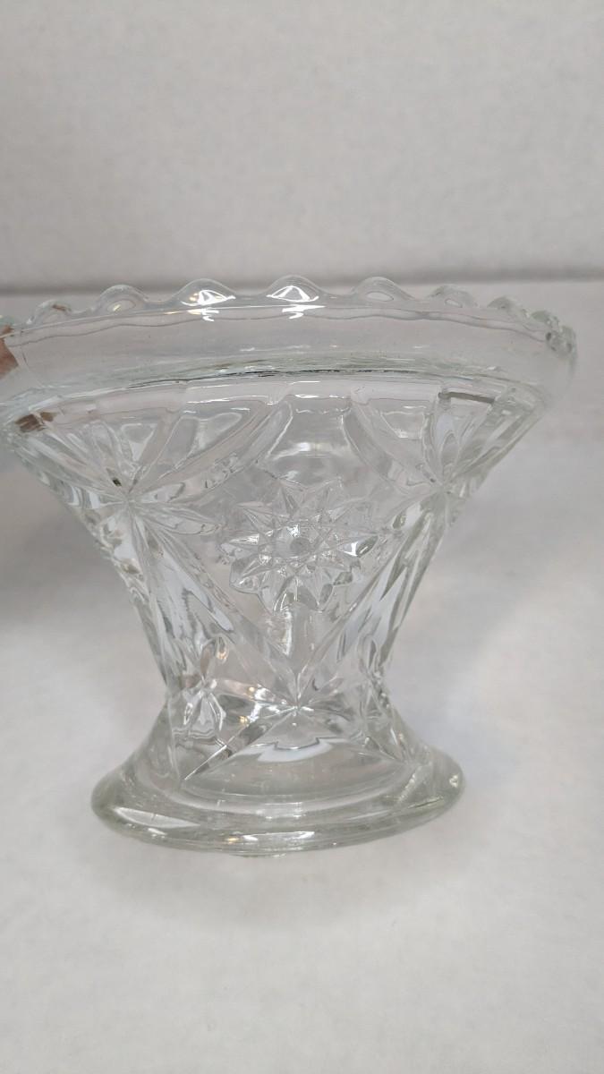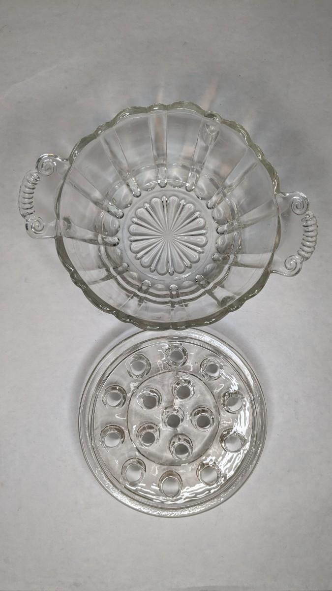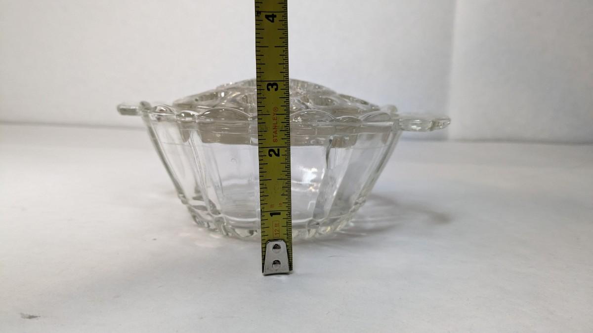 2 incredible cut glass self watering flower holders. Includes 6"x4.5" 16 opening vase style piece with scalloped edge and 7 1/8"x 3" 16 opening basket style display. Both are in excellent condition for age and hard to find in this style!