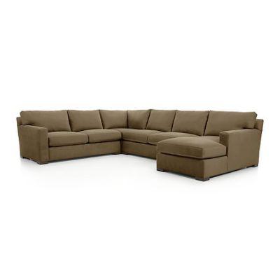 Bring Axis home and watch life revolve around it. Upholstered in a high-performance fabric that's pet, kid, and family friendly, this collection offers exceptional durability for family rooms and casual living rooms“”and the versatility to customize your ideal sectional. This 4-piece sectional is comprised of the right arm apartment sofa, loveseat, left arm chaise and corner. Track arms create a clean look, and low back cushions and deep seats encourage lounging. Not surprisingly, Axis has been a customer favorite for more than a decade.