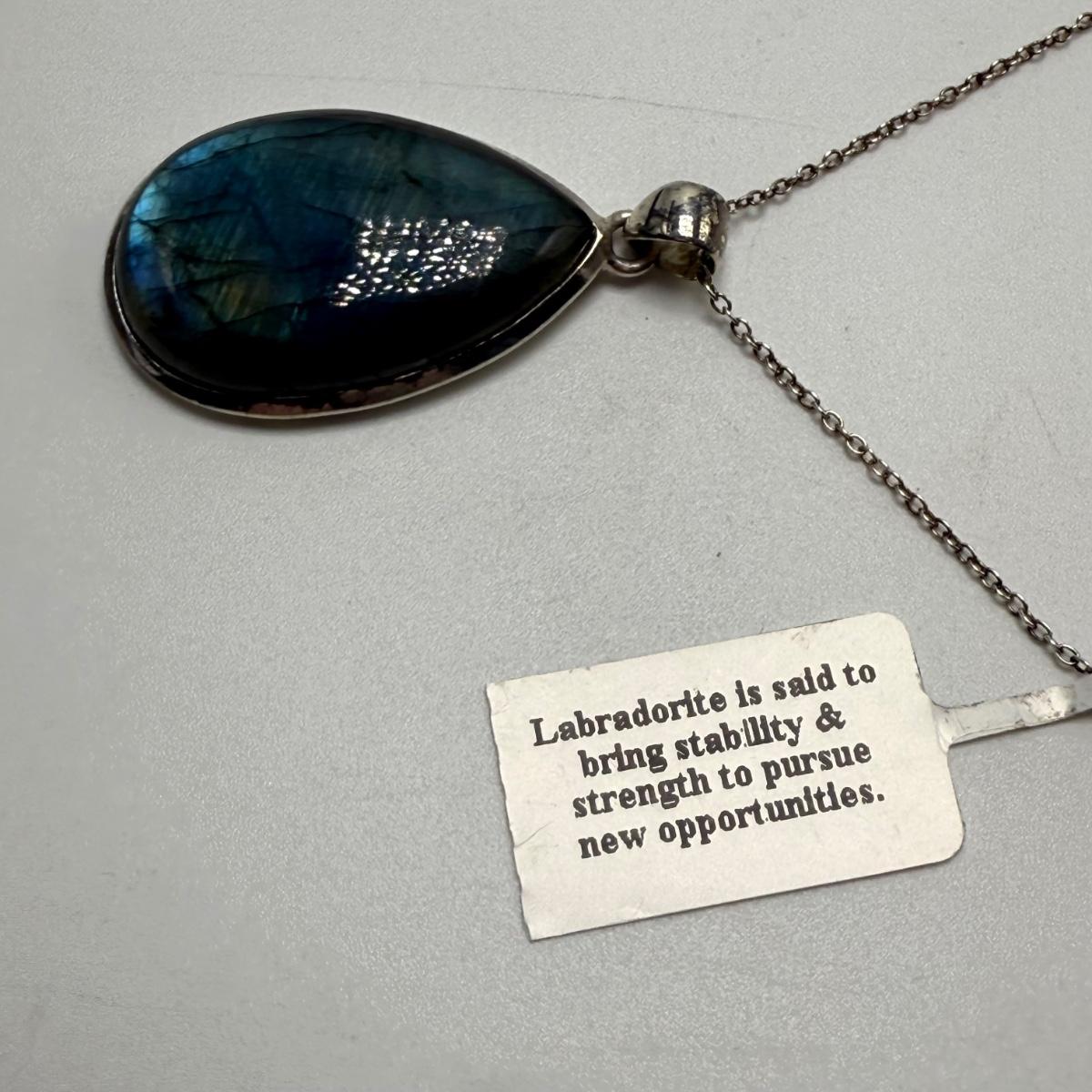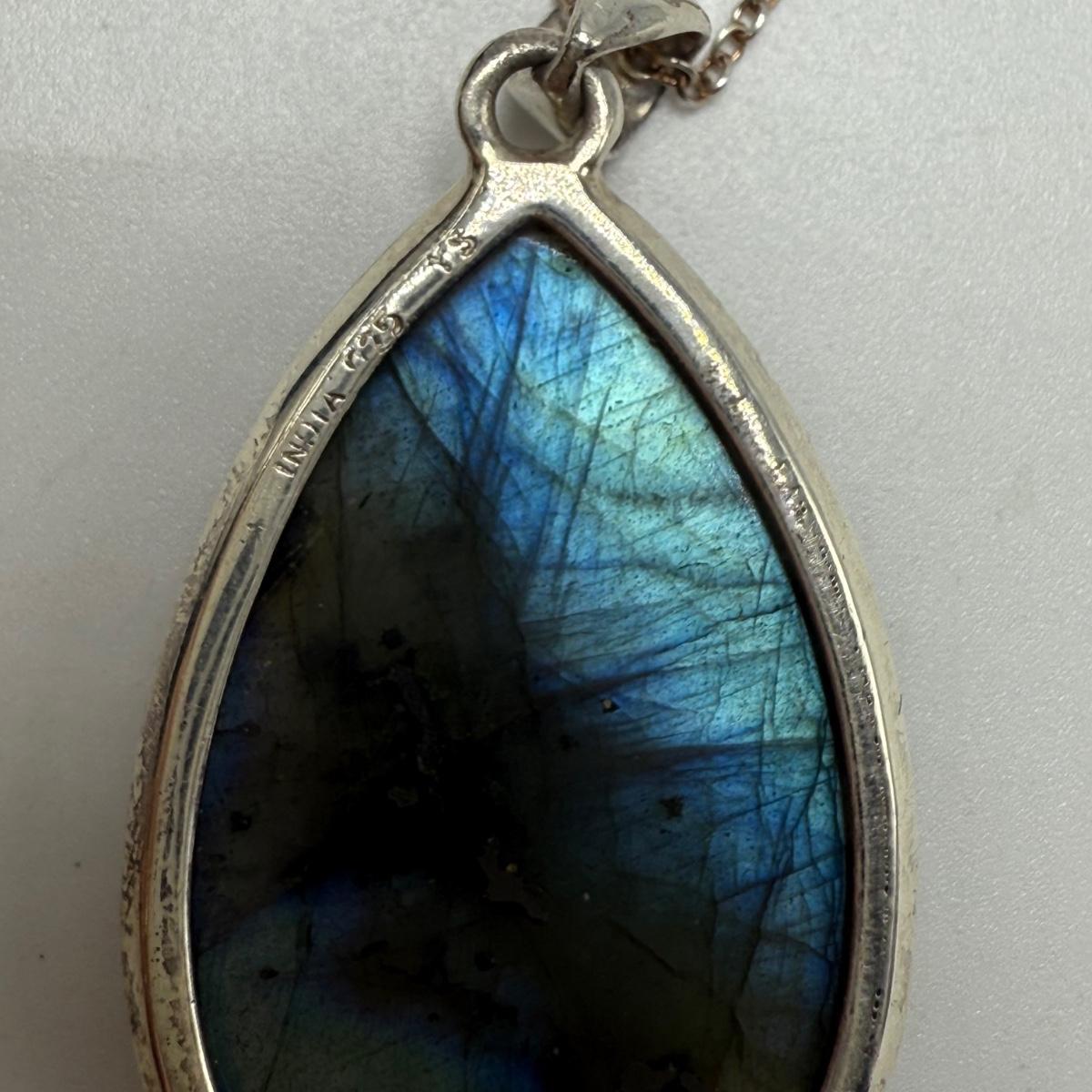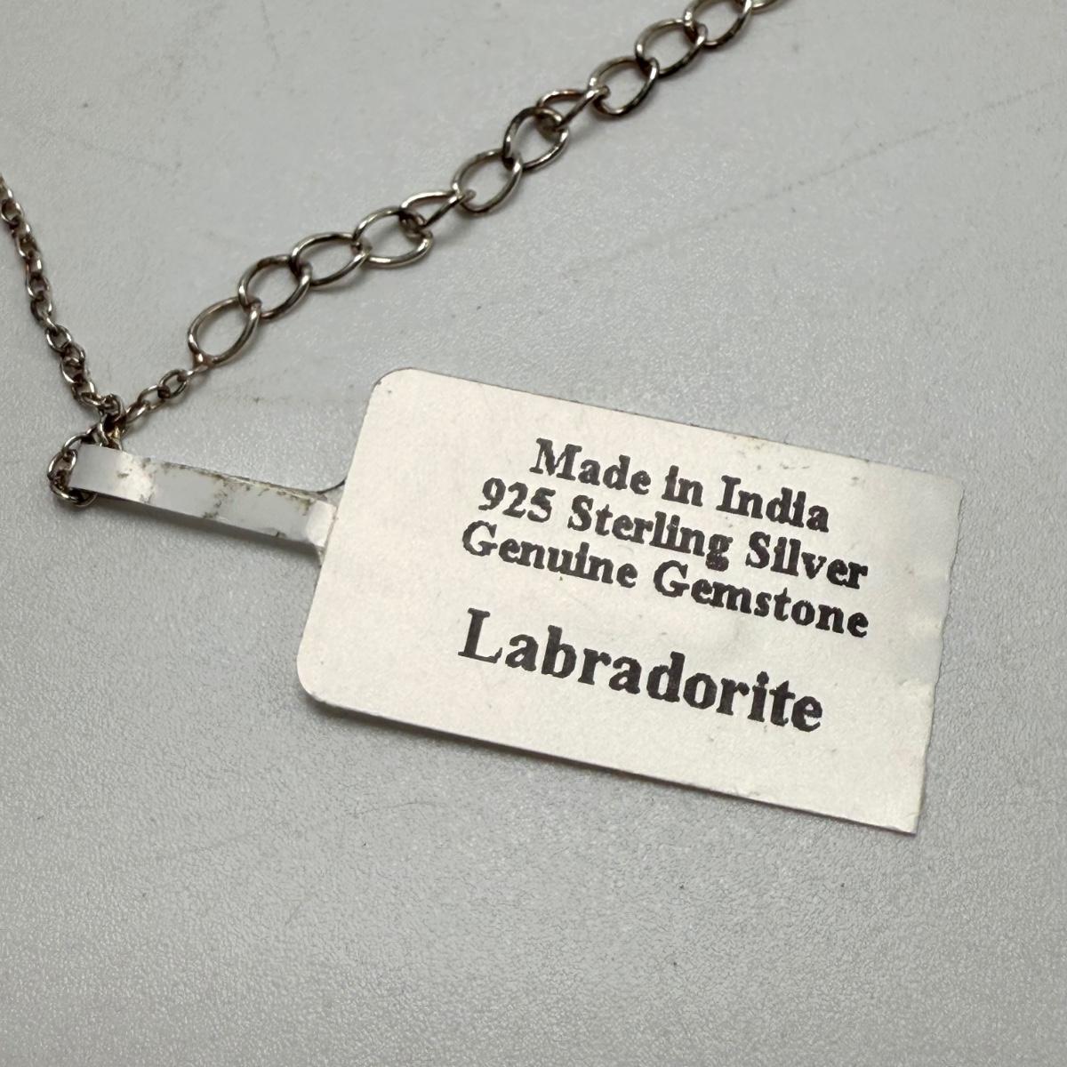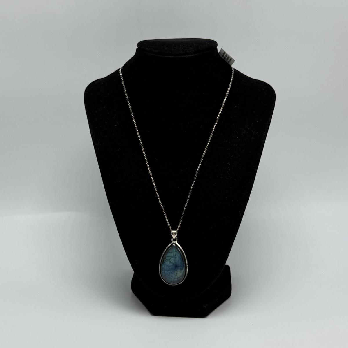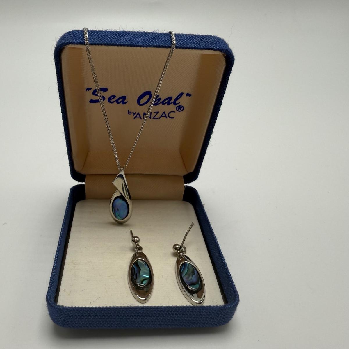 In this beautiful collection there are two jewelry sets featuring a necklace and pair of earrings with semi-precious stones. One has stones that appear to be larimar, blue topaz, and pearl (we cannot verify the stones). The other set comes in a box labeled “Sea Opal by Anzac”. No backs are included with these earrings. Also included is a necklace with a pendant labeled as labradorite. Six additional necklaces plus a pair of post earrings are included as well. Multiple items are marked 925. Please see photos for all markings and details. The longest necklace is the mariner link chain necklace which is 24“ long.