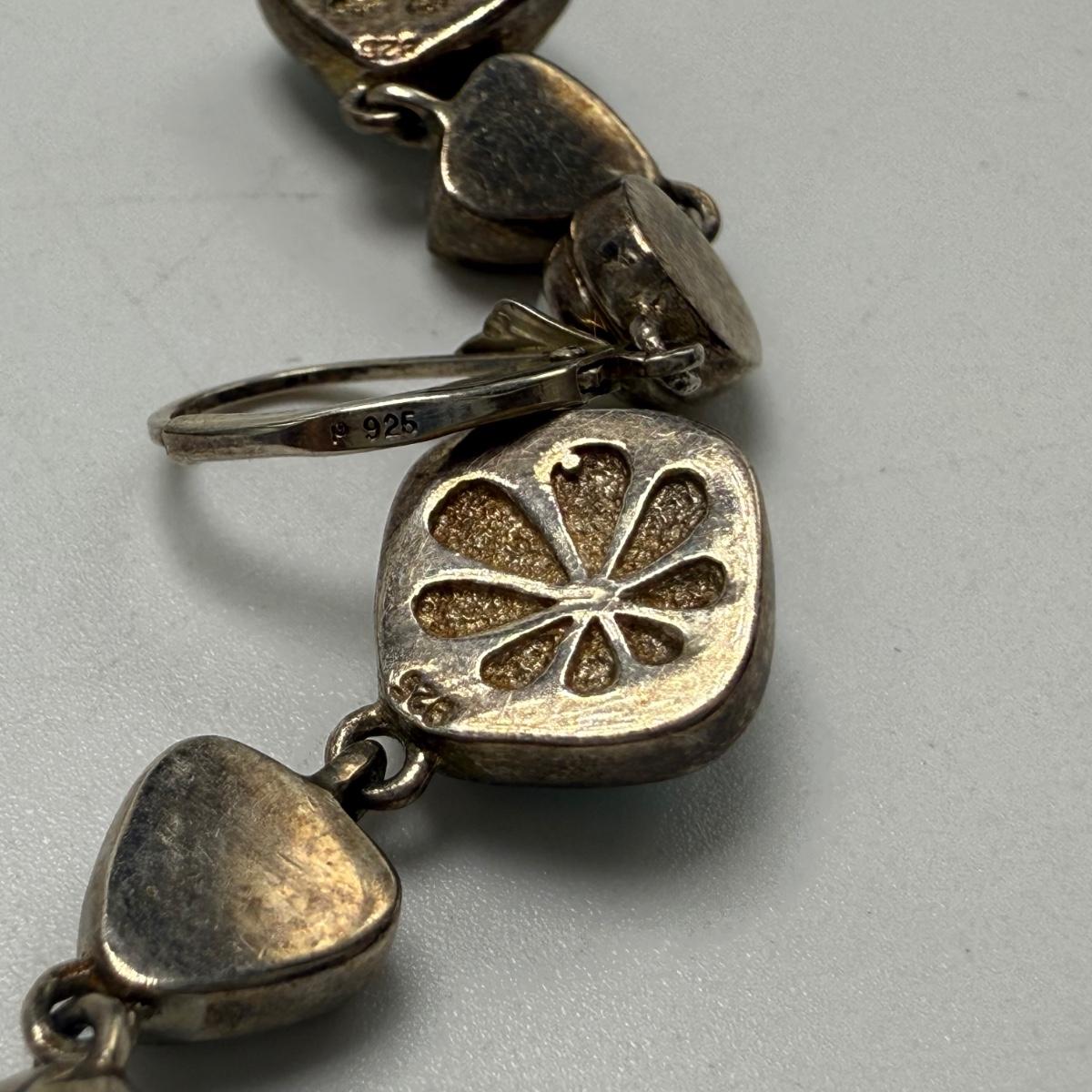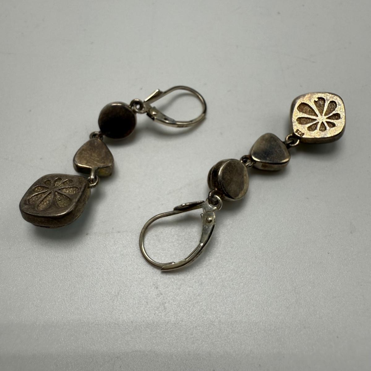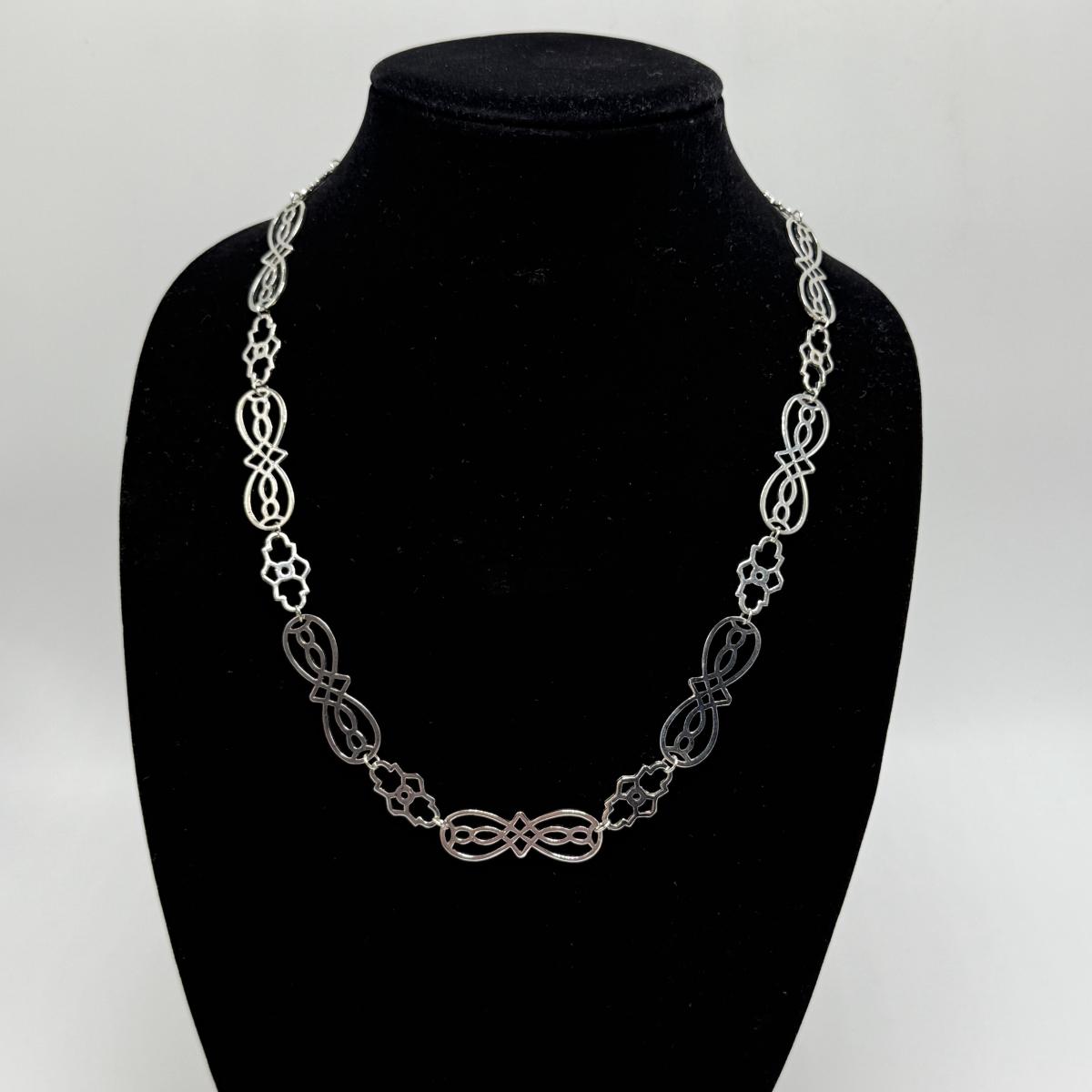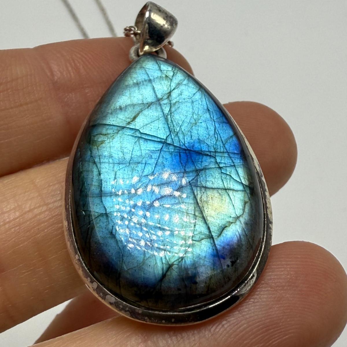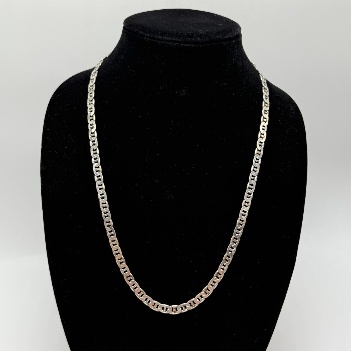 In this beautiful collection there are two jewelry sets featuring a necklace and pair of earrings with semi-precious stones. One has stones that appear to be larimar, blue topaz, and pearl (we cannot verify the stones). The other set comes in a box labeled “Sea Opal by Anzac”. No backs are included with these earrings. Also included is a necklace with a pendant labeled as labradorite. Six additional necklaces plus a pair of post earrings are included as well. Multiple items are marked 925. Please see photos for all markings and details. The longest necklace is the mariner link chain necklace which is 24“ long.