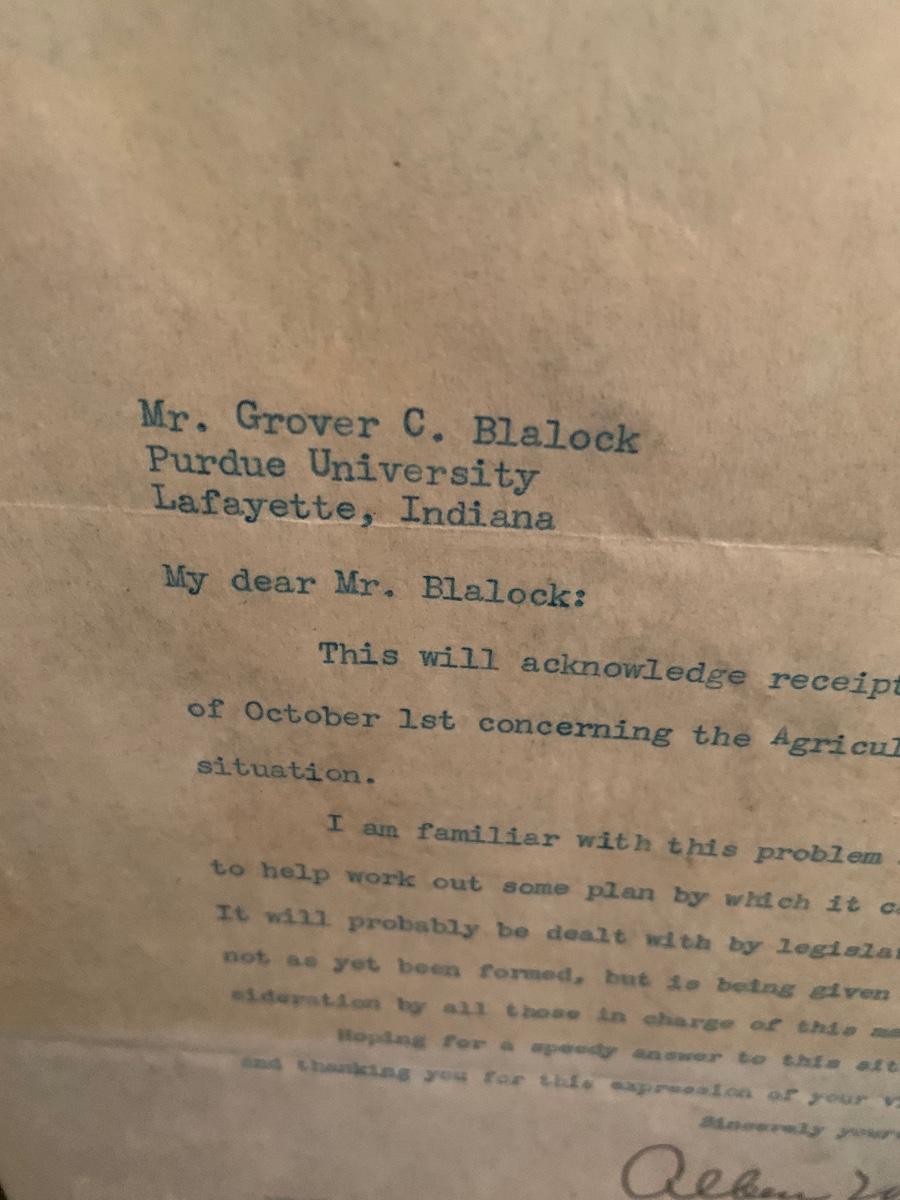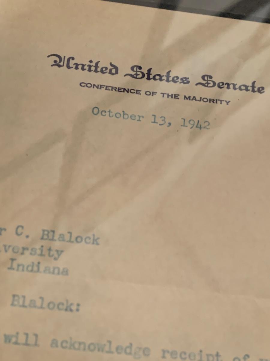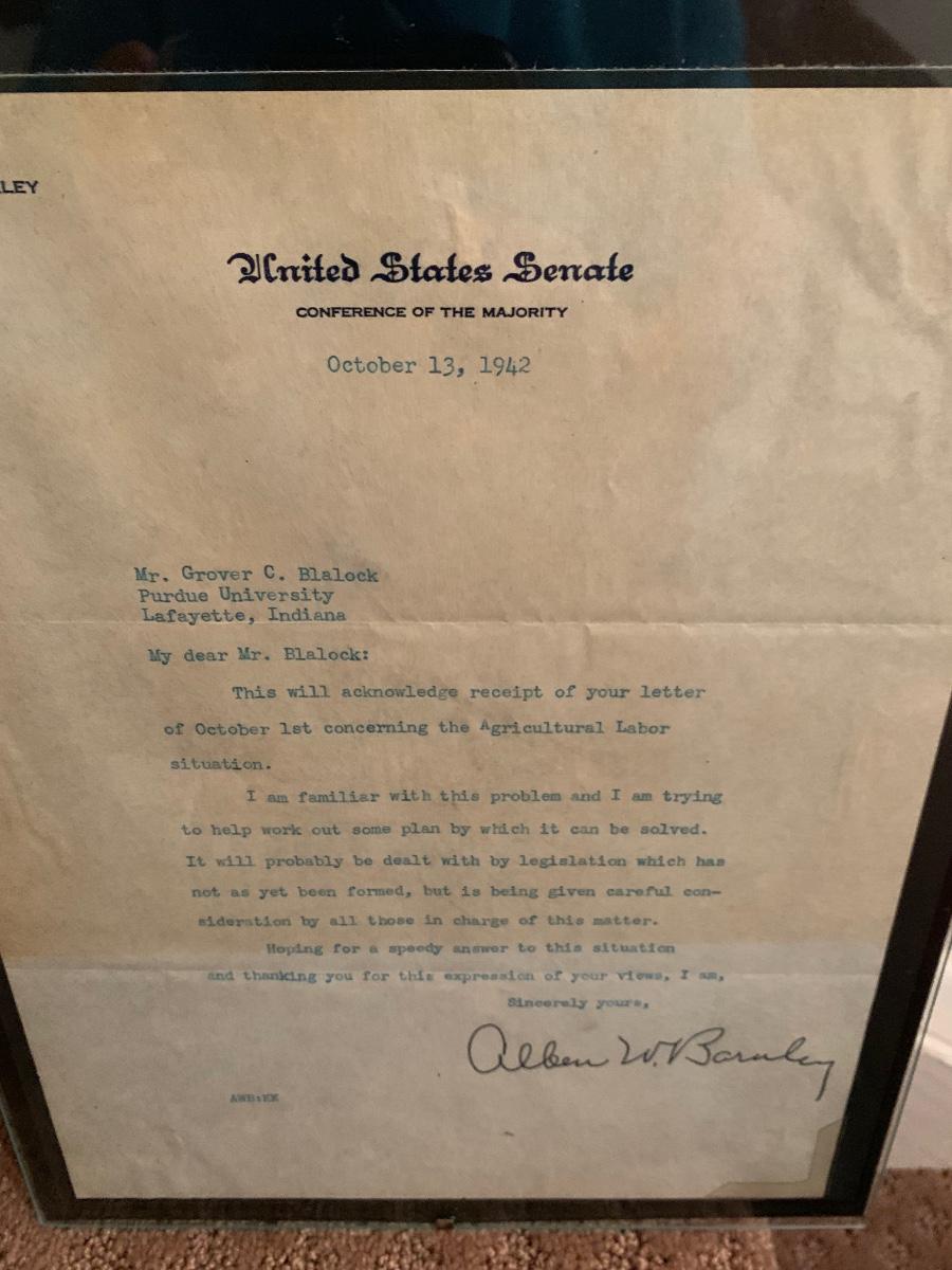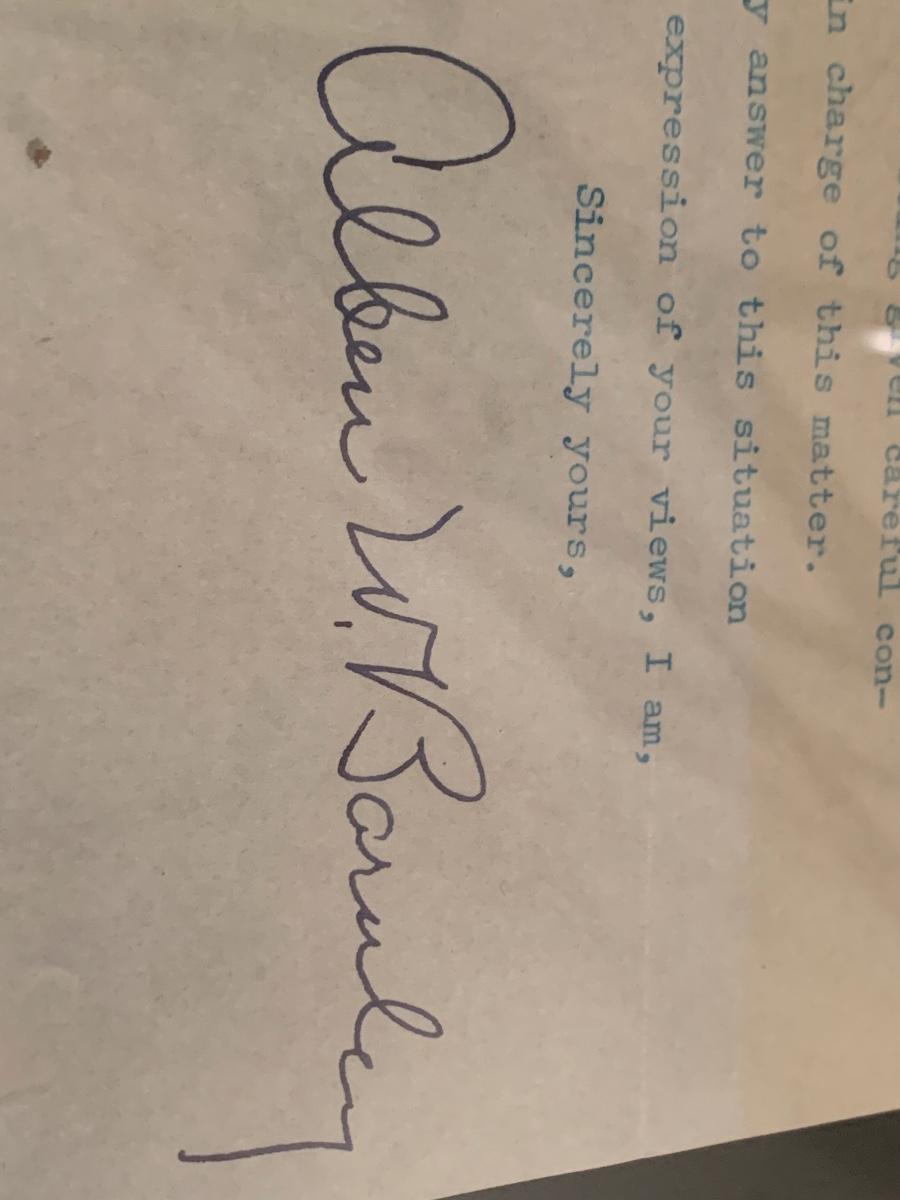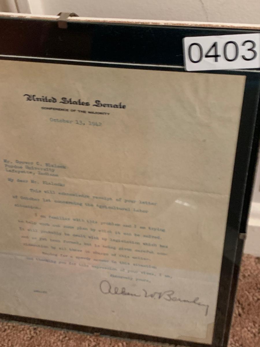 Senator Allen W Barnley Signed Letter