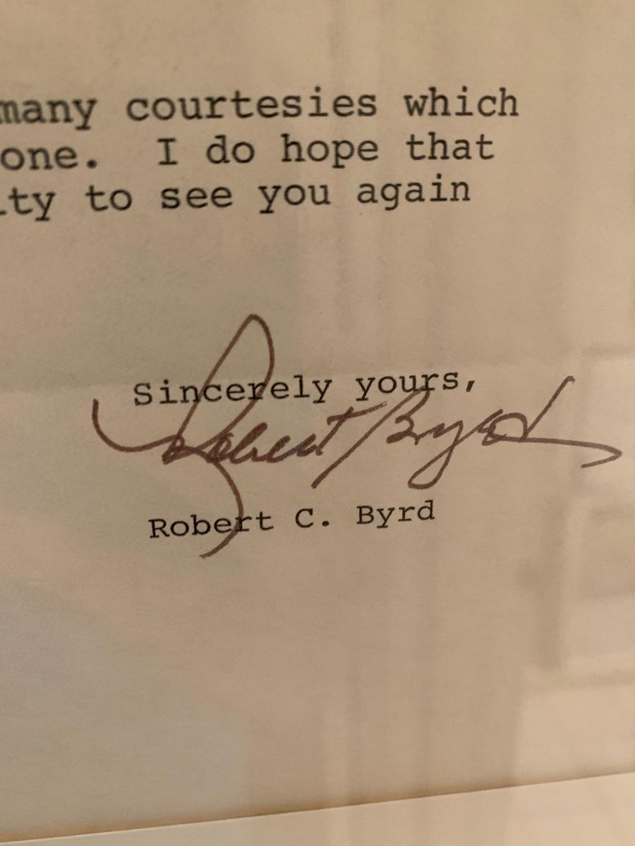 Senator Robert Byrd Signed Personal Letter
