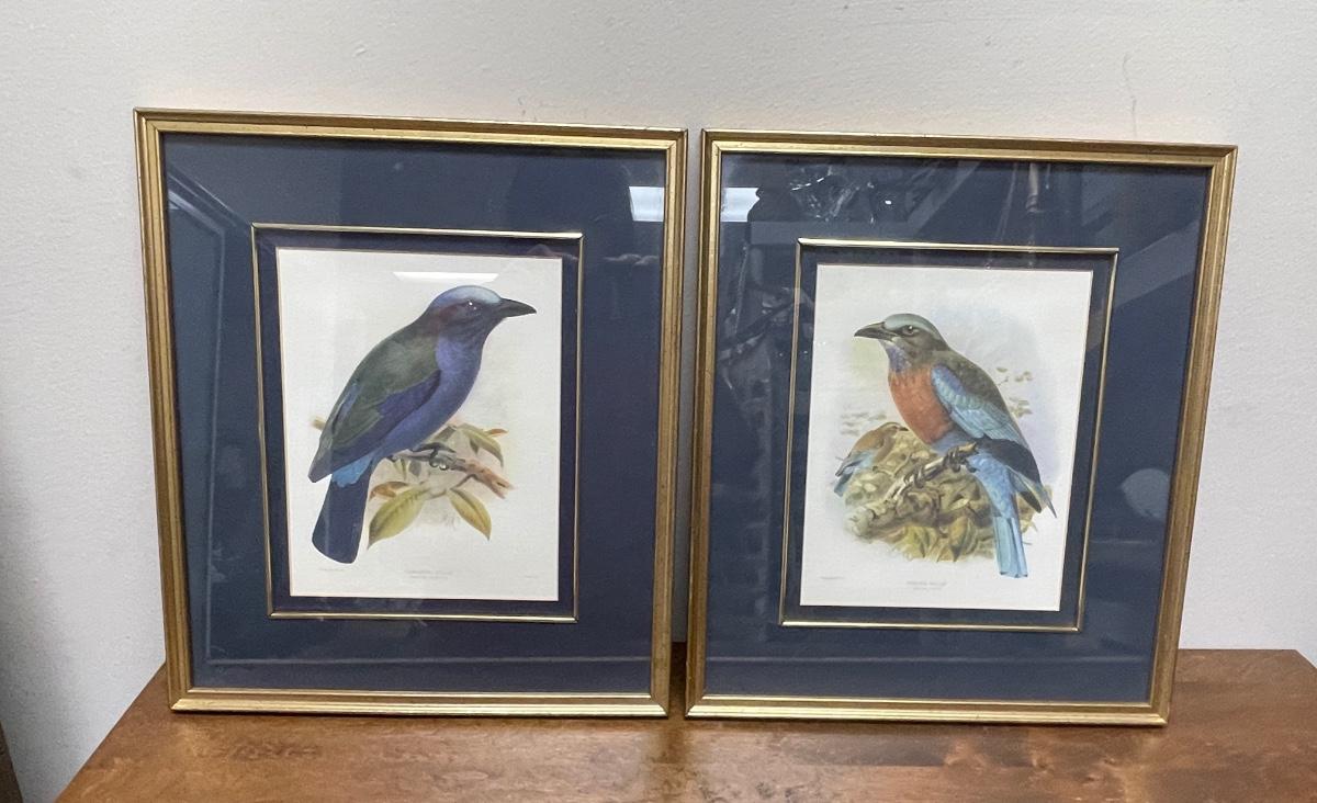 Prints are of a Temminck's Roller and Burmese Roller. Very Nice Condition.