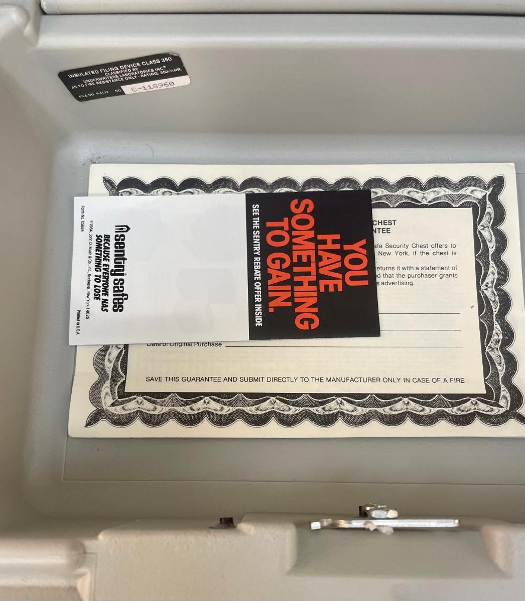 Sentry Model 1100 Fire Safe With key and original paperwork. Very clean, near-new condition.