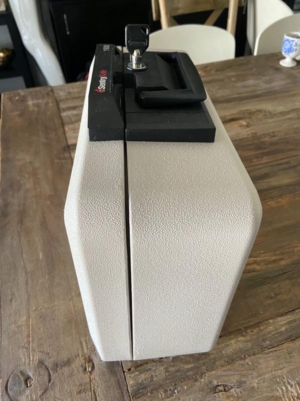 SENTRY SAFE WITH FOB KEY for photos, cash, passports, documents.