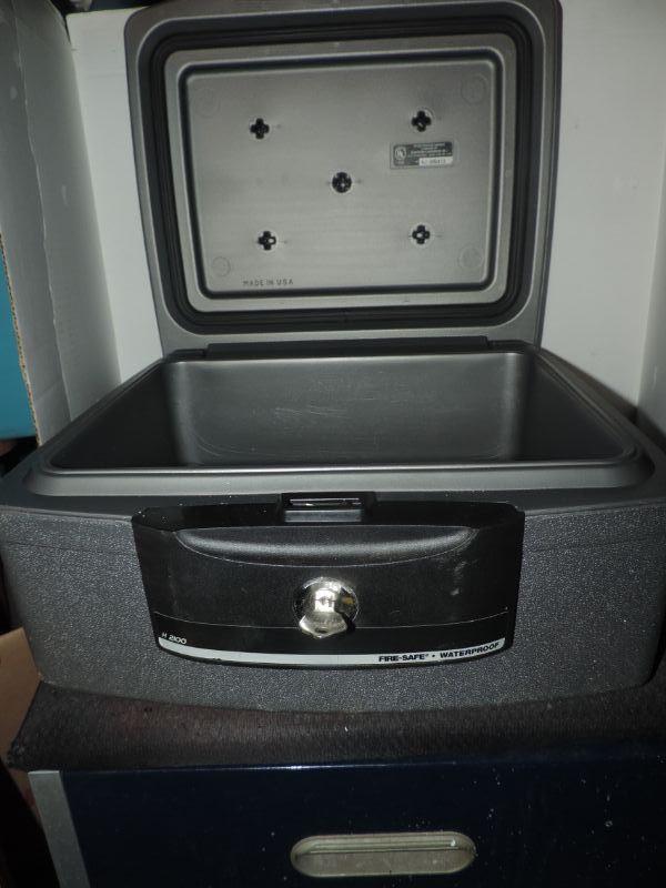 FIRE PROTECTED TO KEEP YOUR VALUABLES & PAPERS SAFE. COMES WITH KEY IT IS JUST LIKE NEW