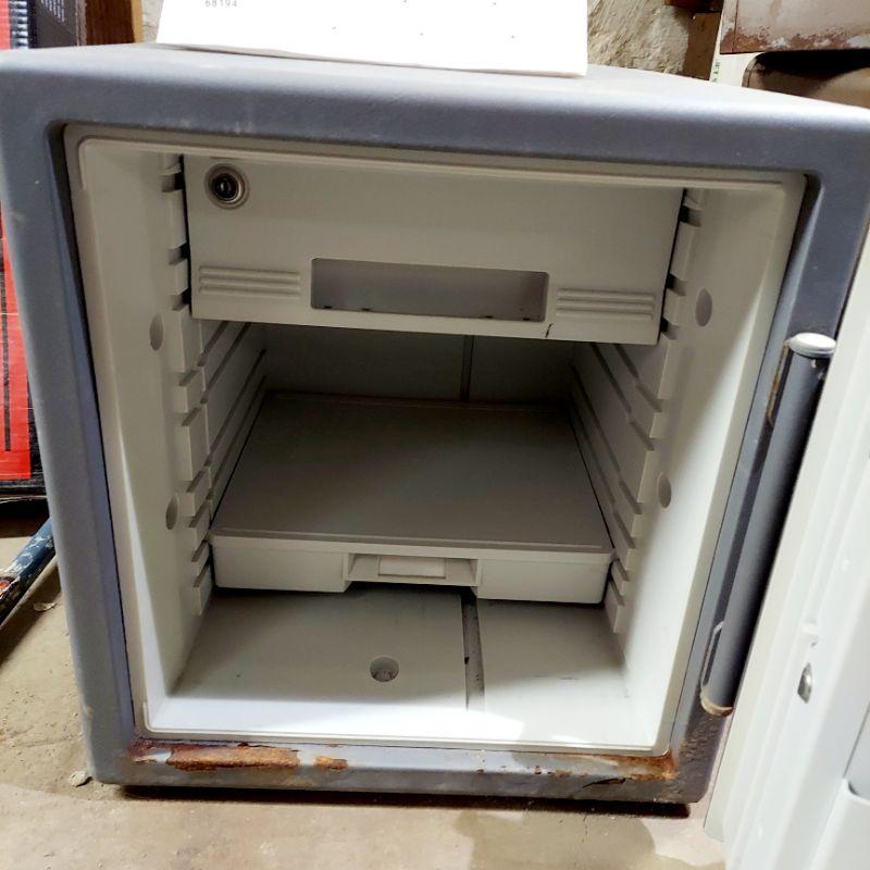 In good decent condition with some rust issues but it doesn't hurt the integrity of the safe. Works as it should and code will be included. Item is heavy and will need to be brought up from the basement