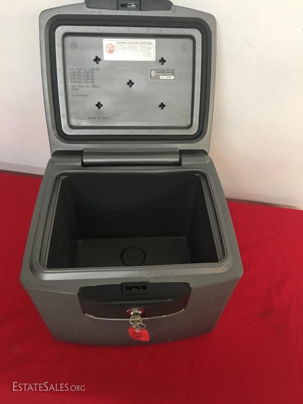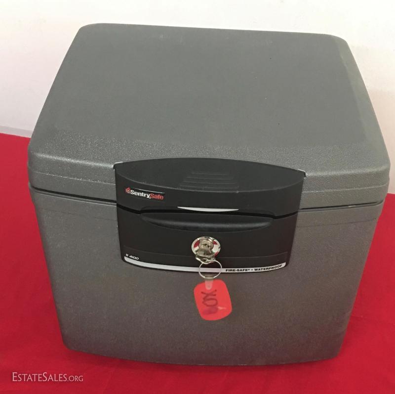 Sentry fire safe with key lock, in good working condition. Measures 14" all around.
