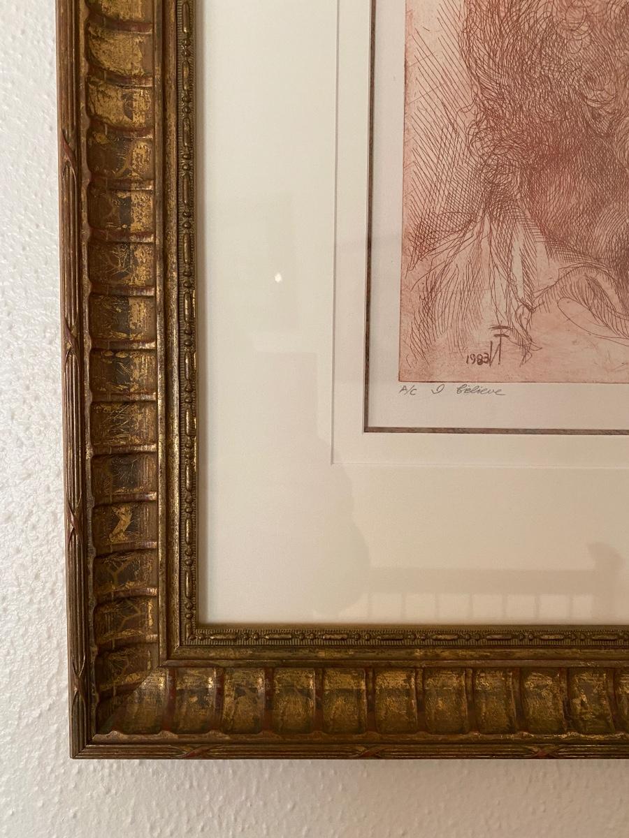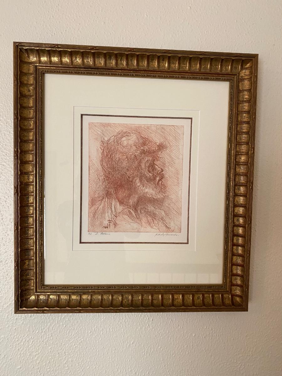 Sepia print of portrait of a man. Signed by artist. Double matted with detailed frame (print measures 9” x 10”)