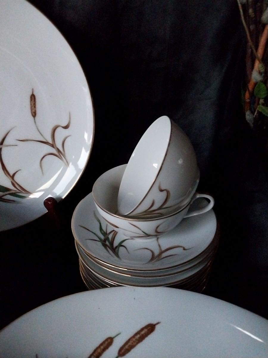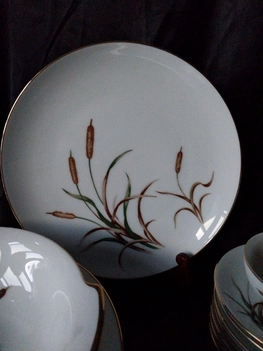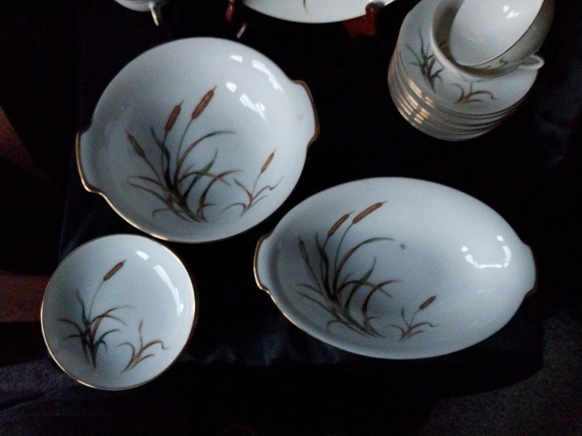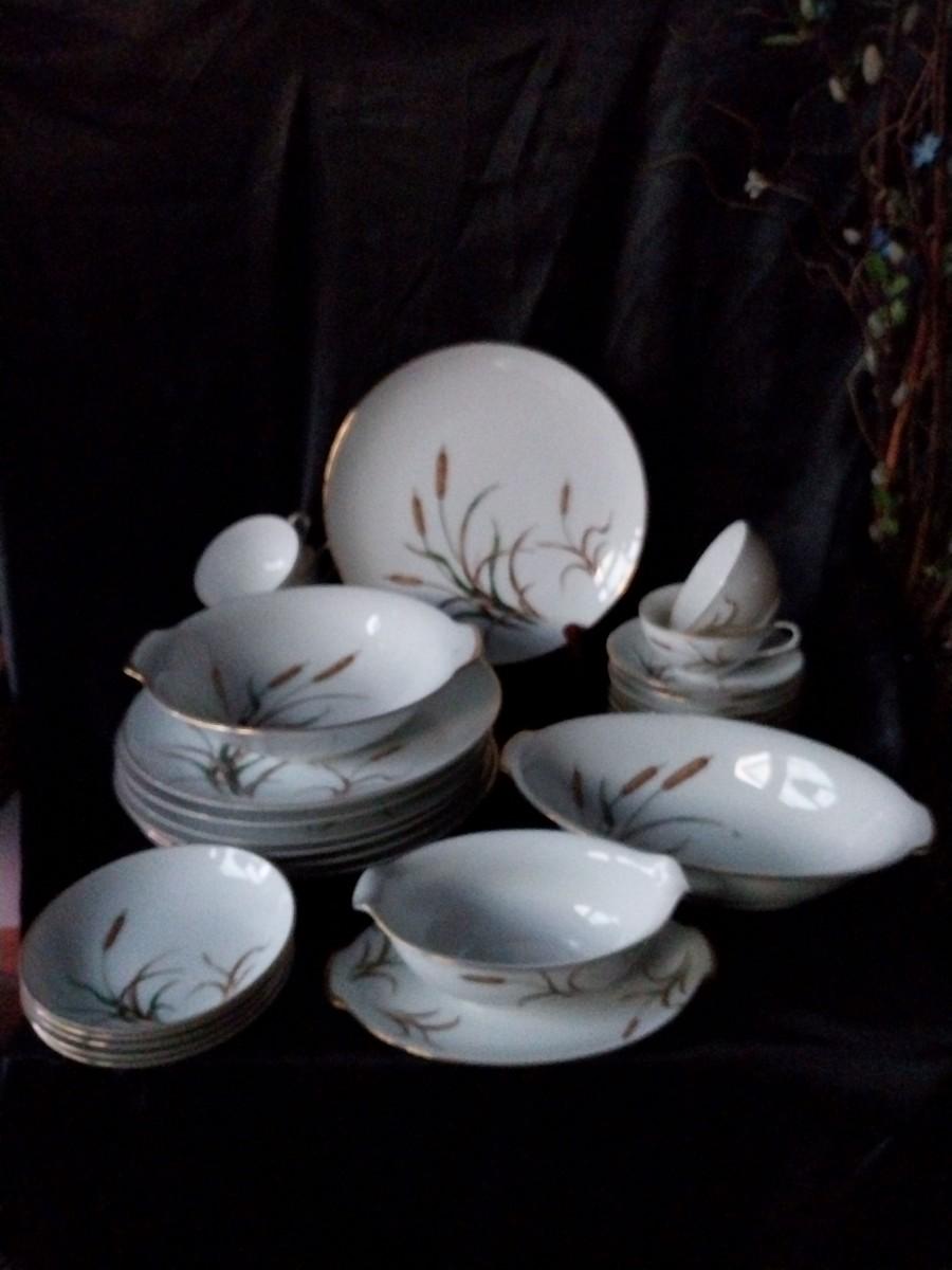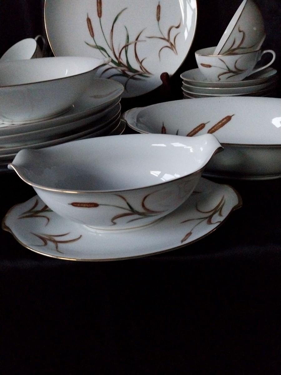 TWO SERVING DISHES-GRAVY BOAT-7 DINNER PLATES AND CUP & SAUCER-6 DESSERT DISHES