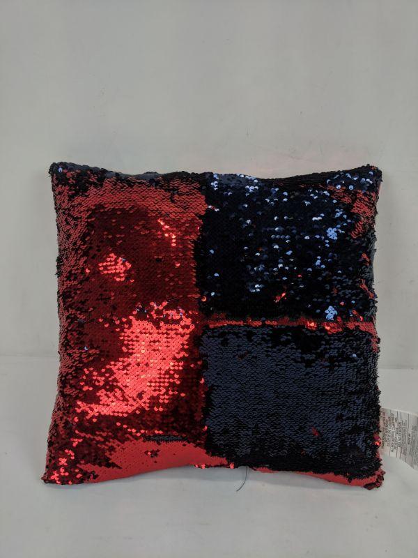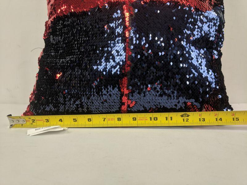 Sequin Pillow, Red/Navy, 15" x 15" - New