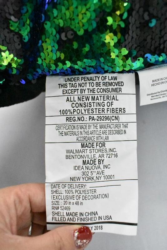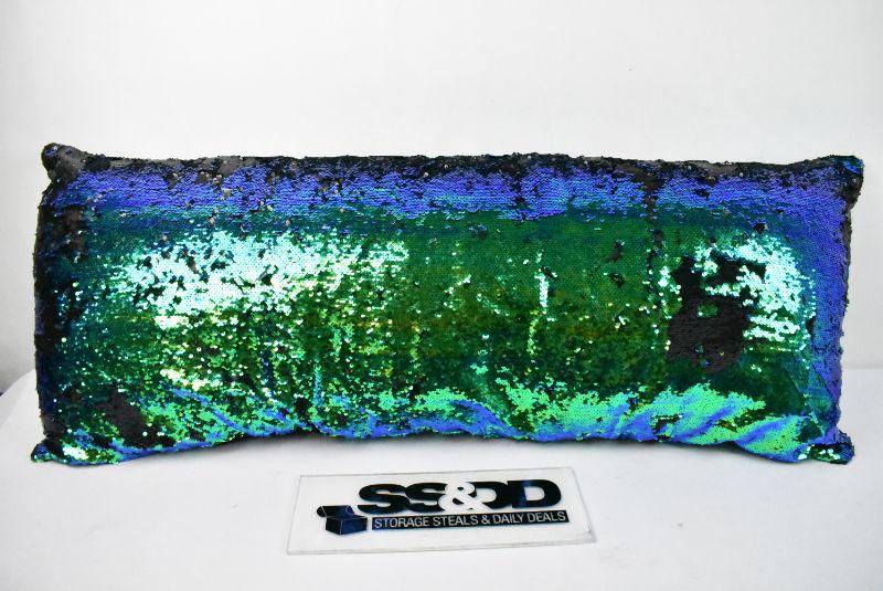Sequined Body Pillow, Black w/ Blue, Green, and Purple 20" x 48" - New