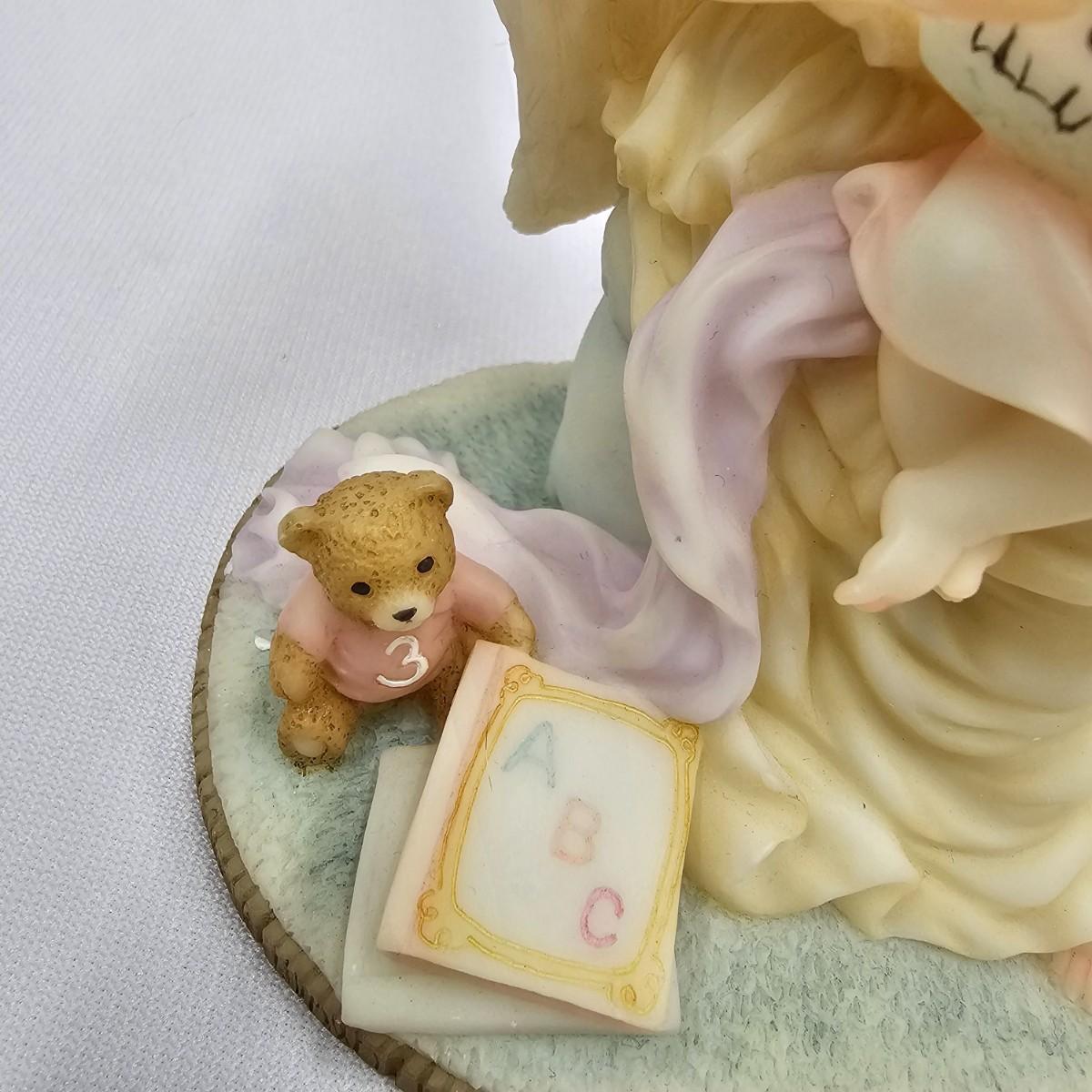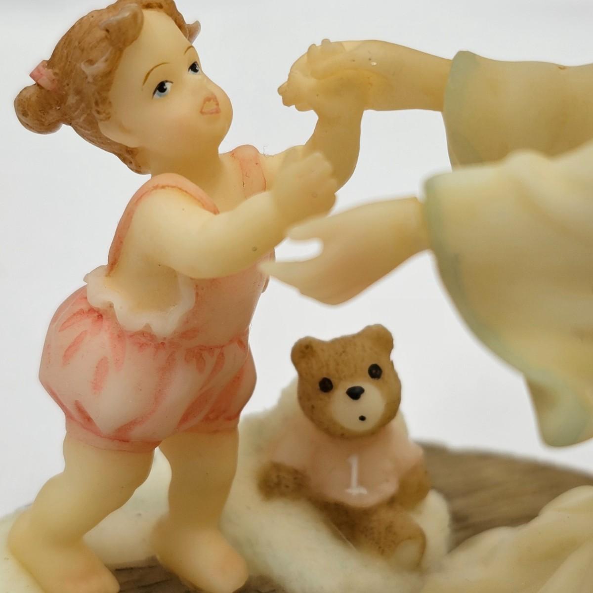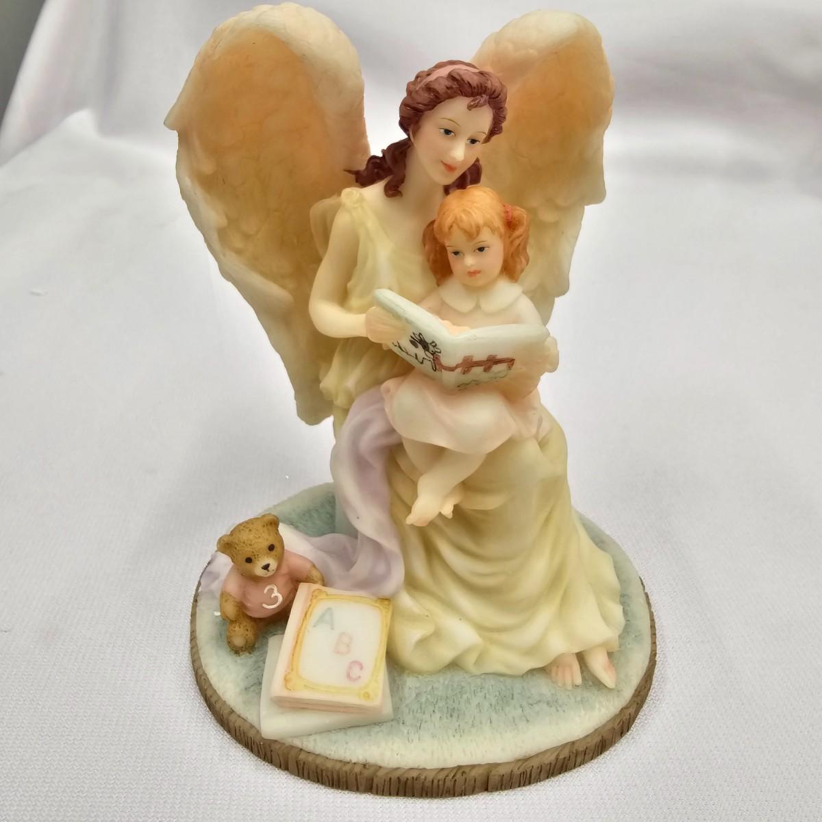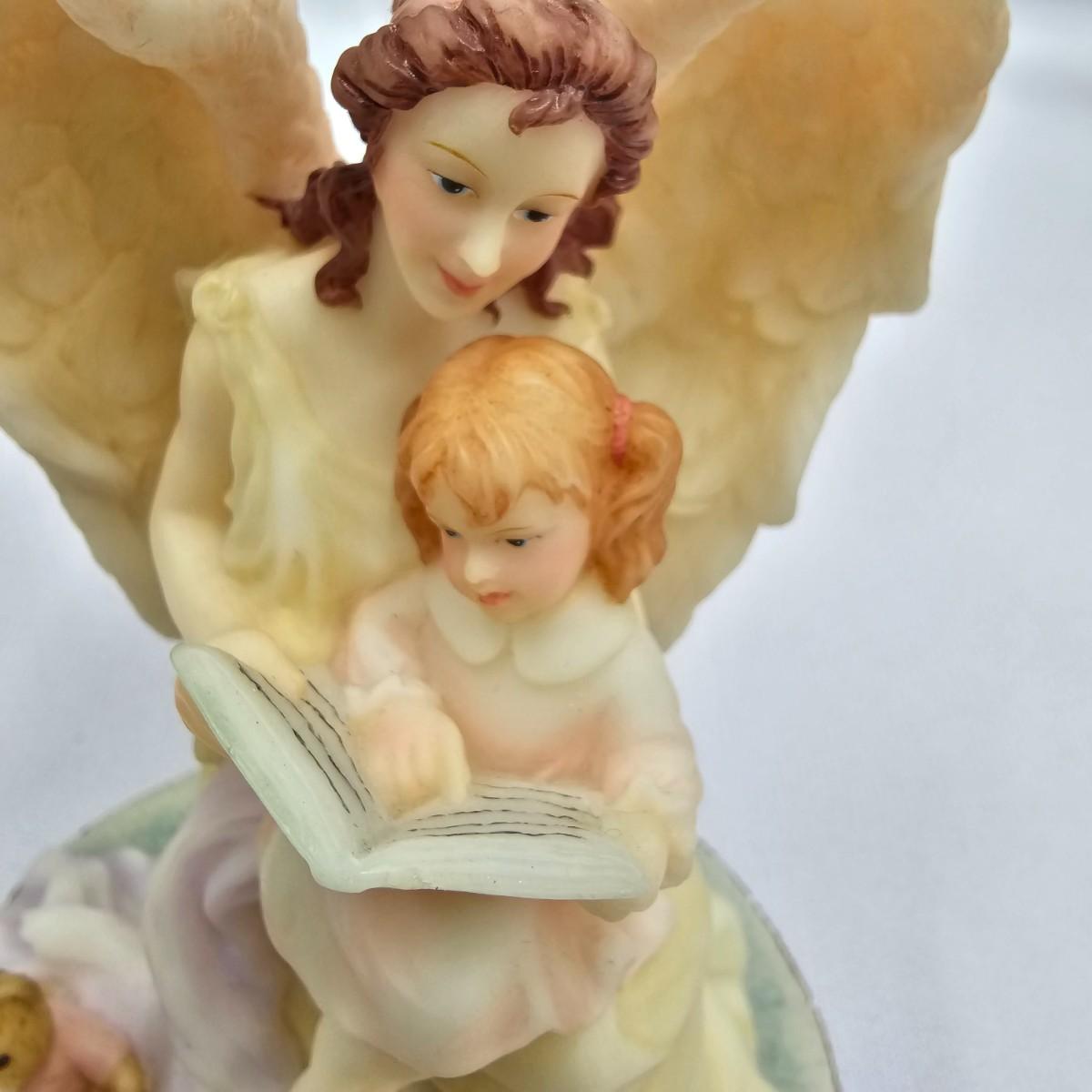 Five charming sculptures by Roman depicting angels guarding a child as she grows. Meticulous detail on faces and bodies and the teddy bear in each scene shows the age. Shown here are newborn, years 1, 2, 3, and 5. Tallest item is 5.5"H. All in original boxes. Info and issue numbers shown on bases of items. See photos for details. Shipping available.